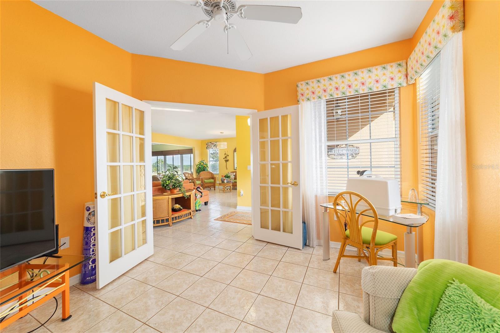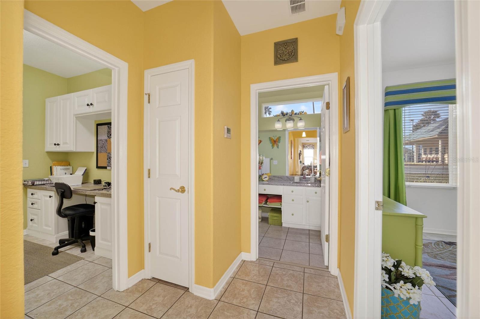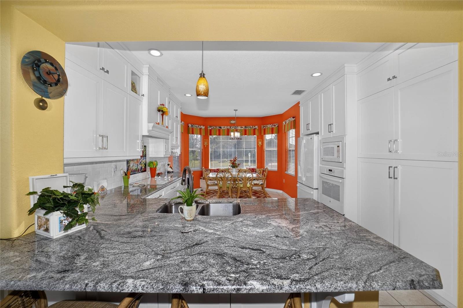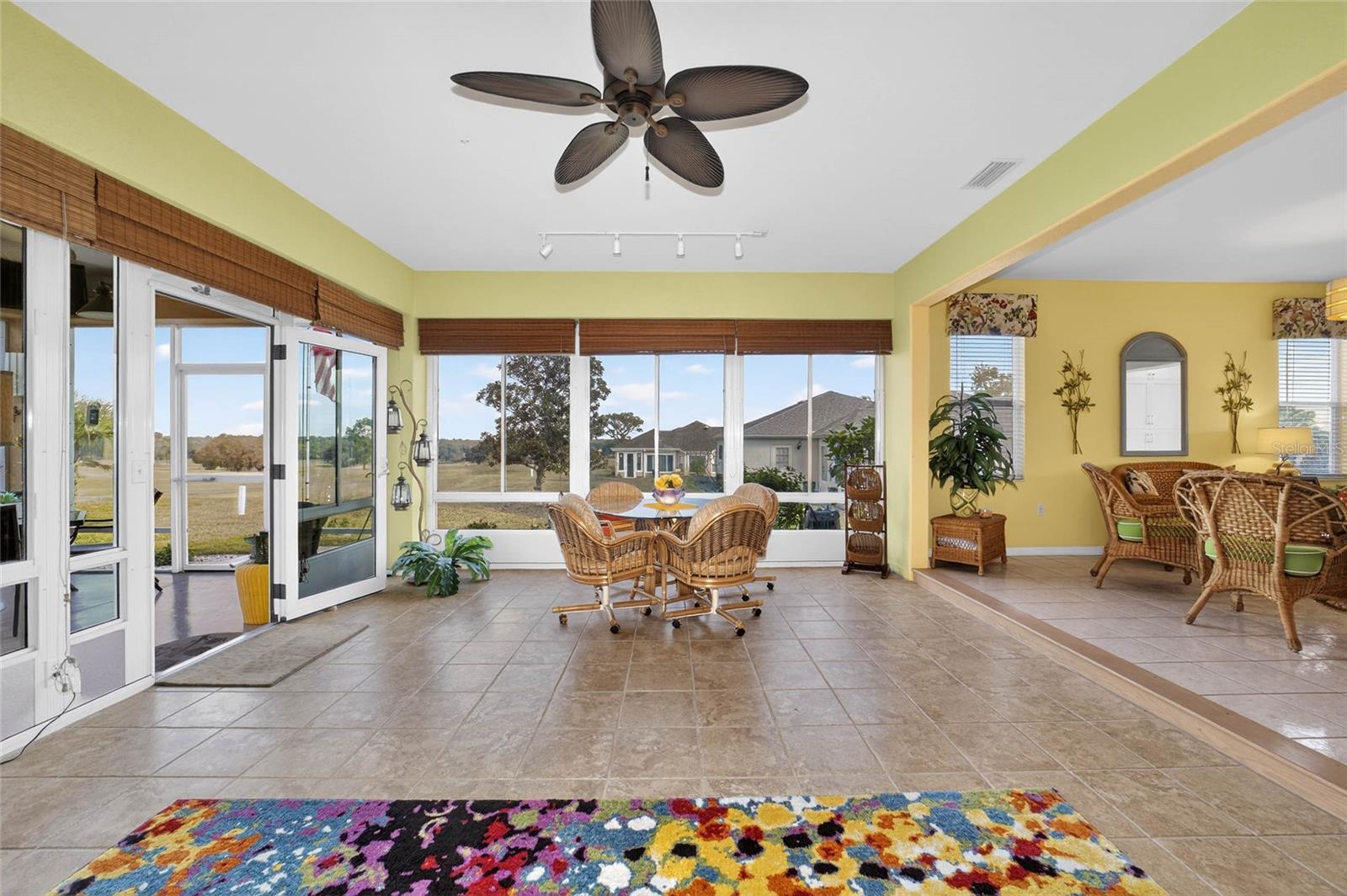 WOW é o que você dirá ao entrar neste modelo personalizado de Coral Gables, que oferece 2 quartos, 2 banheiros, além de uma sala e uma localização excepcional. Uma vez lá dentro, você ficará maravilhado com as vistas deslumbrantes do 9º green do Heritage Golf Course, idealmente situado ao lado da Horizon Pool, Horizon Center, Pro Shop e Liberty Grille. A cozinha foi totalmente remodelada com armários brancos personalizados, azulejos brancos e lindas bancadas de granito de um nível. Os eletrodomésticos brancos de última geração incluem uma geladeira francesa com freezer inferior, micro-ondas e forno embutidos, fogão de bancada e uma adega refrigerada embutida. As características adicionais incluem janelas salientes, uma grande despensa dupla, amplos armários, generoso espaço de preparação e assentos para refeições casuais. A copa oferece lindas vistas do paisagismo frontal, tornando esta cozinha funcional e convidativa para entretenimento. A planta aberta cria uma atmosfera calorosa e acolhedora, realçada pelo piso de cerâmica e iluminação embutida por toda parte. A Grande Sala se abre completamente para a Sala Florida, que leva a uma varanda protegida e a um pátio adjacente - perfeito para aproveitar o sol e grelhar. O piso cerâmico se estende por toda a casa, inclusive nos quartos. A suíte principal possui janelas tipo bay window e um banheiro privativo atualizado com pia de granito e um closet totalmente construído sob medida. O banheiro de hóspedes também foi atualizado. A garagem estendida para 3 carros inclui uma tela elétrica de privacidade, pisos pintados por designers e duas escadas suspensas no sótão para armazenamento adicional. Há um escritório personalizado ao lado da cozinha com armários suspensos. A lavanderia fica na garagem ao lado de uma pia. As principais atualizações incluem um gerador Generac para toda a casa, HVAC (2018), telhado (2014) e um aquecedor de água quente mais recente. Esta é realmente uma casa especial em uma localização privilegiada – uma que você não vai querer deixar de ver. Móveis estão disponíveis.