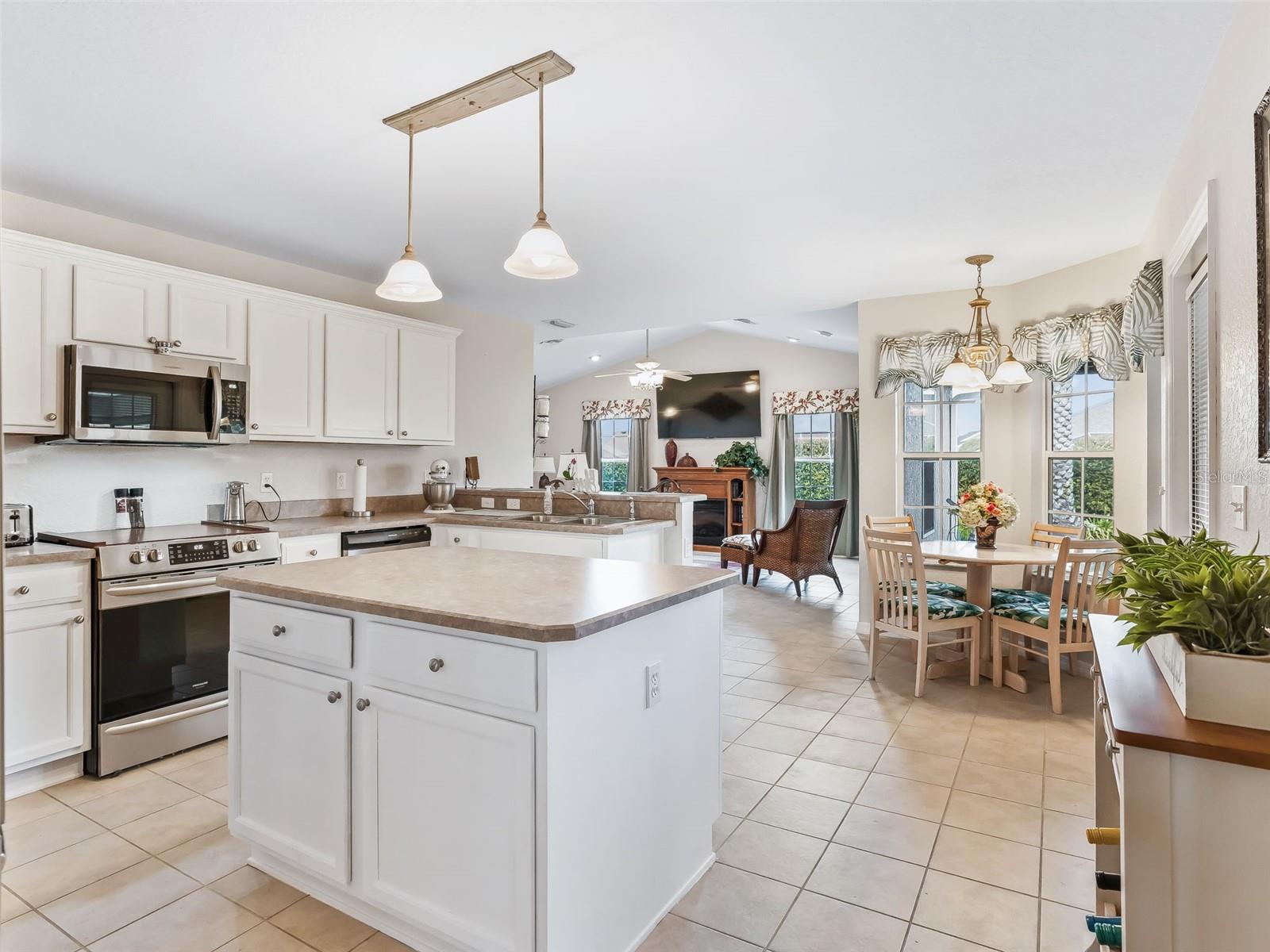 Stonecrest é um condomínio fechado com mais de 55 campos de golfe com todas as comodidades e 4 piscinas (uma coberta) e apenas uma ponte de carrinho de golfe para as aldeias! Impressionante abeto 3/2 com garagem para 2 carros + carrinho de golfe, esta linda casa oferece TELHADO 2023, HVAC 2020, paisagismo profissional de baixa manutenção, entrada frontal coberta, planta baixa de conceito aberto e planta dividida, venezianas e tetos abobadados. Ao entrar no hall de entrada, você é saudado pela linda combinação de área de jantar e estar com piso laminado brilhante, com a área de jantar exibindo um teto de bandeja, lustre de designer deslumbrante e persianas, e a área de estar oferecendo acesso à cozinha. O espaçoso Eat in Kitchen apresenta bancadas personalizadas, novos eletrodomésticos de aço inoxidável, armários de madeira maciça, armário de despensa, um bar de café da manhã de tamanho generoso, ilha central com luminárias pendentes de designer e acesso à grande varanda com tela. A cozinha flui perfeitamente para a enorme sala familiar 21 x 15, que oferece um espaço excepcional para receber grandes reuniões de família e amigos! A planta Split Floor oferece máxima privacidade tanto para os proprietários quanto para seus hóspedes, com a suíte principal localizada em um lado da casa, enquanto os quartos de hóspedes e o banheiro estão localizados no lado oposto da casa. A luxuosa suíte primária oferece acesso privado ao Lanai, um amplo closet e banheiro privativo. O banheiro privativo dispõe de pia com duas pias, banheira de imersão grande, armário de água privativo e box amplo de azulejos. Os quartos de hóspedes 2 e 3 oferecem armários duplos, proporcionando aos seus hóspedes comodidade e privacidade! Retire-se para o Massive Screened Lanai, que oferece espaço para várias áreas de estar para desfrutar do pôr do sol noturno, do nascer do sol matinal, da brisa tropical e da excelente vida ao ar livre com privacidade proporcionada pelo paisagismo projetado profissionalmente! Você vai adorar ter muito espaço para armazenamento na garagem para 2 carros + carrinho de golfe com armários adicionais. Stonecrest é um condomínio fechado com mais de 55 campos de golfe com todas as comodidades, piscinas, quadras de pickleball, softball, campo de golfe profissional de 18 buracos, Broad Stripes Golf & Social Club e mais de 80 clubes diferentes para ingressar! Sendo um condomínio fechado com campos de golfe e estradas privadas, pode esperar um elevado nível de privacidade e segurança. No geral, esta casa oferece uma combinação de excelente espaço ao ar livre, uma planta baixa fantástica, uma localização desejável e um ambiente comunitário seguro. UM ESTILO DE VIDA MARAVILHOSO ESPERA POR VOCÊ EM STONECREST!