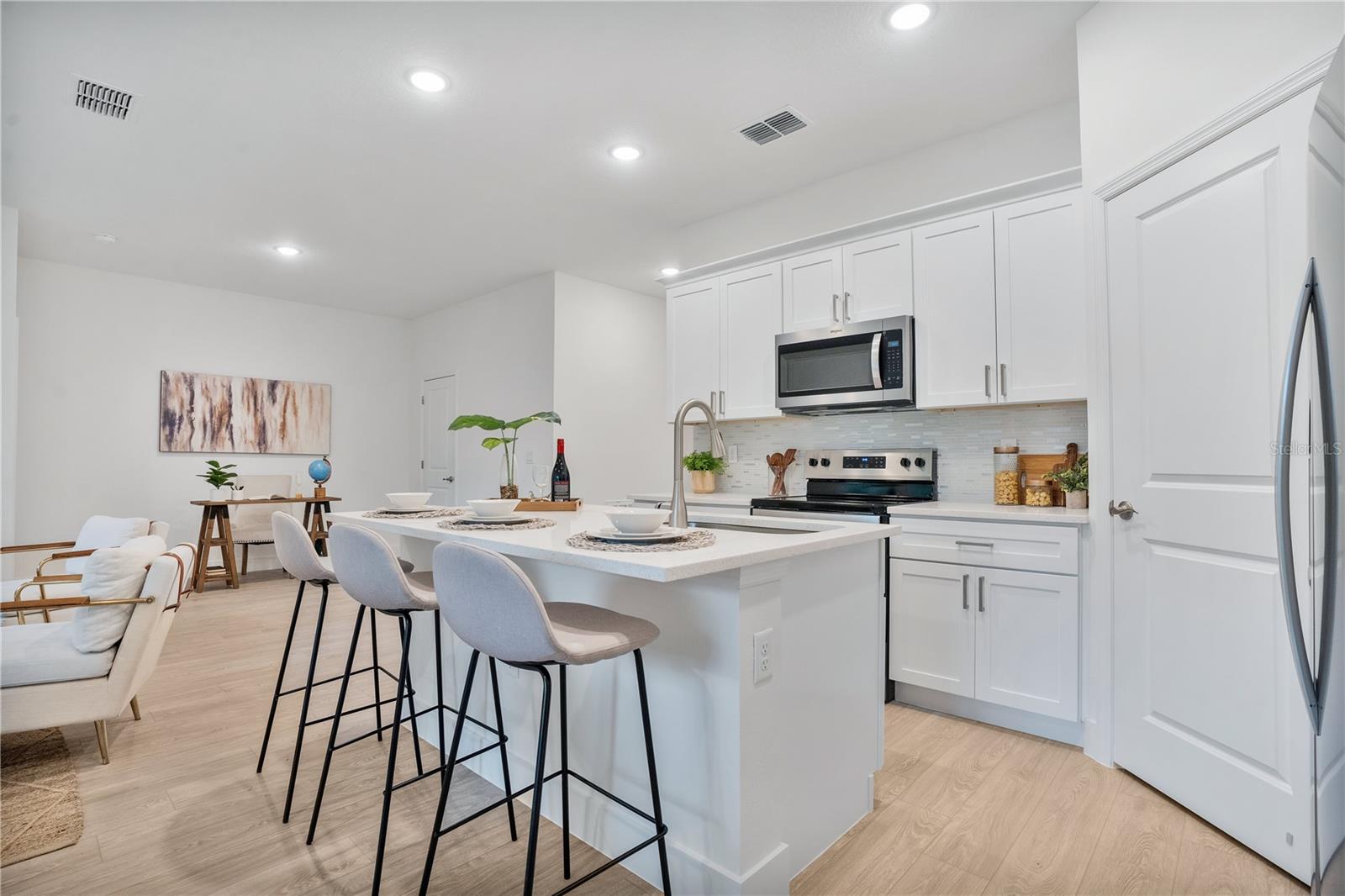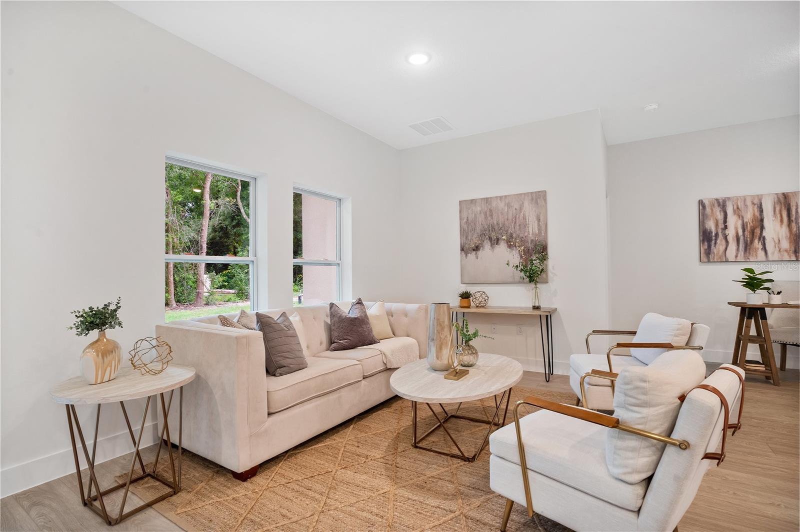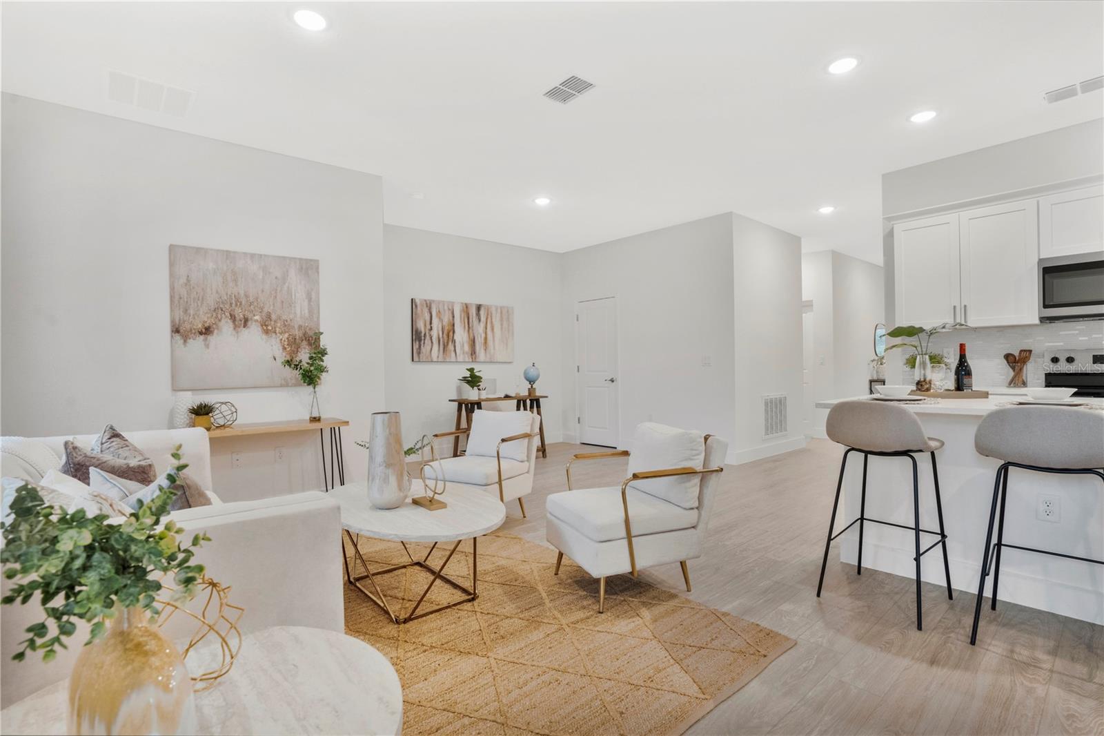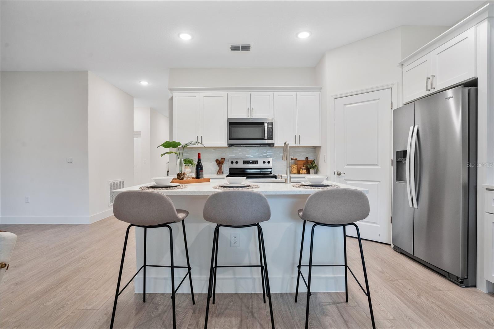 Cativante casa recém-construída de 3 quartos e 2 banheiros em um terreno de esquina grande. Apresentando uma planta aberta, a casa está repleta de inúmeras atualizações, incluindo piso de pranchas de vinil de luxo premium de 20 mil, 5 1/4 rodapés e impressionantes Tetos de 10 pés. A cozinha impecável está equipada com eletrodomésticos de aço inoxidável, bancadas de quartzo, backsplash de mosaico com revestimento de vidro e armários shaker de fechamento suave de 42 polegadas. A grande ilha inclui assentos embutidos, perfeitos para refeições casuais. Fluindo perfeitamente da cozinha, as áreas de estar e jantar impecavelmente projetadas possuem grandes janelas e portas de vidro deslizantes, permitindo que a luz natural inunde o espaço, tornando-o ideal para entretenimento ou relaxamento. A planta dividida oferece um equilíbrio perfeito entre espaço e privacidade. O quarto principal, localizado na parte traseira da casa, apresenta acabamentos luxuosos, um lindo banheiro com pias duplas, bancadas de quartzo e um chuveiro deslumbrante adornado com azulejos do chão ao teto. O amplo e impressionante closet oferece não apenas amplo armazenamento, mas também um espaço cuidadosamente organizado para roupas, acessórios e itens pessoais, tornando-o tão funcional quanto espaçoso. Os quartos secundários estão situados na frente da casa, oferecendo espaço adicional e versatilidade. Situada em um bairro altamente desejável e não HOA, a propriedade dispõe de um lote espaçoso, perfeito para estacionamento de trailers ou barcos. Localizada a apenas uma curta viagem de carrinho de golfe dos restaurantes de classe mundial, campos de golfe e opções de entretenimento de The Villages, esta casa combina conveniência com luxo. Com garantia do construtor, eletrodomésticos com baixo consumo de energia, janelas de vidro duplo e isolamento de placa de espuma R-5, esta casa oferece verdadeira tranquilidade e vida sem esforço.