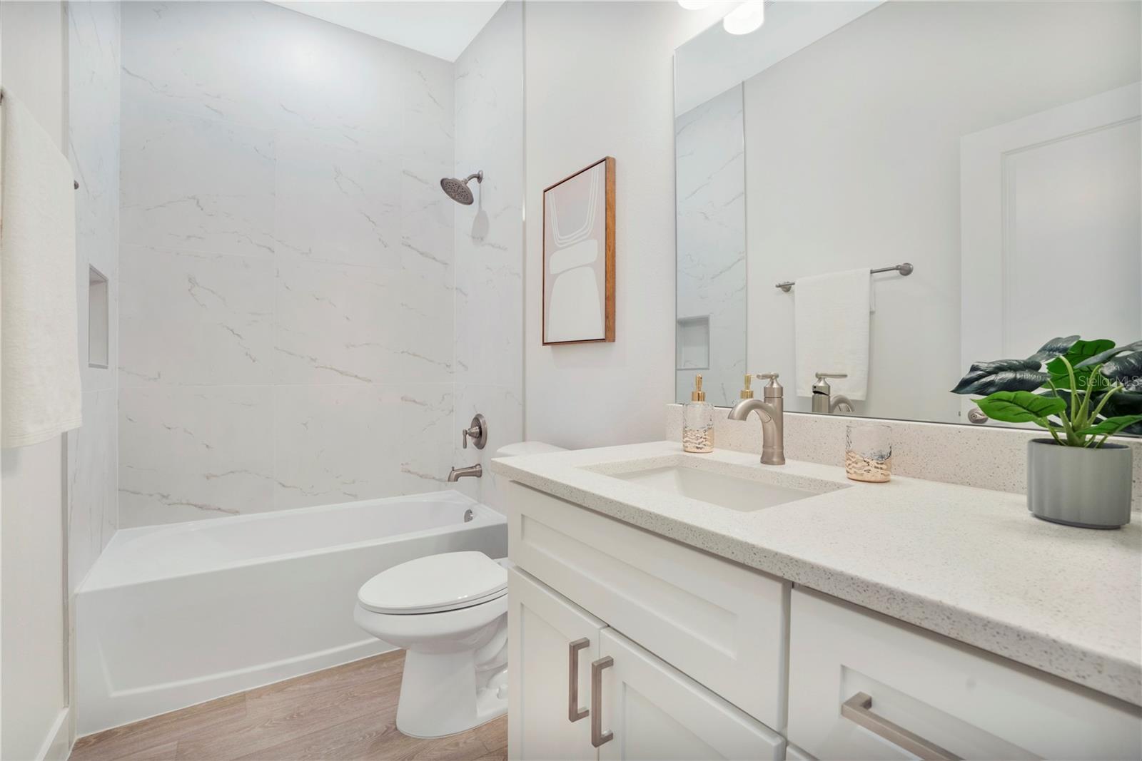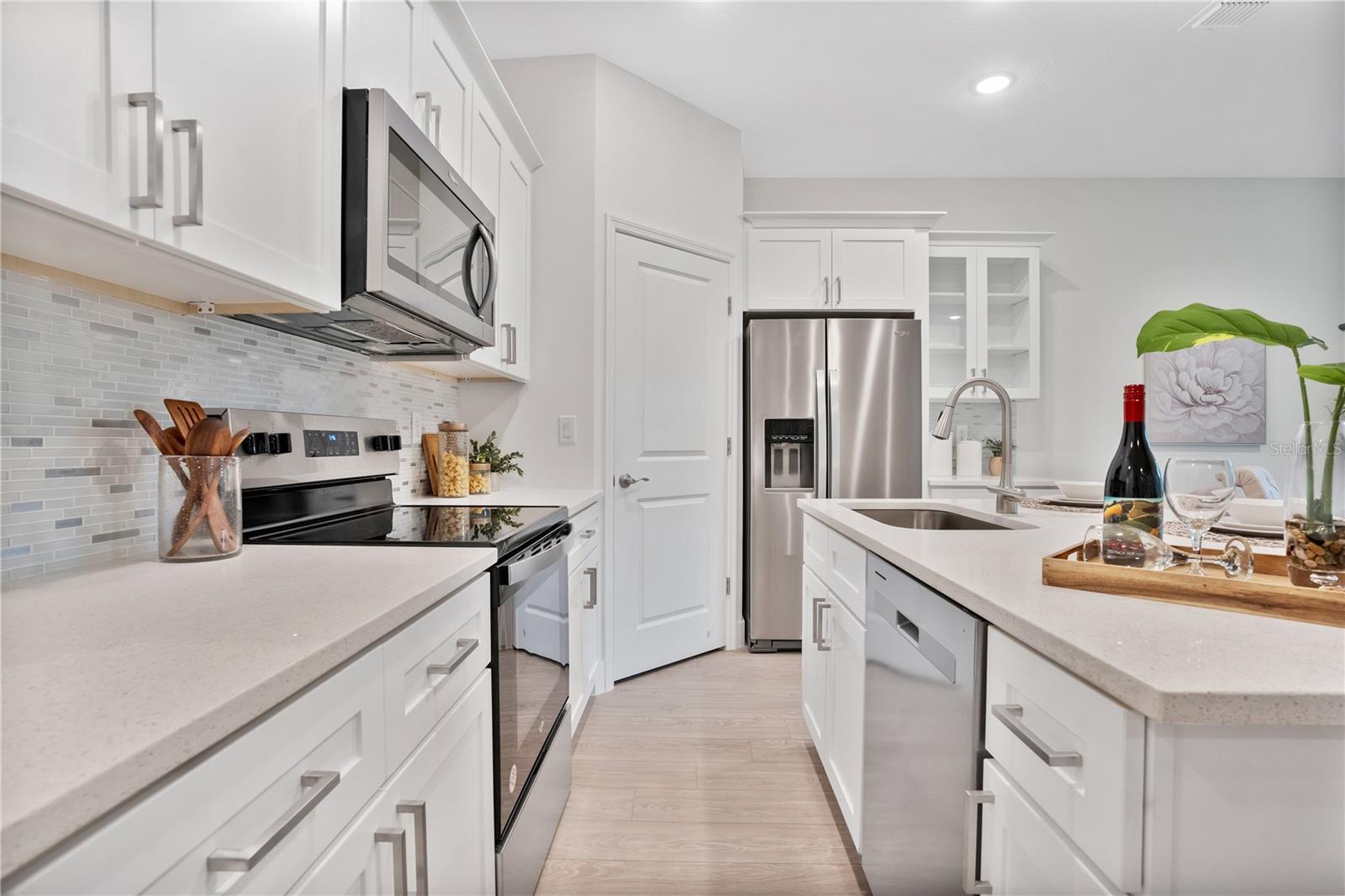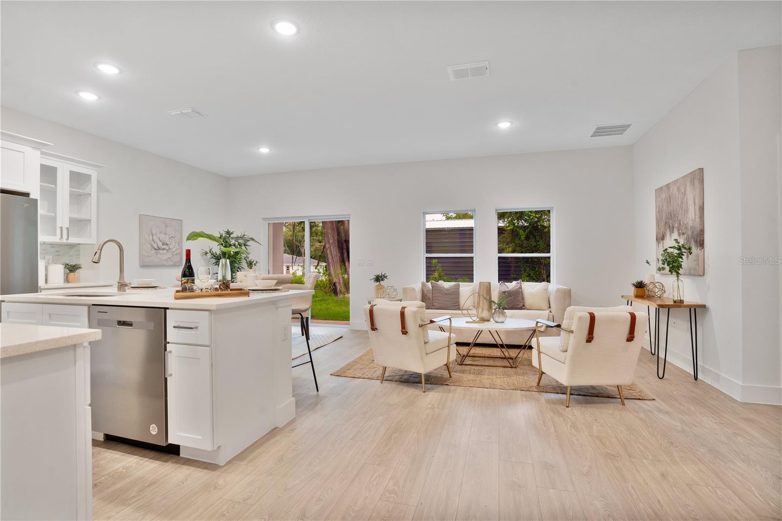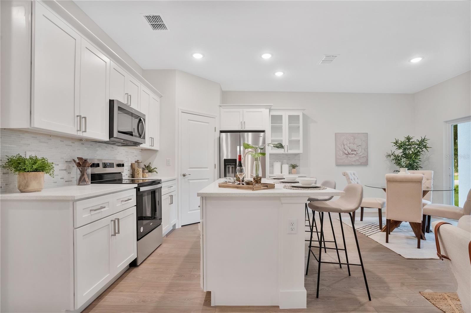 Cativante casa recém-construída de 3 quartos e 2 banheiros em um terreno de esquina grande. Apresentando uma planta aberta, a casa está repleta de inúmeras atualizações, incluindo piso de pranchas de vinil de luxo premium de 20 mil, 5 1/4 rodapés e impressionantes Tetos de 10 pés. A cozinha impecável está equipada com eletrodomésticos de aço inoxidável, bancadas de quartzo, backsplash de mosaico com revestimento de vidro e armários shaker de fechamento suave de 42 polegadas. A grande ilha inclui assentos embutidos, perfeitos para refeições casuais. Fluindo perfeitamente da cozinha, as áreas de estar e jantar impecavelmente projetadas possuem grandes janelas e portas de vidro deslizantes, permitindo que a luz natural inunde o espaço, tornando-o ideal para entretenimento ou relaxamento. A planta dividida oferece um equilíbrio perfeito entre espaço e privacidade. O quarto principal, localizado na parte traseira da casa, apresenta acabamentos luxuosos, um lindo banheiro com pias duplas, bancadas de quartzo e um chuveiro deslumbrante adornado com azulejos do chão ao teto. O amplo e impressionante closet oferece não apenas amplo armazenamento, mas também um espaço cuidadosamente organizado para roupas, acessórios e itens pessoais, tornando-o tão funcional quanto espaçoso. Os quartos secundários estão situados na frente da casa, oferecendo espaço adicional e versatilidade. Situada em um bairro altamente desejável e não HOA, a propriedade dispõe de um lote espaçoso, perfeito para estacionamento de trailers ou barcos. Localizada a apenas uma curta viagem de carrinho de golfe dos restaurantes de classe mundial, campos de golfe e opções de entretenimento de The Villages, esta casa combina conveniência com luxo. Com garantia do construtor, eletrodomésticos com baixo consumo de energia, janelas de vidro duplo e isolamento de placa de espuma R-5, esta casa oferece verdadeira tranquilidade e vida sem esforço.