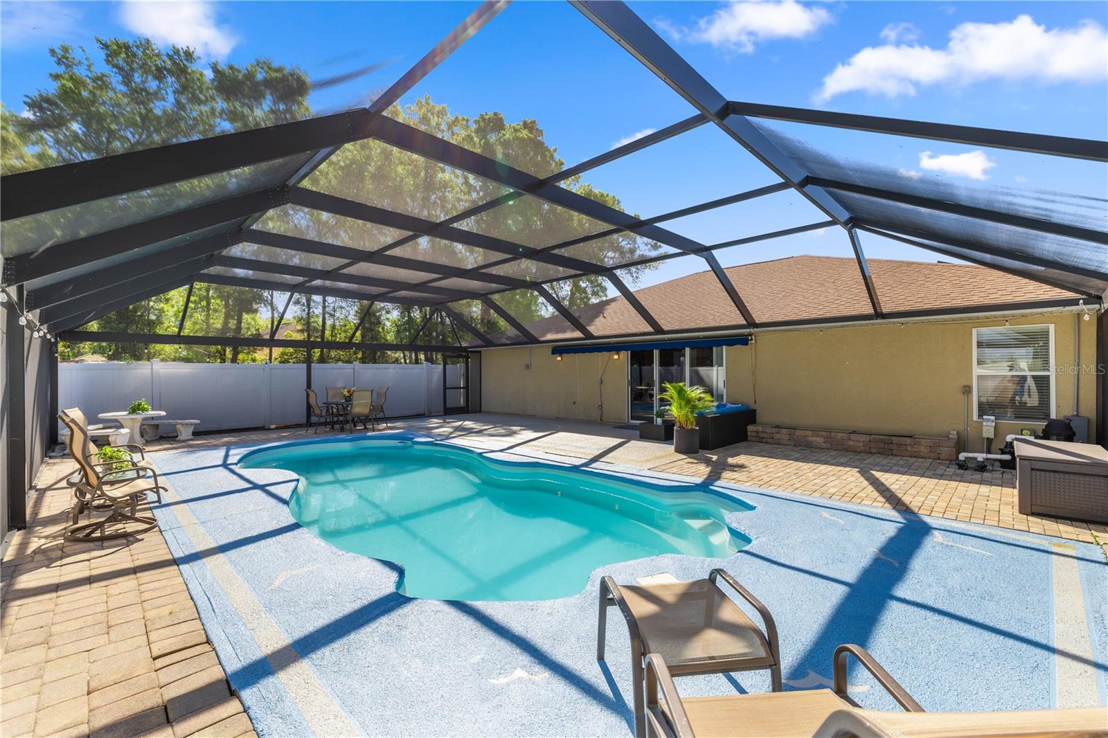 * 25k de queda de preço!* Casa unifamiliar muito espaçosa e privada, localizada em um grande lote de canto com uma piscina exibida! Localização privilegiada! A poucos minutos dos restaurantes e mercados locais, e a apenas 12 minutos da praia de Eaton, essa propriedade também possui painéis solares para eficiência energética, um novo telhado e um novo AC. Também não há HOA, tornando este lar ideal para uma vida flexível. A planta baixa inclui tetos abobadados, pisos de madeira e ladrilhos nas principais áreas de estar e um layout que oferece espaço e função. A cozinha possui bancadas em granito, utensílios de aço inoxidável e espaço generoso no gabinete. O layout de quartos divididos garante privacidade adicional para a suíte primária. Aproveite o ar livre o ano todo na área de piscina fechada com um pátio coberto. Convenientemente localizado perto de compras, jantar, campos de golfe e a uma curta distância de carro das aldeias e Ocala. Esta casa é uma combinação de espaço, privacidade e conforto! Agende uma exibição hoje!