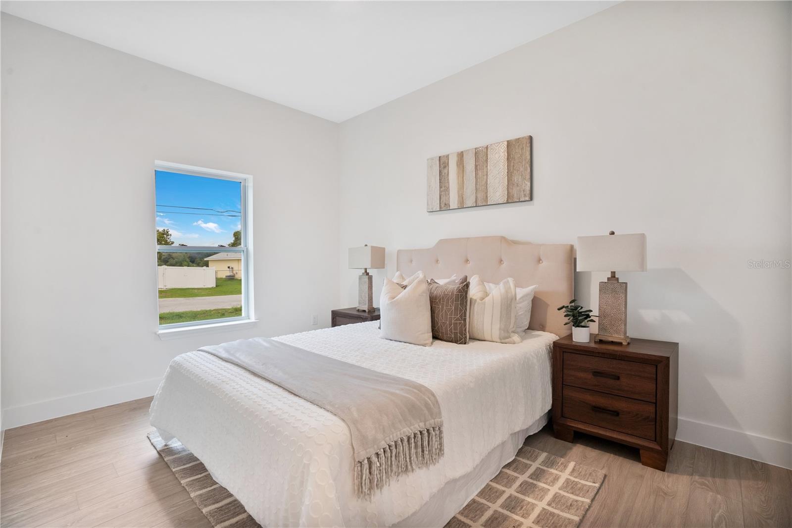 Uma ou mais fotos foram praticamente encenadas. Uma ou mais fotos foram praticamente encenadas. Lot de esquina com espaço para trailers ou barco! Sem HOA! Esta casa lindamente projetada de 3 quartos e 2 banheiros fica em um lote de canto, oferecendo amplo espaço para o seu RV, barco ou futuros projetos ao ar livre. Com um layout atencioso e acabamentos de alta qualidade, esta casa é projetada para conforto e funcionalidade. O piso plano aberto possui tetos de 9'4 ", rodas de base de 5 1/4 de polegada e piso de tábua de vinil de luxo durável de 20 mil por toda parte. A cozinha está equipada com armários de agitadores de close macio, bancadas de quartzo, uma iluminação de linhas de vidro com estacas de vidro, sem fábrica, com estacas sem fábrica, com estacas sem fábrica, com estacas de lixo com estojo de vidro, com estojos sem face a sede e aço com estacas e semeados. Uma iluminação de sede de vidro, sem fábrica, com estacas de arremesso de seão de vidro, conectados sem face a aço. suite offers a peaceful retreat with a luxurious in-suite bathroom featuring dual quartz-topped vanities, a floor-to-ceiling tiled shower with a sleek tempered glass door, and an expansive walk-in closet. The split-bedroom layout provides additional privacy, with the secondary bedrooms located at the front of the home, offering flexibility for guests or a home office. Built for efficiency and durability, the home includes double-pane windows, R-5.0 Isolamento de espuma e aparelhos com eficiência energética. Casa com o espaço e a flexibilidade que você está procurando.