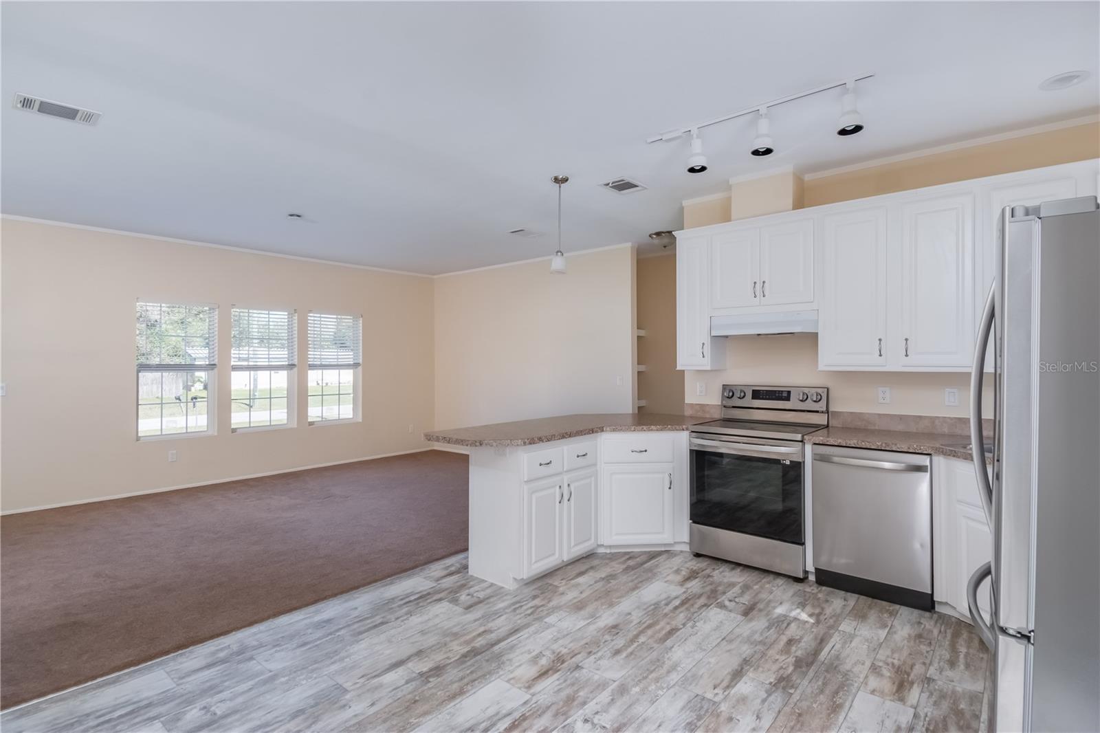 Situado em pouco menos de um quarto de acre em Summerfield, este convidativo móvel é uma nova construção de 2022 perto de The Villages! Oferecendo um total de 3 quartos e 2 banheiros, a casa oferece quase 1.300 pés quadrados de espaço e um interior convidativo. Há muita luz natural no interior, com uma combinação de vinil com aspecto de madeira e carpete por toda parte. A cozinha em si oferece bastante balcão e armários, com eletrodomésticos de aço inoxidável, muitas tomadas e uma barra de café da manhã. A sala de estar, a sala de jantar e a cozinha são bem abertas umas para as outras, proporcionando a oportunidade de manter a conversa fluindo facilmente por esses espaços. Os quartos são todos espaçosos, com uma suíte principal extra grande que inclui um grande closet e banheiro privativo com pias duplas, prateleiras embutidas, chuveiro com porta de vidro e uma grande banheira de jardim. Totalmente cercada, a propriedade possui grandes quintais frontais e traseiros totalmente fechados com uma combinação de cerca de arame na frente e cerca de privacidade de vinil branco na parte de trás. Perfeita para passeios de caiaque, pesca e outras opções de passeios de barco, esta propriedade está localizada a poucos minutos do Lago Weir e do Little Lake Weir, e há vários parques nas proximidades para quem deseja aproveitar o clima quente da região durante todo o ano! Tanto Ocala quanto The Villages ficam a uma curta distância de carro, oferecendo uma enorme variedade de opções de restaurantes, lojas, serviços médicos e de entretenimento.