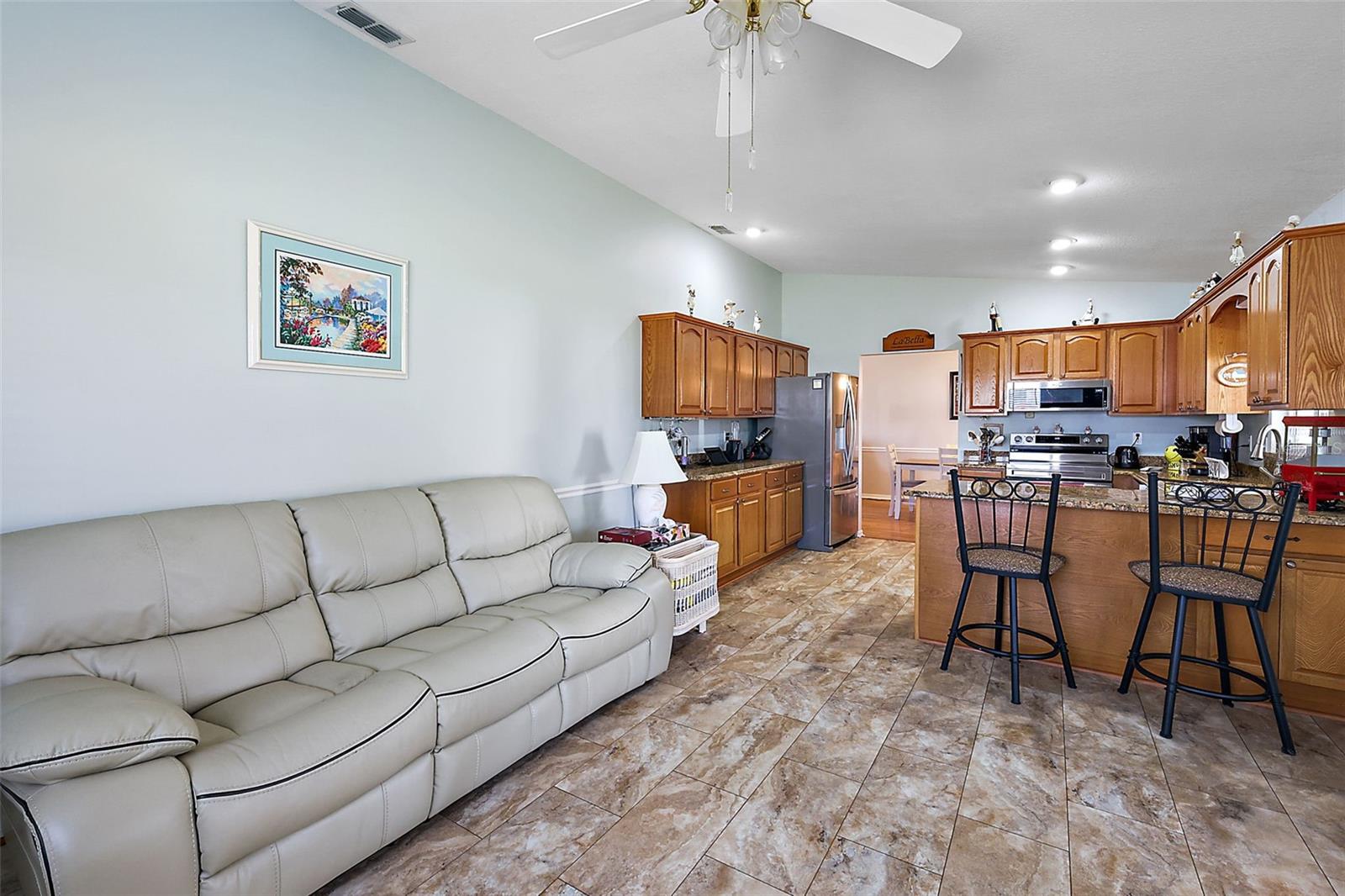 O preço é firme. Procurando uma comunidade bem conservada e amigável na área mais conveniente da Flórida central, sem ter que pagar os preços exorbitantes de algumas comunidades vizinhas? Esta planta Magnólia difícil de encontrar com 1652 sf sob ar com 3 camas e 2 banheiros certamente agradará. Os proprietários aproveitaram todas as oportunidades para valorizar esta joia de propriedade. Alguns de seus muitos recursos são NOVO TELHADO EM 2022 E HVAC EM 2017, bancadas de granito, eletrodomésticos mais recentes de aço inoxidável, tratamentos de janela personalizados, pintura profissional personalizada para interiores, filtragem de água para toda a casa e pranchas de azulejos amaciantes e piso de madeira laminada com azulejos nos banheiros e zero carpete em toda a casa, uma excelente sala de tela que mede enormes 33 x 10 com sua própria área para cães e um quintal cercado para segurança. Este imóvel deve ser visto pessoalmente para realmente apreciar, marque hoje mesmo a sua consulta! Agente para verificar.
