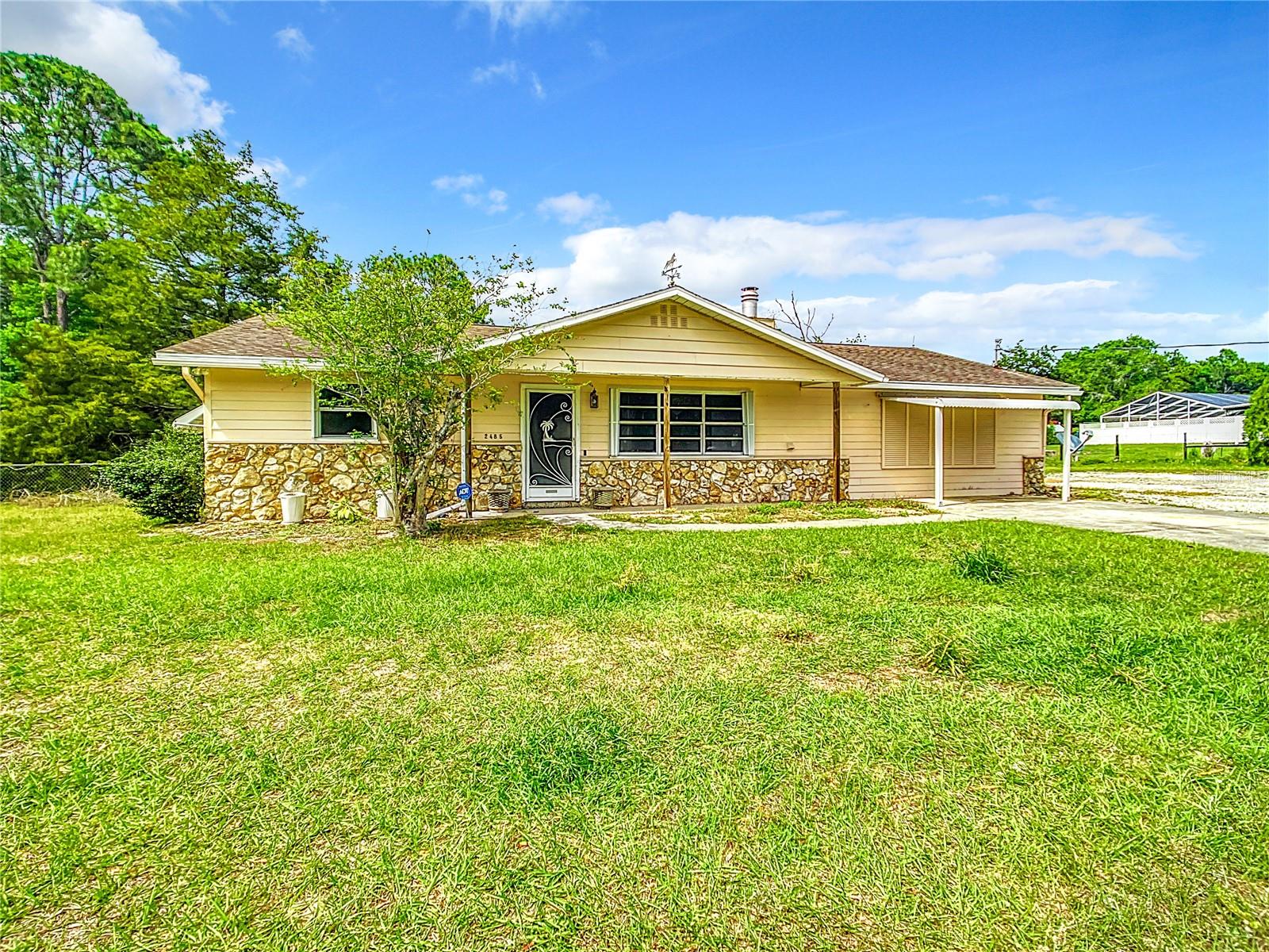 ACHADO RARO - Zoneamento agrícola nesta espaçosa propriedade de mais de 1 acre, TOTALMENTE CERCADA com cerca de arame, a casa tem NÚMEROS GALPÕES, cercas cruzadas de arame com espaço para passear para a família ou animais de estimação! Três quartos, dois banheiros, piso laminado e azulejo, lareira de pedra na sala, sala de estar muito ampla com porta para o exterior da casa. Cozinha de azulejos com balcão para café da manhã, área de jantar, LANAI com tela traseira tem excelentes vistas para o pasto traseiro para desfrutar de sua xícara de café pela manhã. Árvores espalhadas por todo o quintal, vários galpões para hobbies ou armazenamento, uma ÁREA DE ESTACIONAMENTO EXTRA GRANDE oferece espaço para estacionar veículos extras, trailers ou barcos. Aproveite a vida no campo, cultive um jardim ou simplesmente relaxe em seu espaçoso quintal em Virmillion Estates. A poucos minutos de lojas, escolas e hospitais em Belleview, Ocala ou The Villages. Aproximadamente 20 minutos do Centro Equestre Mundial; 45 minutos até o Golfo do México; e 60 minutos para os aeroportos de Orlando ou Tampa. Conveniente, acessível, com muito espaço extra e grande potencial! Os vendedores darão um crédito de $ 10.000 aos compradores no fechamento da substituição do telhado.