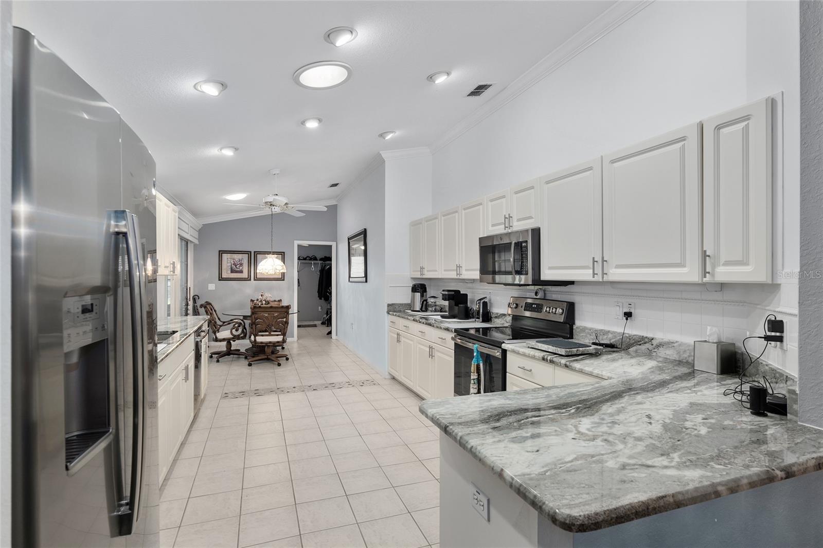 Redução de preço de $ 20.000! Vendedor muito motivado, traga todas as ofertas! Modelo estendido Palm II atualizado absolutamente incrível com mais de 1942 pés quadrados. Pés. 2 quartos 2 banheiros com um lindo quarto Florida. Apenas 3 casas a oeste da parada de quatro vias em frente ao Horizon Center. Ao entrar na casa você tem uma aconchegante sala de estar que leva à área de jantar. A cozinha que é o coração da casa está bem equipada com bancadas de granito, muito espaço na bancada com armários de cores claras e eletrodomésticos em aço inoxidável (2020). A Expansive Florida Room com área de escritório é excelente para entretenimento ou simplesmente relaxar. Persianas de plantação, sancas, piso de vinil de luxo, interior recém-pintado, tudo feito em 24/05. A lavanderia interna generosamente grande oferece amplo espaço para armazenamento e possui um freezer que irá transportar. O espaço ao ar livre inclui Lanai recém-selecionado com novos ventiladores de teto 24/05, pátio pavimentado para grelhar. Tudo isso na bela e premiada comunidade Del Webb Spruce Creek Golf & Country Club com mais de 55 anos. Você desfrutará de todas as comodidades, como 3 piscinas aquecidas, sendo uma delas coberta, quatro campos de golfe de 9 buracos, quadras de pickleball, quadras de tênis, bocha, academia de ginástica de última geração, quadra de vôlei de areia, campo de softball, parque para cães e mais 75 clubes. Telhado substituído em 2013, sistema HVAC substituído em 24/05, novo aquecedor de água quente 24/09, novas penteadeiras e bancadas de granito no banheiro principal e também no 2º banheiro em 24/09, telas de garagem substituídas e roletes nas portas de correr foram substituído. Esta casa está pronta para morar e vem com uma garantia de fábrica Broward Home transferível.