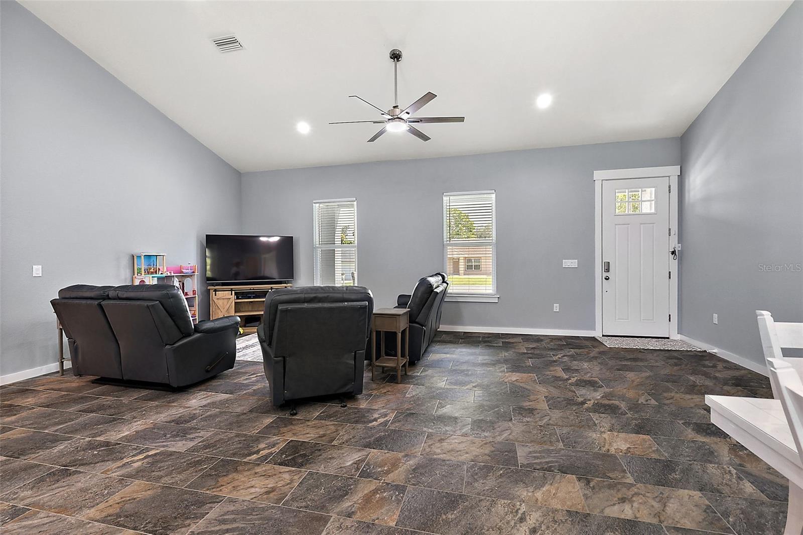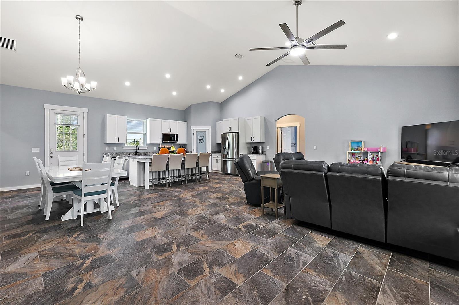Esta QUASE NOVA casa de fazenda personalizada com 3 quartos e 2 banheiros completos construída em 2023 é imaculada e cheia de atualizações. Paredes de 10 pés em toda a casa. Aproveite a planta aberta com tetos abobadados de 14 pés em toda a cozinha, áreas de estar e de jantar. Membrana de isolamento de rachaduras sob o porcelanato em todas as áreas de estar e carpetes e forros de alta qualidade nos quartos. A bela cozinha é completa com ilha grande, bancadas em granito, armários shaker brancos com fechamento suave, eletrodomésticos em aço inox e despensa de canto. Ao lado da sala de jantar há uma grande lavanderia. O quarto principal está equipado com um grande closet e banheiro privativo com pias duplas, bancadas de granito, banheira de hidromassagem e chuveiro com efeito de chuva fechado em vidro personalizado. Esta casa tem 2 sótãos perfeitos para arrumação medindo 17x10 e 12x10 com 6 graus de diferença do piso principal, por isso é bastante confortável lá em cima. Calçada com 24 metros de largura. Plug-in RV de 50 AMP. O quintal está pronto para sua nova piscina e spa com painel elétrico de piscina de 200 AMP já instalado e chuveiro externo. Situado em um LOTE GRANDE em uma excelente localização perto de The Villages, sem HOA ou qualquer restrição de escritura. Veja esta casa deslumbrante hoje!