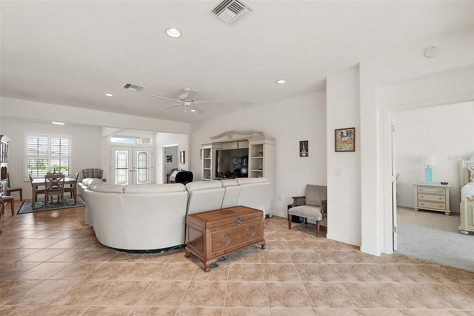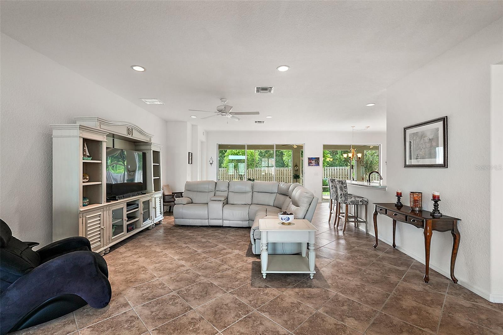 Modelo Johnstown com visualização de local privado. O ótimo modelo 3/2 com arrumos/escritório, Lanai grande com tela 10X37, sem vizinhos atrás. A casa tem um novo telhado 2021 e um novo Lennox AC 2021 de 4 toneladas. As características da casa incluem planta baixa aberta com Designer Eat in Kitchen, Corian Ctr Tops, eletrodomésticos SS, quartos divididos e um piso separado de azulejos de escritório/escritório. Grande garagem 30X22 incluindo garagem para carrinhos de golfe. Muitos recursos atualizados, incluindo portas de entrada com chumbo, persianas de plantação, venha ver o grande Johnstown /Model.