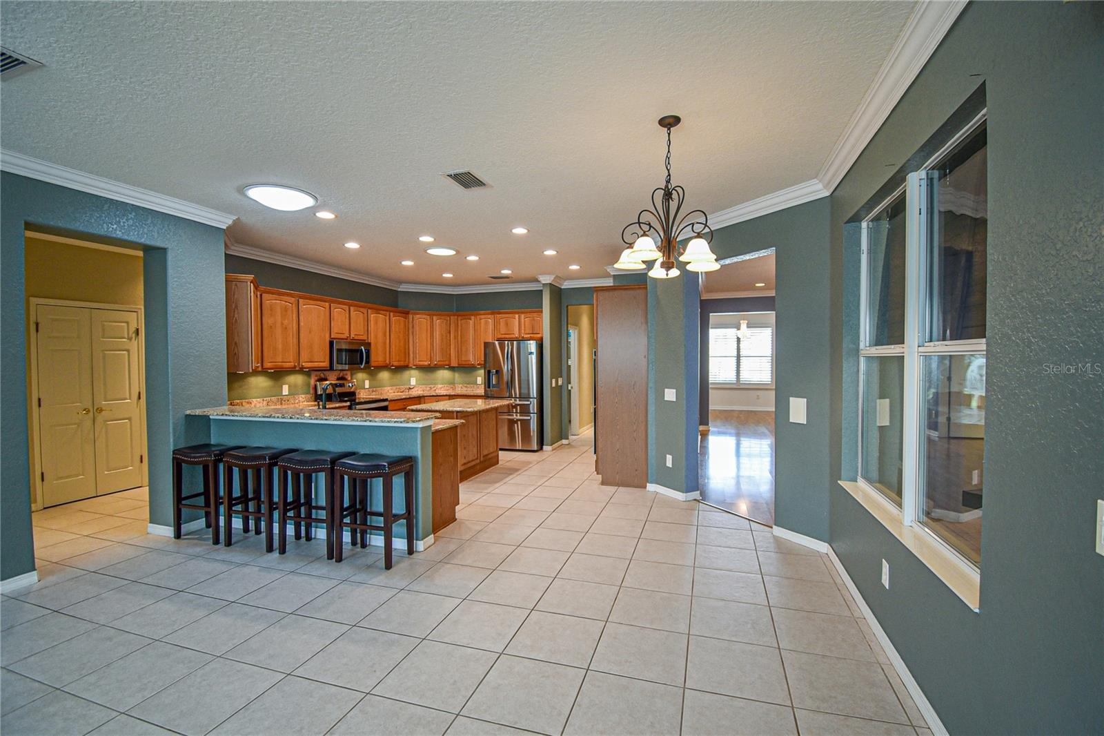 Lexington Model (uma das maiores plantas disponíveis no Spruce Creek Golf & Country Club de Del Webb). O telhado foi reabastecido em 2023 e o HVAC New em 2021, Great Curb Appeal e pintura recentemente atualizada, também possui uma calçada e calçada pintadas personalizadas. Digite as portas de entrada dupla de vidro oval em um grande hall de entrada. Sala de jantar formal e sala de estar, uma grande sala grande da cozinha atualizada com granito e fornos de parede personalizados e um fogão, os armários têm prateleiras para facilitar o acesso. A casa espaçosa é uma planta de piso de quarto de 3 quartos de 2 quartos e um grande covil. Caros de espaço para se divertir com a ampla sala da Flórida que também é controlada pelo clima. O quarto principal possui tetos de bandeja personalizados e janelas têm persianas ou persianas; A moldura da coroa aumenta os recursos personalizados desta bela casa. Os pisos são laminados de vinil cerâmica ou de luxo. O quintal é paisagístico personalizado para privacidade e possui um pátio aberto para grelhar ou relaxar. A garagem tem uma garagem para carrinho de golfe e abridores mais recentes e desça escadas com a área de armazenamento do sótão, o Lanai está incluído nas filmagens de Sq Living. Alguns tubos solares e ventiladores aprimoram esta casa. O Casa tem um preço de venda e está pronto para começar a desfrutar do estilo de vida Del Webb e da Flórida !!!! Confira nossa turnê em 3D.