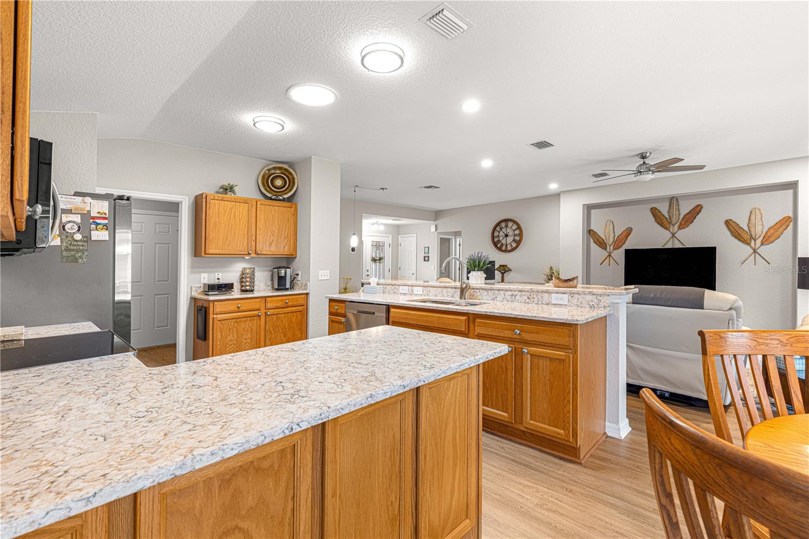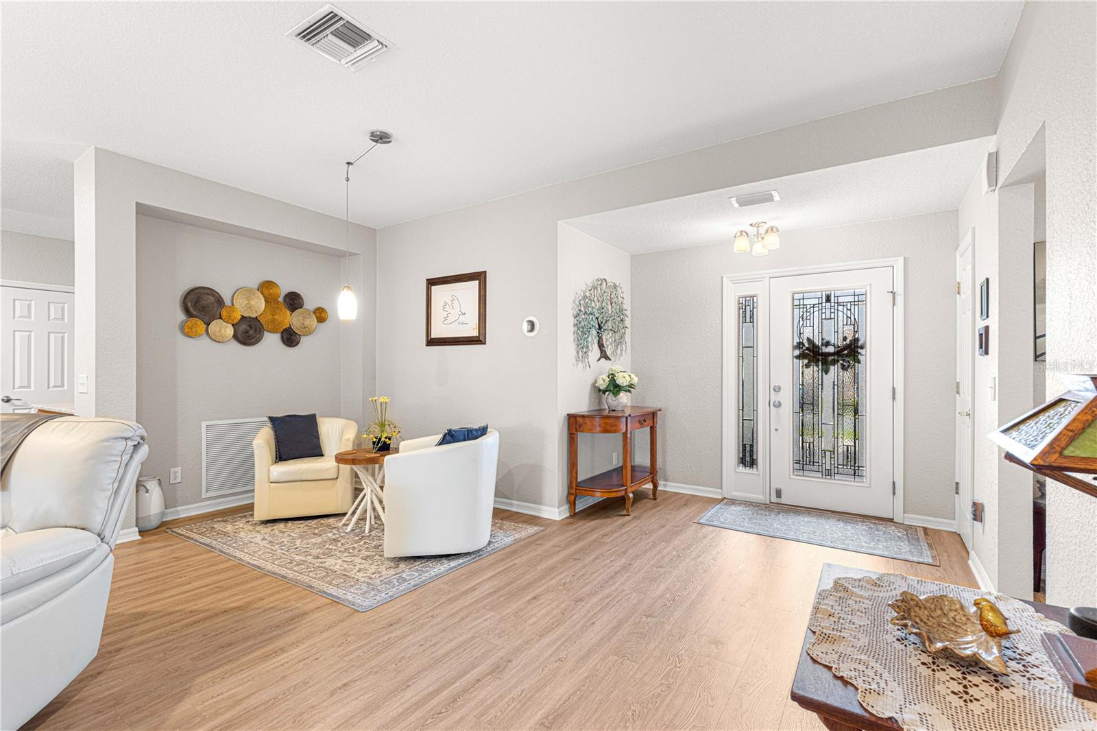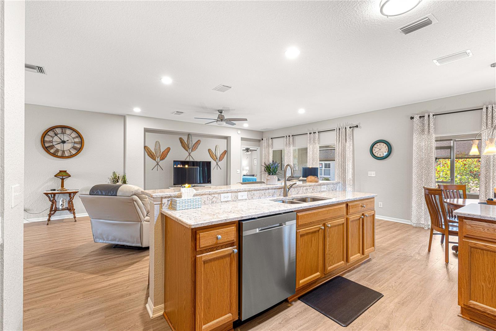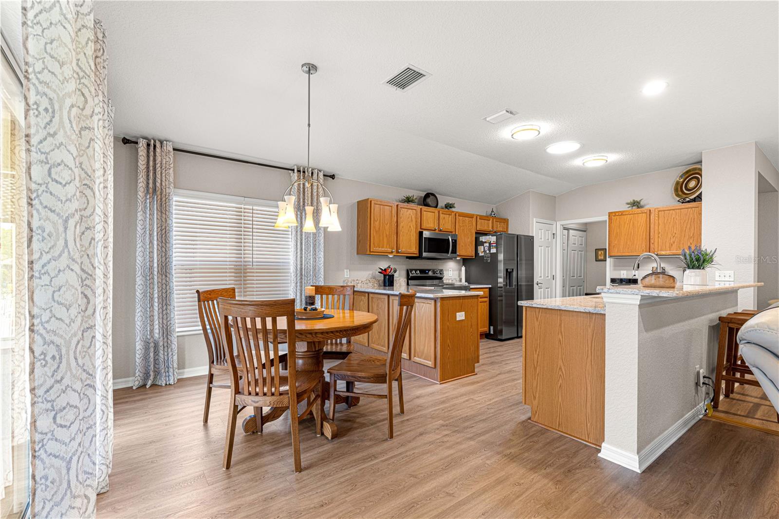 Bem-vindo a este lindamente mantido 3 quartos, 2 banheiros na casa no procurado 55 e melhor comunidade de Del Webb Spruce Creek Golf & Country Club. Esta planta popular de piso elkridge oferece apelo excepcional, com uma paisagem limpa e de baixa manutenção com detalhes em pedra, uma tela de garagem motorizada e uma porta de entrada de vidro com chumbo com uma tela de porta frontal retrátil para uma vida sem interior e saída interna. Entre em um espaço de vida de conceito aberto e aberto para entretenimento, com uma área flexível, jantar, bar de café da manhã e espaçosa sala de estar. O coração da casa é a cozinha atualizada, mostrando novas bancadas de quartzo, que combinam perfeitamente com os armários de carvalho sólido com puxões duplos, aparelhos de aço inoxidável mais recentes, espaço para despensa personalizada e um tubo solar para trazer uma abundância de luz natural. Desfrute de conforto durante todo o ano com pisos de vinil de luxo nas áreas principais, tapetes mais novos nos três quartos e um chuveiro primário de suíte primário recentemente remodelado. A casa também inclui atualizações práticas: um telhado reformulado (2014), novo HVAC (2023), aquecedor de água mais recente, escadas do sótão puxadas com armazenamento no sótão com piso, re-tubo de teto em busca de mente e uma válvula de desligamento de água interior elevada. Relaxe no Lanai, voltado para o sul, com tons solares perfeitos para desfrutar do sol sem o calor direto. A garagem estendida forneceu espaço adicional para armazenamento. Com sua localização privilegiada, atualizações atenciosas e comodidades no estilo resort, esta casa pronta para se mover é a mistura perfeita de conforto, conveniência e estilo.