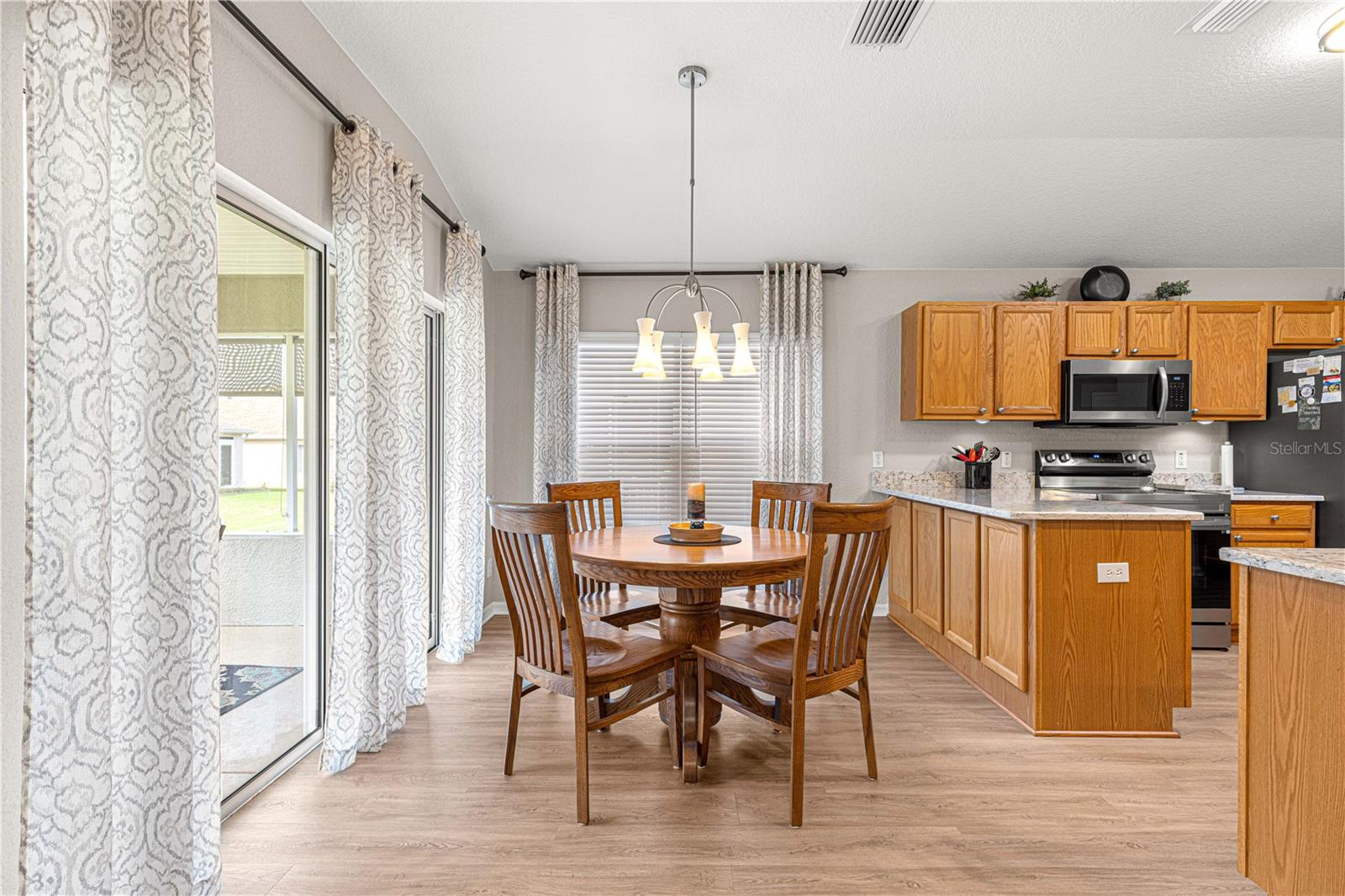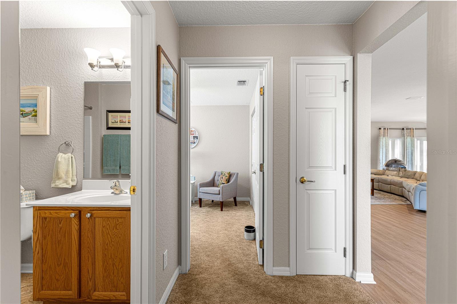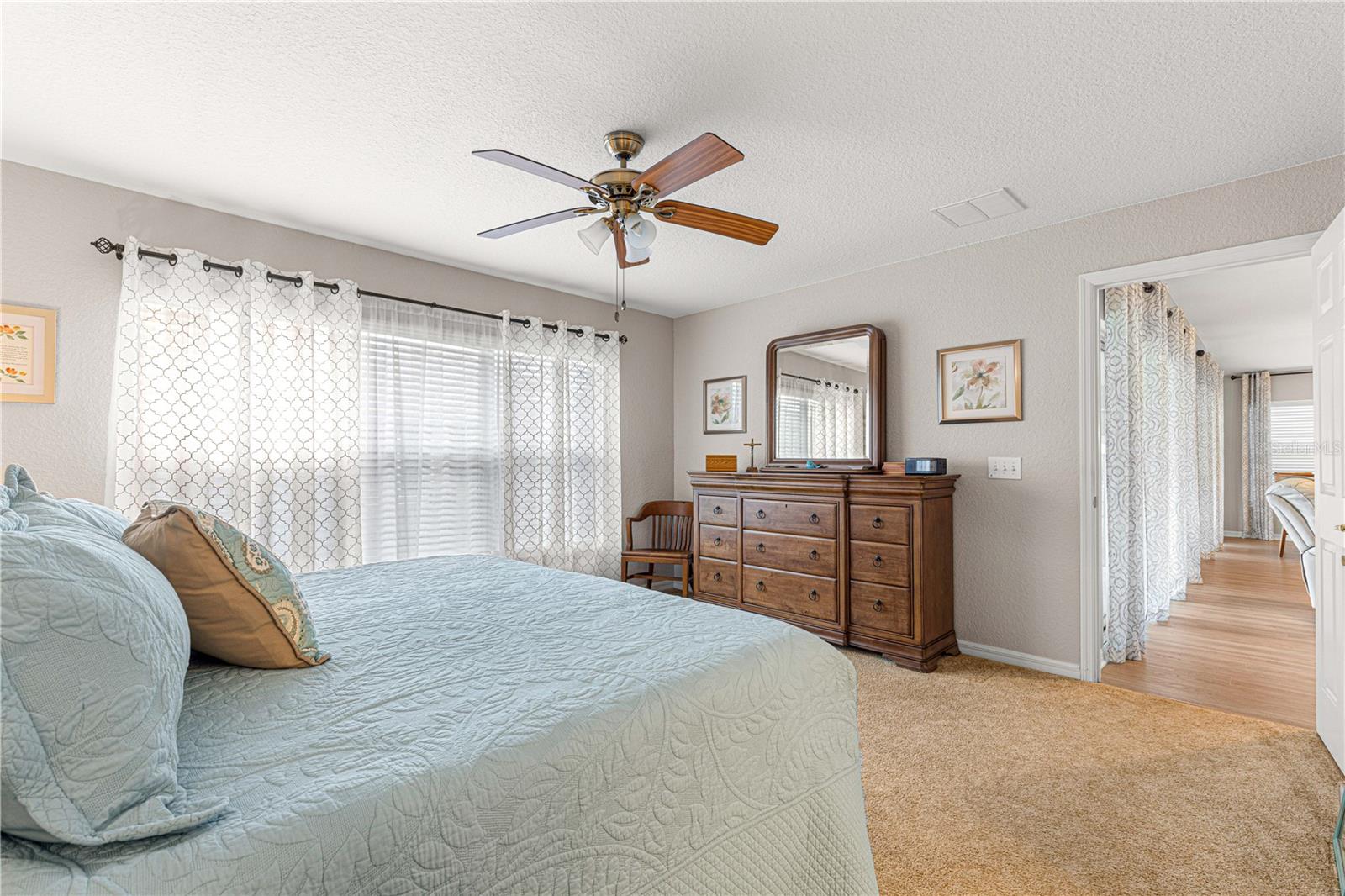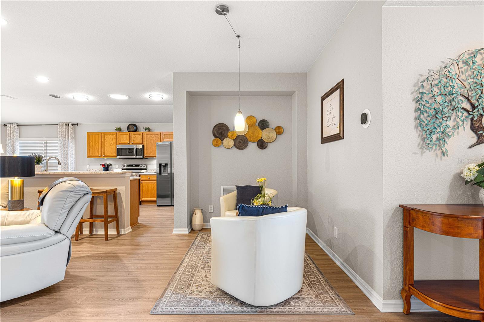 Bem-vindo a este lindamente mantido 3 quartos, 2 banheiros na casa no procurado 55 e melhor comunidade de Del Webb Spruce Creek Golf & Country Club. Esta planta popular de piso elkridge oferece apelo excepcional, com uma paisagem limpa e de baixa manutenção com detalhes em pedra, uma tela de garagem motorizada e uma porta de entrada de vidro com chumbo com uma tela de porta frontal retrátil para uma vida sem interior e saída interna. Entre em um espaço de vida de conceito aberto e aberto para entretenimento, com uma área flexível, jantar, bar de café da manhã e espaçosa sala de estar. O coração da casa é a cozinha atualizada, mostrando novas bancadas de quartzo, que combinam perfeitamente com os armários de carvalho sólido com puxões duplos, aparelhos de aço inoxidável mais recentes, espaço para despensa personalizada e um tubo solar para trazer uma abundância de luz natural. Desfrute de conforto durante todo o ano com pisos de vinil de luxo nas áreas principais, tapetes mais novos nos três quartos e um chuveiro primário de suíte primário recentemente remodelado. A casa também inclui atualizações práticas: um telhado reformulado (2014), novo HVAC (2023), aquecedor de água mais recente, escadas do sótão puxadas com armazenamento no sótão com piso, re-tubo de teto em busca de mente e uma válvula de desligamento de água interior elevada. Relaxe no Lanai, voltado para o sul, com tons solares perfeitos para desfrutar do sol sem o calor direto. A garagem estendida forneceu espaço adicional para armazenamento. Com sua localização privilegiada, atualizações atenciosas e comodidades no estilo resort, esta casa pronta para se mover é a mistura perfeita de conforto, conveniência e estilo.