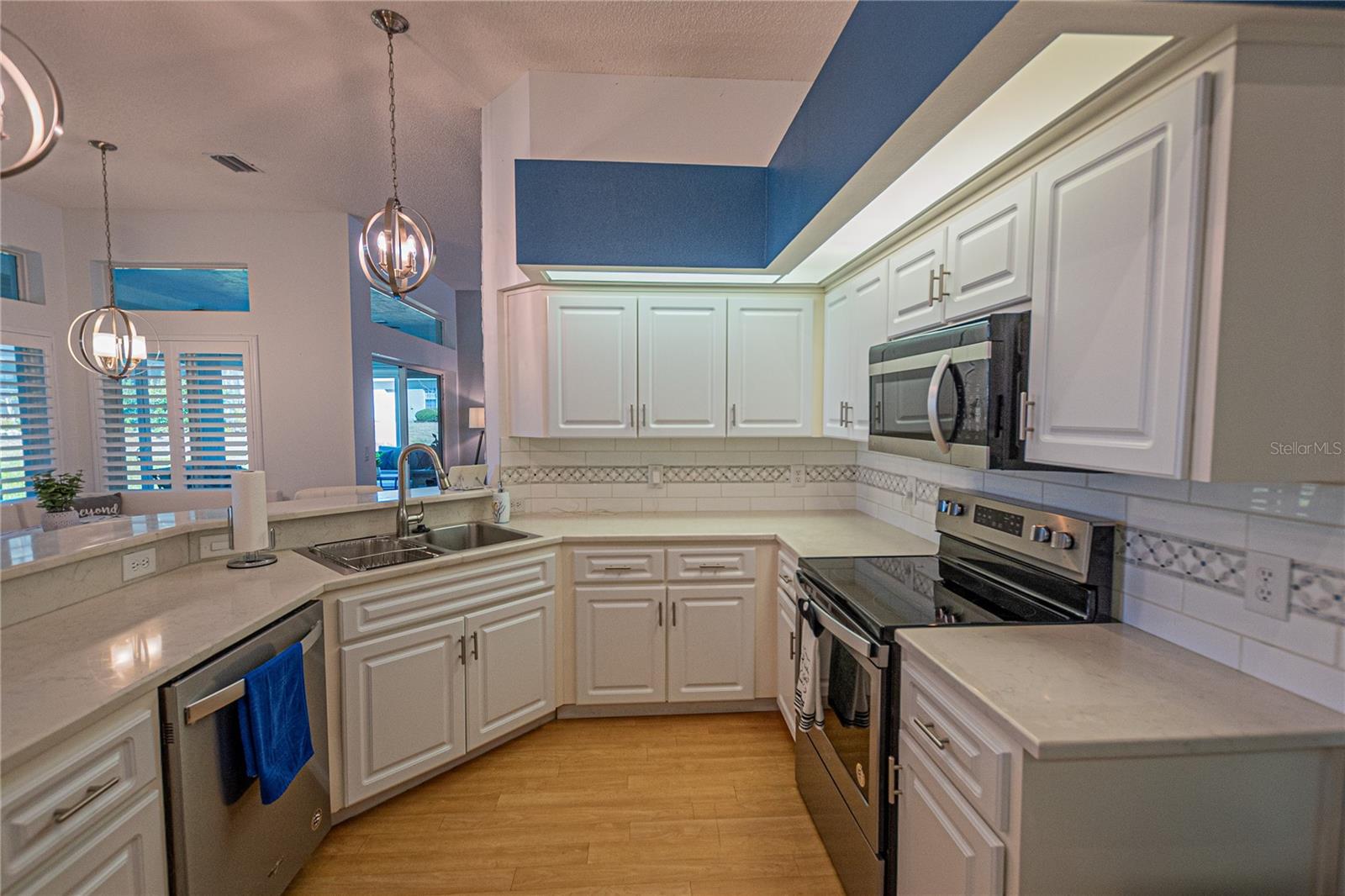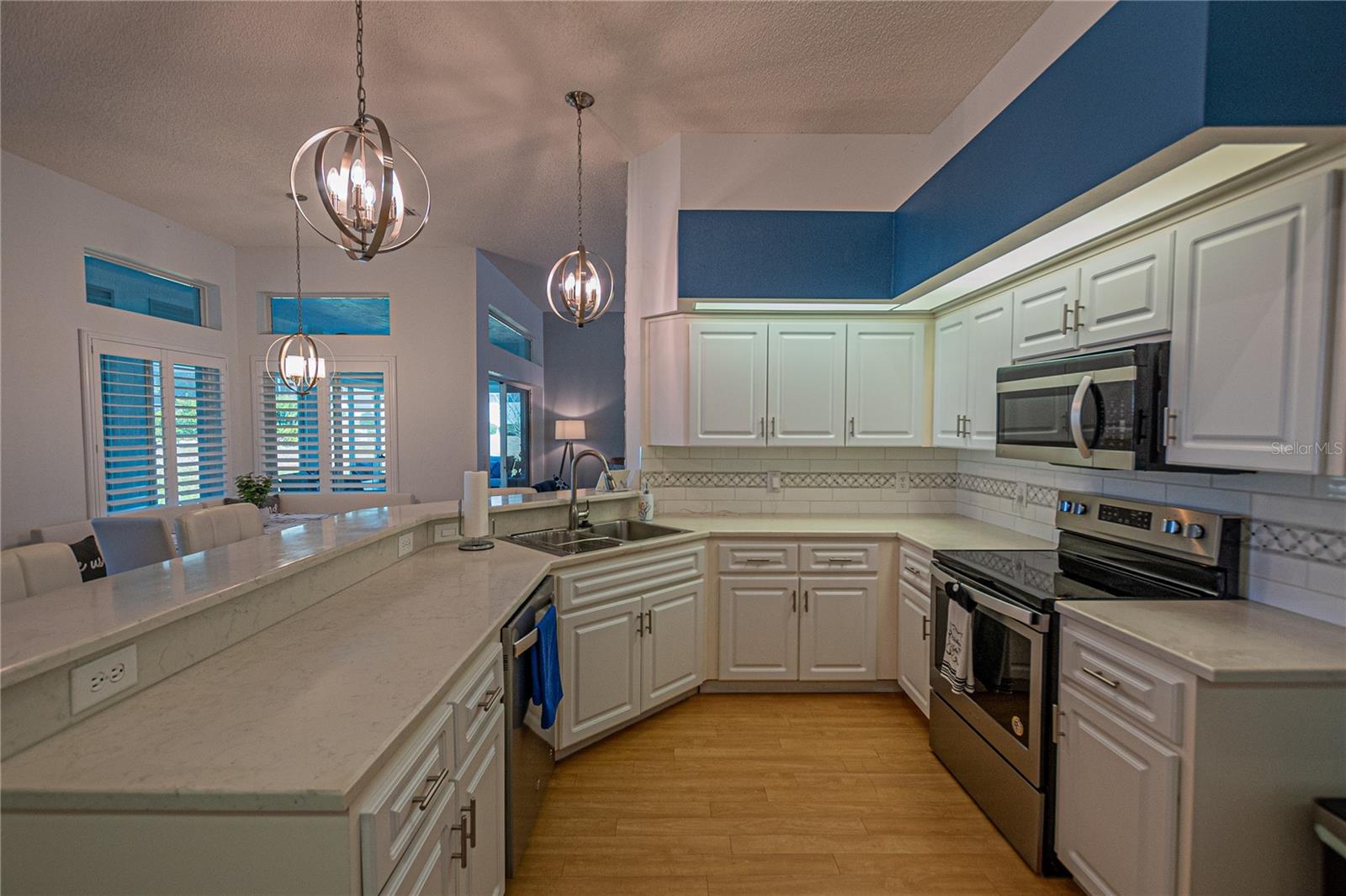 O novo preço e casa impressionantes são lindamente atualizados. Linda casa altamente atualizada em um beco sem saída. Acabamento personalizado na calçada e na calçada. Entre na porta de entrada da frente de vidro para uma sala de jantar formal e sala de estar formal. A sala tem uma bela lareira elétrica frontal de pedra. Pisos laminados por toda parte. Linda bancada de quartzo na cozinha com a frente de pedra na área do bar. Espaçosa grande sala fora da cozinha e os quartos são um plano dividido. Aparelhos de aço inoxidável mais recentes, lavadora e secadora mais recentes com lavanderia interna. Porta de chuveiro com vista clara no banho de hóspedes e banheira primária e um chuveiro grande, além de uma banheira de jato, 2 armários no quarto primário, novas torneiras e luzes por toda parte. A garagem abaixou as etapas de alumínio e a área de armazenamento, também uma pia em garagem e armários de armazenamento extras. O núcleo principal do HVAC foi substituído em 2022 e o telhado re-limpou 2017, o aquecedor de água novo em 2012. Há um vácuo central e um sistema de alarme. Novos fãs por toda parte. A Florida Room possui portas deslizantes de vidro com vista completa e abre para uma visão semi-privada expansiva. Ligue para sua exibição particular hoje.