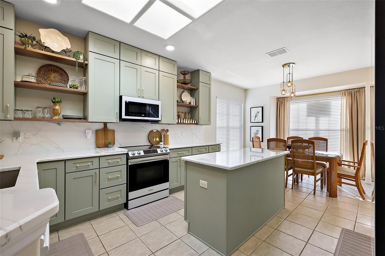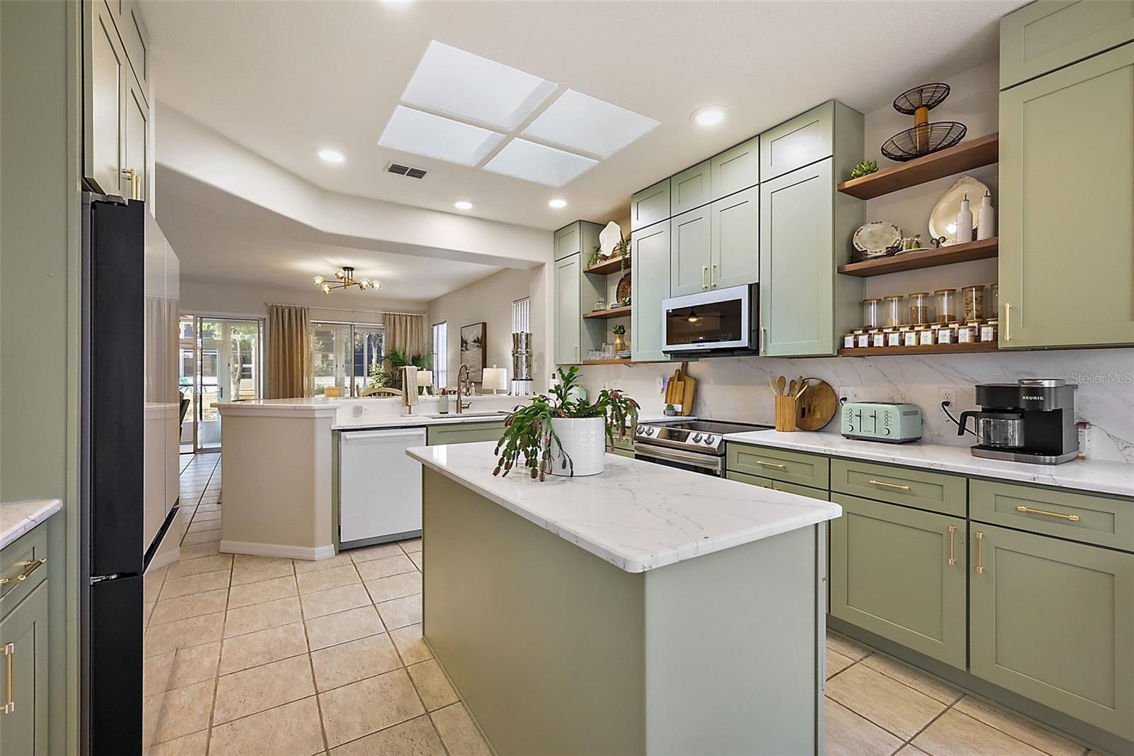 Localizado centralmente em Del Webb, na comunidade de St. Andrews, esta casa meticulosa de Santa Rosa tem um ótimo apelo de meio -fio, unidade de designer/passarela, curvação, pátio e tela de porta da frente retratível. Esta casa excepcional é uma planta baixa, 2 quartos, 2 banheiros, covil e combinação de sala de estar/sala de jantar. A cozinha foi completamente atualizada. Contadores de quartzo de alta qualidade e backsplash, armários de madeira, gavetas e portas de perto, prateleiras de nozes personalizadas, novos aparelhos Samsung, SS Sink & Taucet, além de iluminação especial. A cozinha também possui uma barra de café da manhã, ilha e clarabóia. A grande sala tem uma credenza embutida com top de quartos e uma lareira a gás para aquelas noites frias. O grande quarto primário tem janelas de sacada e portas duplas para um lanai de vidro recém -fechado. O banheiro primário tem um chuveiro grande com portas de chuveiro novas e sem moldura, nova vaidade com balcão de quartzo, nova pia dupla e torneiras, clarabóia e armário. Uma segunda clarabóia está localizada no corredor. O segundo banheiro tem vaidade atualizada e contador de quartzo. Grande segundo quarto. Todas as novas luminárias por toda parte. Lavanderia interna. Garagem de grandes dimensões (20'x25 ') com uma área adicional (9'x11 ") para carrinho de golfe ou armazenamento. Teto 2015. Hvac 2014. deve ver!