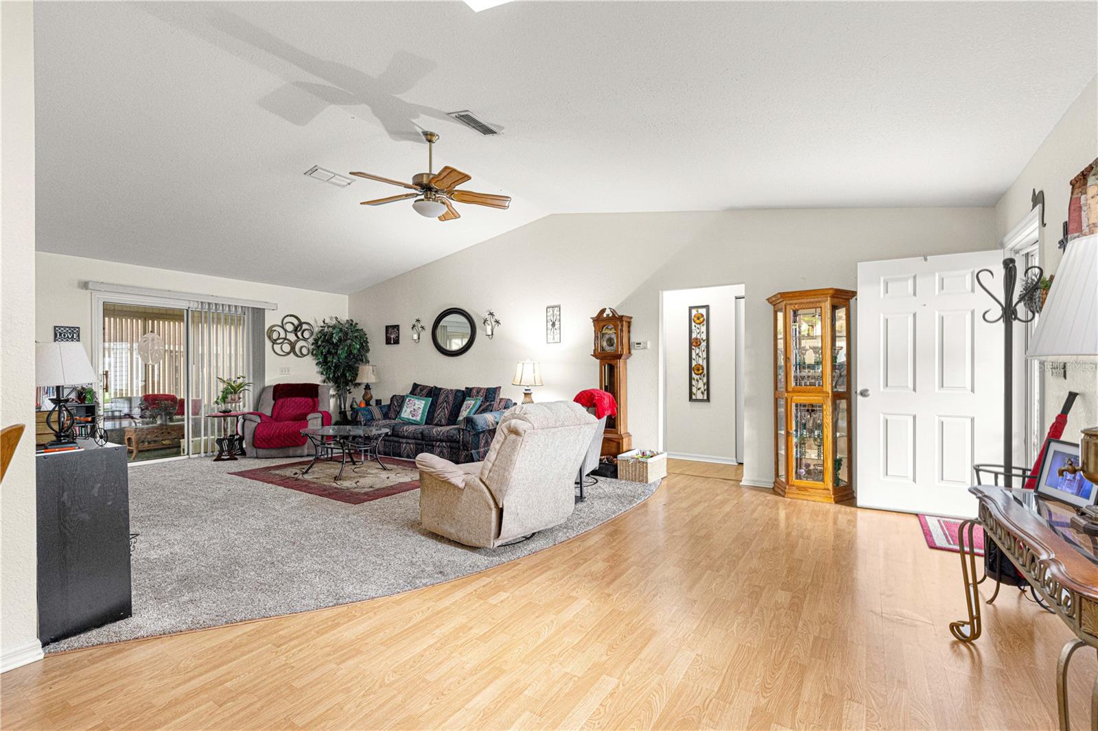 Minutos para as aldeias e compras. ! Move-in ready Dogwood model 3BR/2BA in Spruce Creek South with 1542 sq ft living area, split bedroom plan, covered front porch, open LR w/vault ceilings and no popcorn ceilings, spacious eat-in kitchen with all appliances, updated cabinets, high definition counter tops, cabinet lighting, seat-at bar & large dining area, primary suite w/walk-in closet & bathroom w/tiled shower, 2 guest bedrooms with Fãs de teto e armários DBL, banheiro de hóspedes com combinação de banheira de azulejos, e espaçosa sala da Flórida com janelas de acrílico para uma área de estar extra + garagem dupla com deslizantes de tela. Backyard w/Pavimentadora para grelhar e visitar os vizinhos. Telhado atualizado (2016), microondas embutido, (2020), porta de garagem com janelas (2019). Os extras incluem garagem decorativa, calhas/bicos, clarabóia para luz natural, pisos laminados. Spruce Creek South é uma comunidade de campo de golfe de 55 anos e betes com muitas atividades, incluindo shuffleboard, quadras de tênis, campo de softbol, piscina comunitária e restaurante no local. Não perca o grande preço de casa. Pergunte ao agente sobre as opções de um empréstimo de renovação em casa para fazer as atualizações que desejar e envolvê -lo na sua hipoteca. Os tapetes são recém -limpos, fora de casa foi recentemente lavado com pressão e o vendedor está oferecendo um pacote de eletrodomésticos ou crédito de US $ 2500 ao comprador no fechamento. Traga todas as ofertas razoáveis!