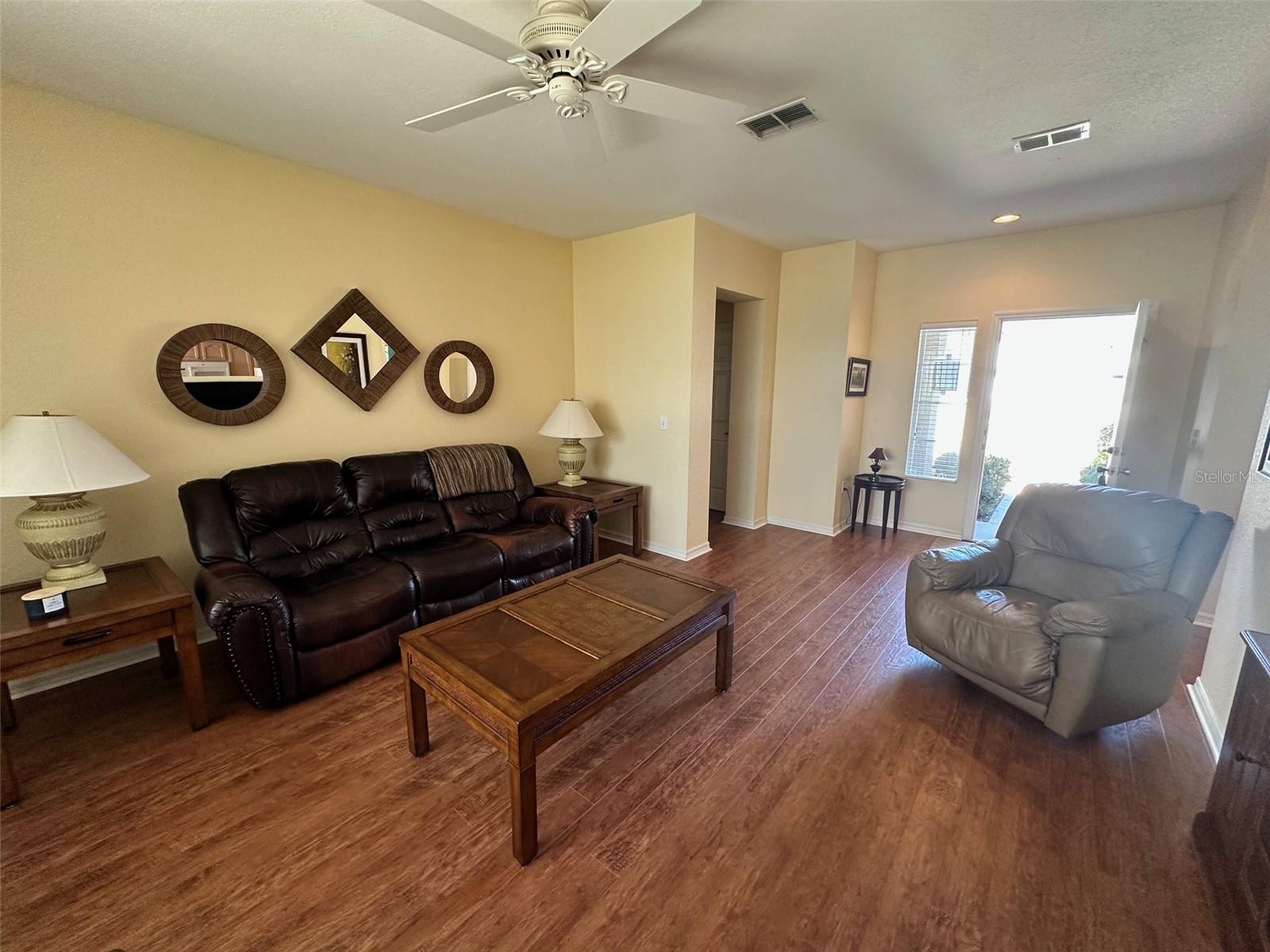 Turnkey 2/2 modelo Amelia com piso de madeira e carpete em quartos, coma na cozinha, além de um telhado novo em Lanai fechado sendo instalado. Casa localizada em uma grande sala de lotes privados para uma piscina ou lanai expandido. Casa tem piso de madeira na sala de estar e comer na cozinha, carpete em quartos fechados em Lanai com grande lote e espaço para uma piscina.