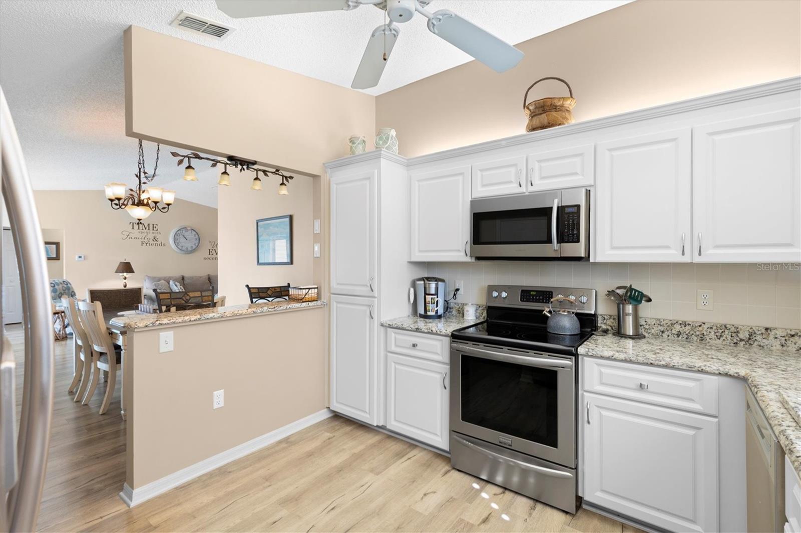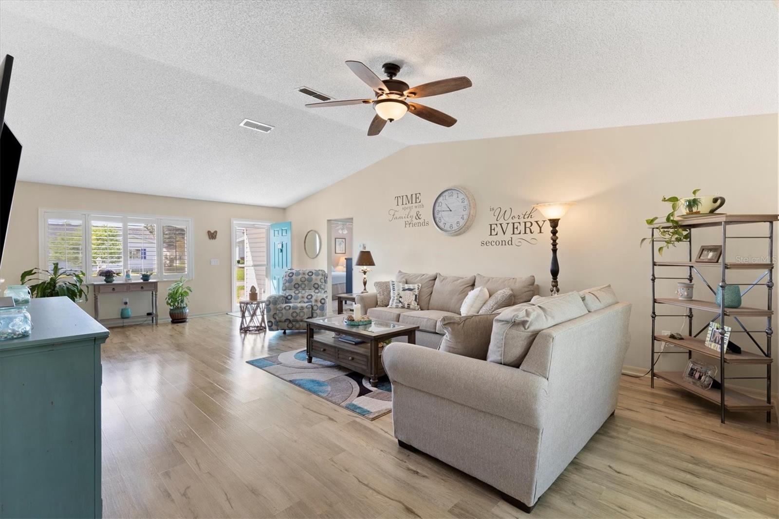 Esta casa lindamente atualizada oferece a mistura perfeita de conforto e luxo na comunidade serena e fechada de 55 golfe de Spruce Creek South, adjacente às aldeias, na Flórida! Apresentando painéis solares de propriedade que tornam as contas de serviços públicos quase insignificantes, esta residência é elegante e com eficiência energética. Após a entrada, o layout ao ar livre com tetos abobadados cria uma atmosfera brilhante e convidativa. Persianas de plantações e piso de tábua de vinil de luxo aumentam a elegância das principais áreas de estar, enquanto a cozinha possui granito, armários de fechamento suave e aparelhos de aço inoxidável mais recentes. Projetado para privacidade e conveniência, a planta baixa oferece um retiro espaçoso para os hóspedes, com dois quartos de tamanho bem e um banheiro de hóspedes com uma nova vaidade e um chuveiro/banheira de azulejos reagidos. A suíte primária é um verdadeiro santuário, completo com um teto alto, um grande armário e um banheiro lindamente atualizado. O banho primário apresenta bancada em granito com pias duplas, um chuveiro regulado com um novo vidro e vaso sanitário e um novo banheiro. Expandindo o espaço de estar, o Lanai fechado adiciona mais 240 pés quadrados, com pisos de telha de pedra cortados, janelas de inclinação fácil de formas duplas (substituídas em 2019/2020), persianas e uma unidade de A/C para conforto durante todo o ano. Além disso, uma sala selecionada de 12x12 oferece um cenário tranquilo para desfrutar de manhãs e noites tranquilas, completas com uma nova churrasqueira, mesa de teca e cadeiras, todas incluídas na venda. Um pátio coberto de 12x7 com uma pia de utilidade ao ar livre oferece o espaço perfeito para os entusiastas da jardinagem. Pacote de móveis disponível! Nova lavadora e secadora transmitem. A garagem completa de dois carros possui um novo abridor e telas de slide. As principais atualizações incluem um sistema HVAC (2019) e uma substituição de telhado em (2010). Localizado em um local tranquilo e conveniente, esta casa fica a apenas momentos do Community Center, que oferece uma piscina aquecida, sauna, banheira de hidromassagem e sala de fitness. Spruce Creek South fornece uma variedade excepcional de comodidades, incluindo um campo de golfe de 18 buracos, loja profissional, restaurante, campo de softbol, parque de cães, trilhas naturais, quadras de pickleball e tênis, vários clubes sociais, aulas de exercícios, uma biblioteca, bilhar e muito mais. Para maior conveniência, está disponível uma área de estacionamento designada de barco e RV. Oferecendo um estilo de vida de conforto, recreação e comunidade, esta impressionante casa em Spruce Creek South é um must-see absoluto! O vendedor fornecerá uma garantia de um ano em casa no fechamento.