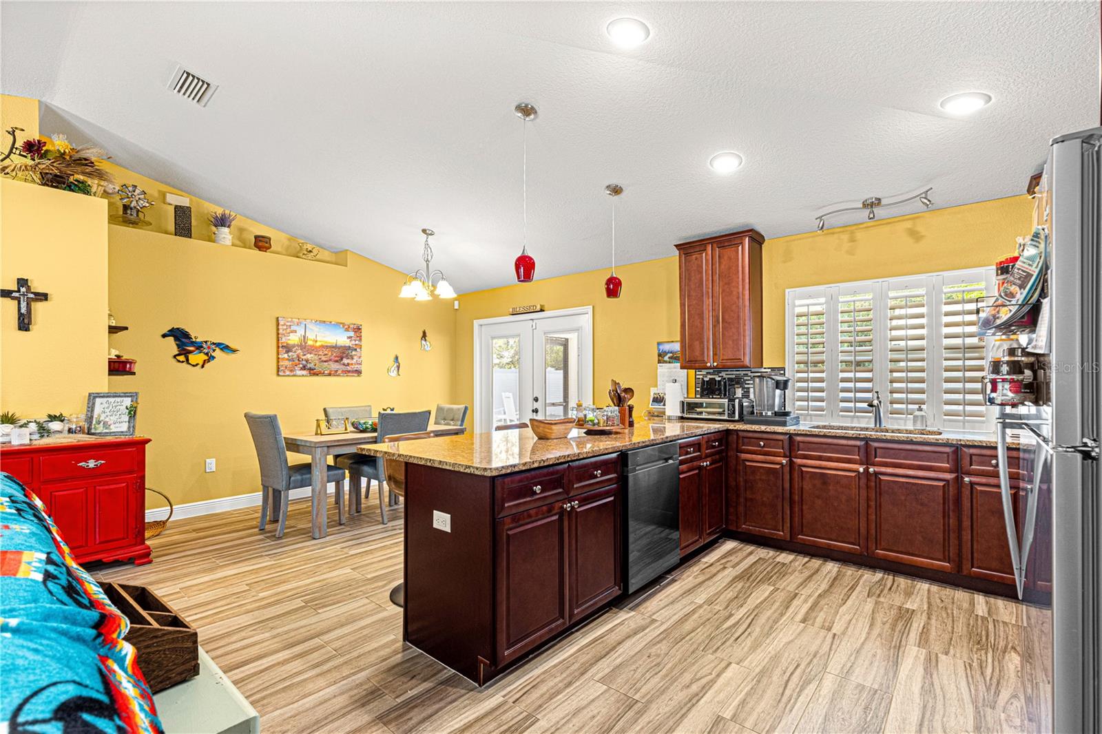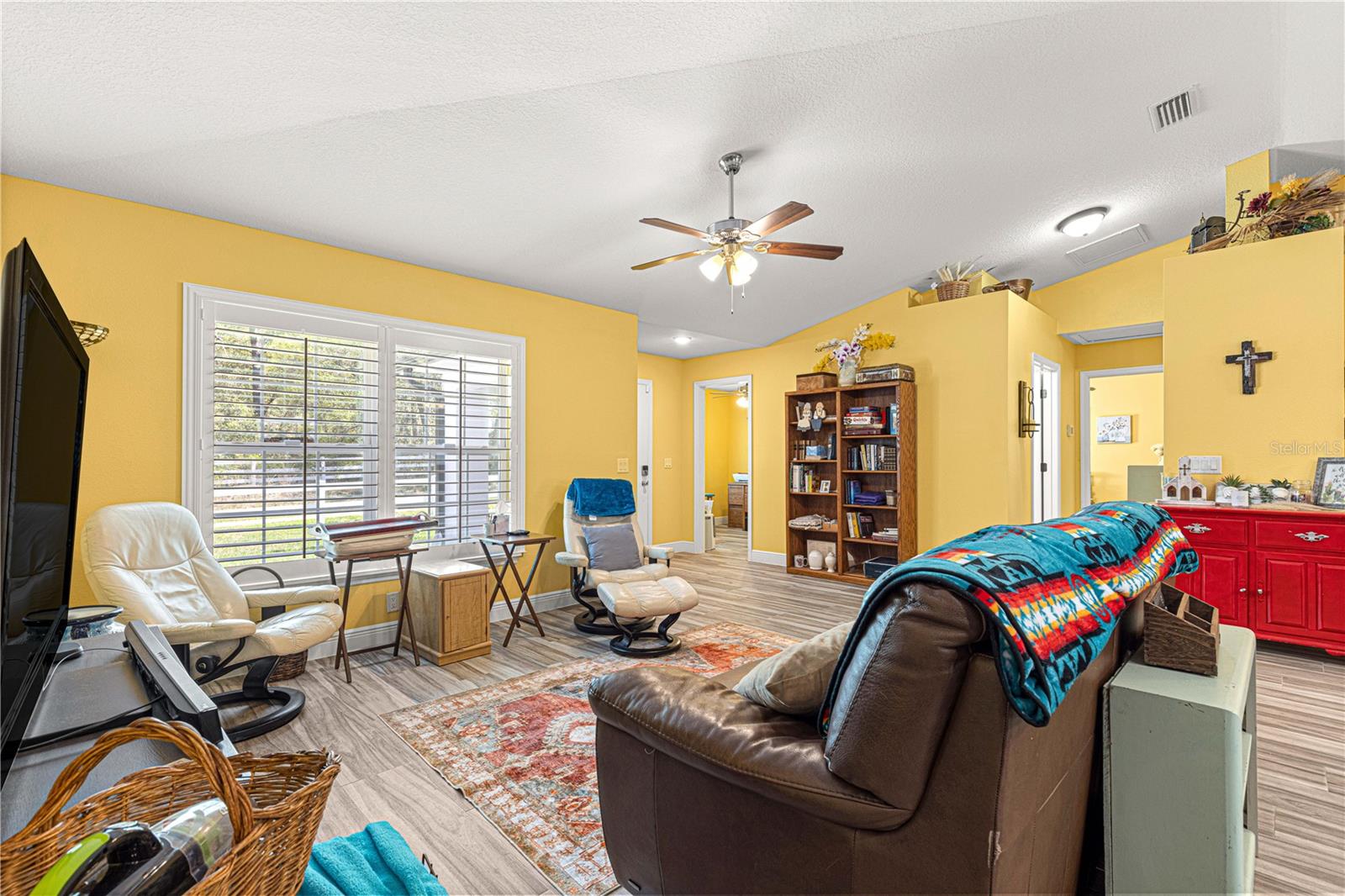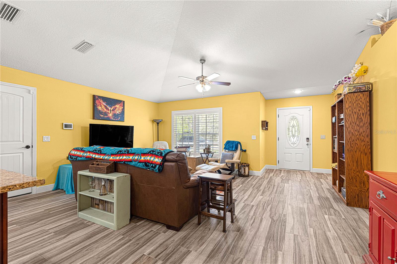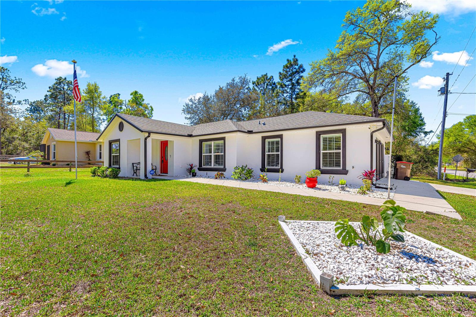 Brilhante, ousado e repleto de charme, esta casa de 2 quartos e 2 banheiros com um escritório/covil que poderia ser facilmente convertido em um terceiro quarto apresenta toneladas de novas atualizações, incluindo: toda a tinta dentro e por fora, guardas de calha, pisos de ladrilhos de madeira, Plantation Shutters, Filtration System e muito mais! Um passo dentro e você será recebido com um plano conceitual aberto com tetos de catedral, oferecendo uma grande sala de estar com prateleiras de plantas; Cozinha de comer com bar de café da manhã, bancadas em granito e utensílios de aço inoxidável; área de jantar espaçosa; Mestre com closet e banheiro privativo com chuveiro de azulejos; quarto de hóspedes; banheiro de hóspedes; Escritório/den que poderia ser facilmente convertido em um terceiro quarto; uma bela e ensolarada varanda fechada; Grande oásis de pátio para entretenimento ao ar livre; E um adorável quintal de vinil privado, completo com um galpão perfeito para uma oficina/armazenamento com elétrico existente em galpão e para uma banheira de hidromassagem! Esta casa é absolutamente imaculada, mova -se pronta e senta -se em uma maravilhosa comunidade pacífica perto das aldeias e Belleview, oferecendo um rápido trajeto para toneladas de comodidades! (Sem taxas de HOA ou HOA.)
