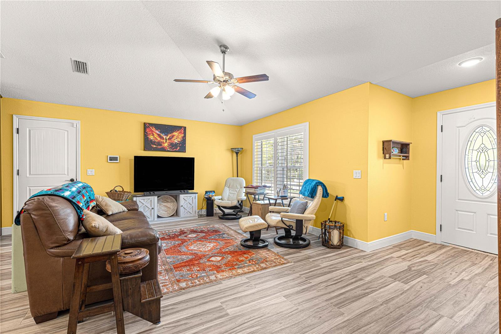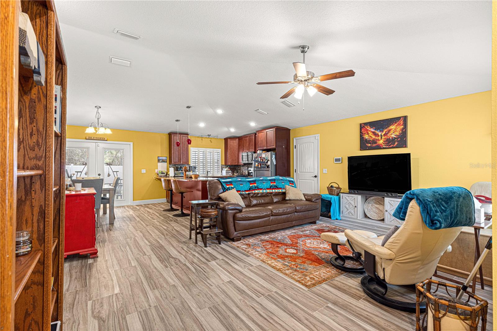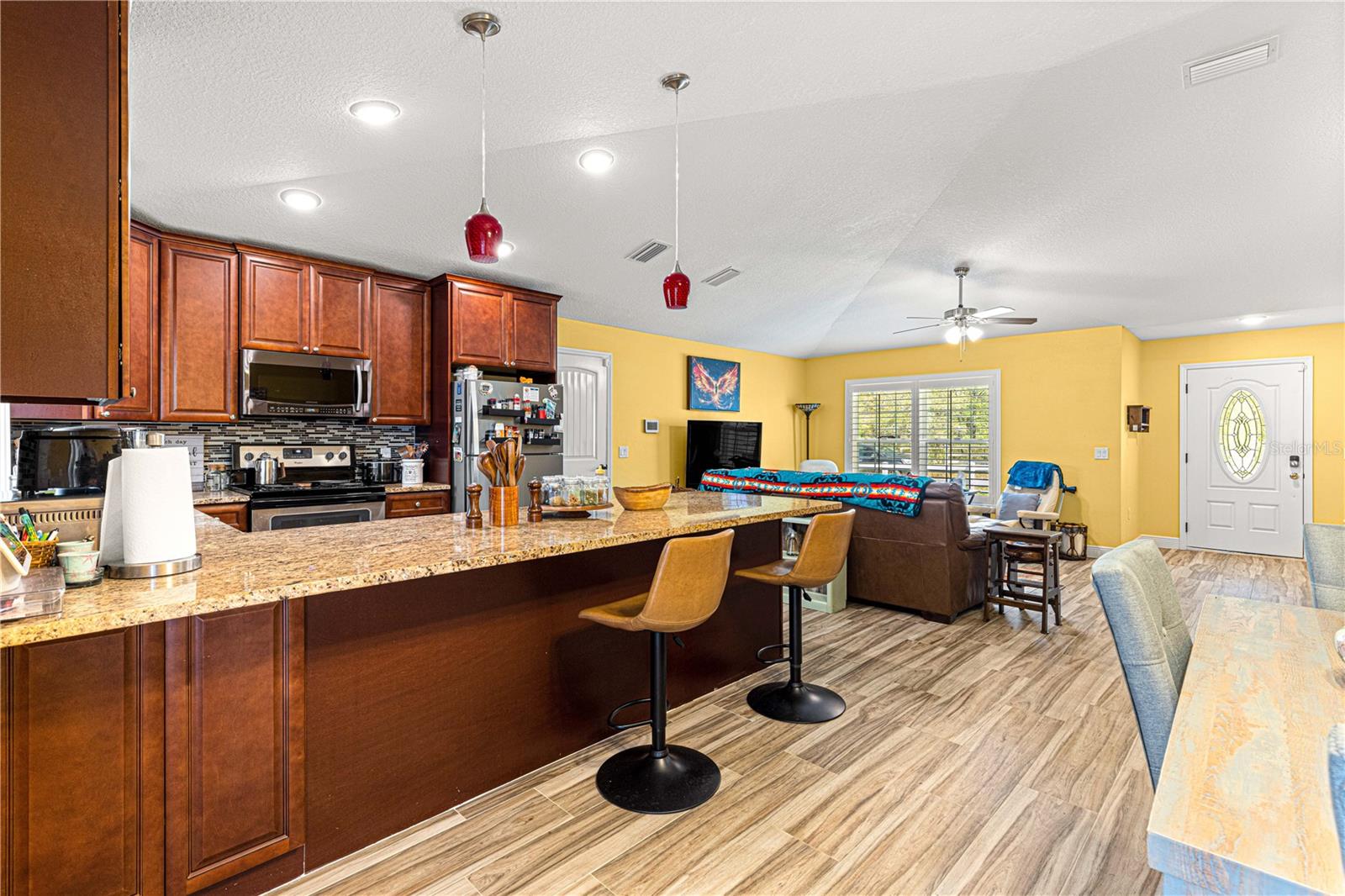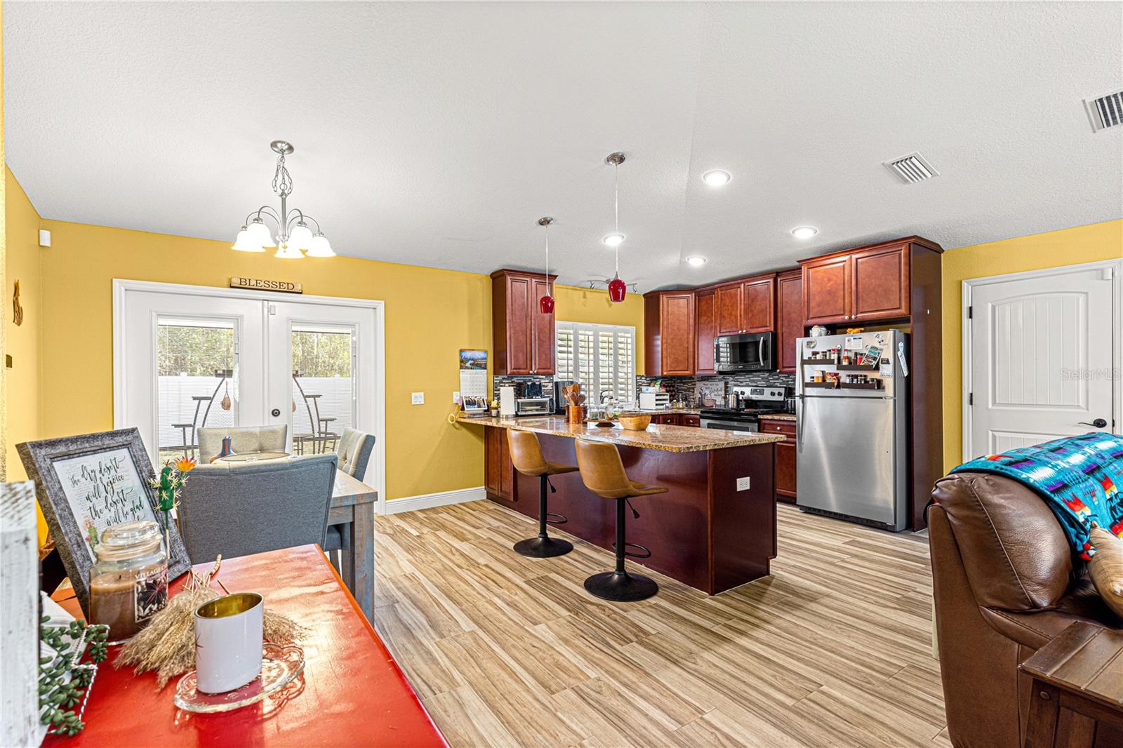 Brilhante, ousado e repleto de charme, esta casa de 2 quartos e 2 banheiros com um escritório/covil que poderia ser facilmente convertido em um terceiro quarto apresenta toneladas de novas atualizações, incluindo: toda a tinta dentro e por fora, guardas de calha, pisos de ladrilhos de madeira, Plantation Shutters, Filtration System e muito mais! Um passo dentro e você será recebido com um plano conceitual aberto com tetos de catedral, oferecendo uma grande sala de estar com prateleiras de plantas; Cozinha de comer com bar de café da manhã, bancadas em granito e utensílios de aço inoxidável; área de jantar espaçosa; Mestre com closet e banheiro privativo com chuveiro de azulejos; quarto de hóspedes; banheiro de hóspedes; Escritório/den que poderia ser facilmente convertido em um terceiro quarto; uma bela e ensolarada varanda fechada; Grande oásis de pátio para entretenimento ao ar livre; E um adorável quintal de vinil privado, completo com um galpão perfeito para uma oficina/armazenamento com elétrico existente em galpão e para uma banheira de hidromassagem! Esta casa é absolutamente imaculada, mova -se pronta e senta -se em uma maravilhosa comunidade pacífica perto das aldeias e Belleview, oferecendo um rápido trajeto para toneladas de comodidades! (Sem taxas de HOA ou HOA.)
