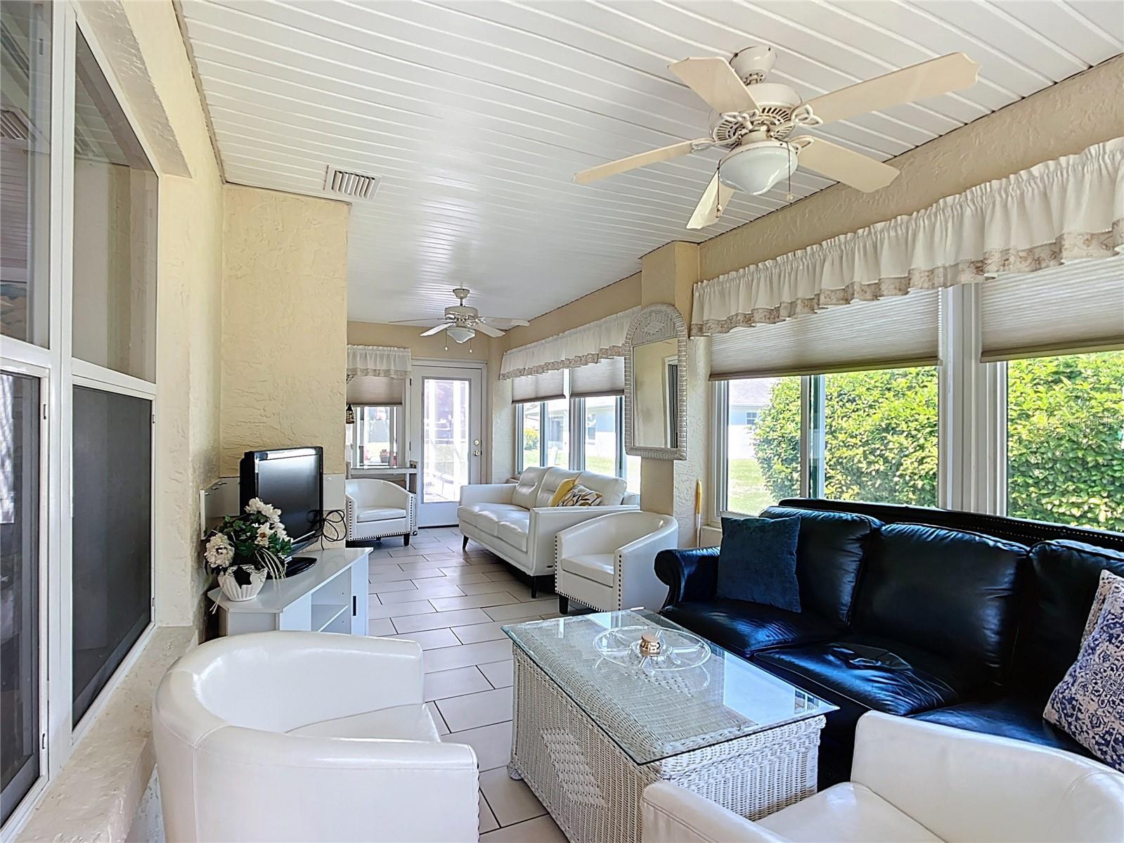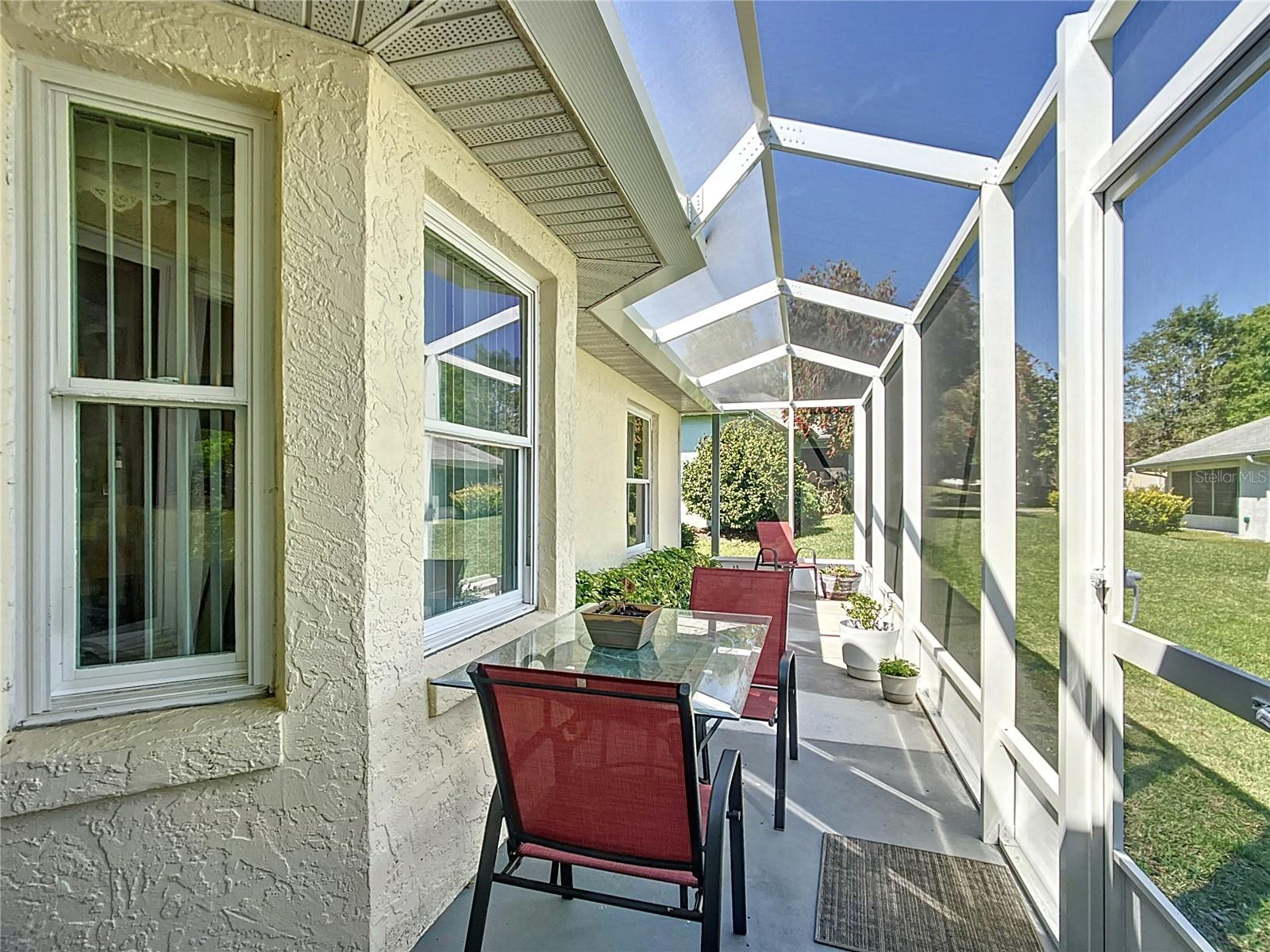Deve ver! Este é um bloco de concreto modelo de Monterey e uma casa de estuque com um novo Lanai, instalado em março de 2025). Plano de cozinha aberta maravilhosa com um recanto de café da manhã, armários de madeira, bancadas em granito e utensílios de aço inoxidável. Planta de piso dividido, sala da Flórida com janelas deslizantes de vidro. O terceiro quarto possui um escritório embutido com uma mesa, armários, uma cama Murphy e um grande closet. Roof 2016, A/C Carrier Deluxe 2019, Water Shield softener and water purifier 2017, washer and dryer 2024 disposal 2014, microwave 2021, stove 2021, refrigerator 2022, wood engineered flooring 2018, Water heater 2024. Double-hung windows & new sliding glass door in 2022, Floors in bedrooms and bathrooms are tile with a wood look (2021), and a new master bathroom e o chuveiro em 2021. A casa é de 1793 pés quadrados (1559 pés quadrados, na Florida Room, sob calor e ar), a garagem possui uma porta de tela remota. Stonecrest é uma comunidade de campo de golfe fechado de mais de 55 adultos com um clube de campo e todas as comodidades. Piscinas internas e externas e apenas um carrinho de golfe para fazer compras e as aldeias.