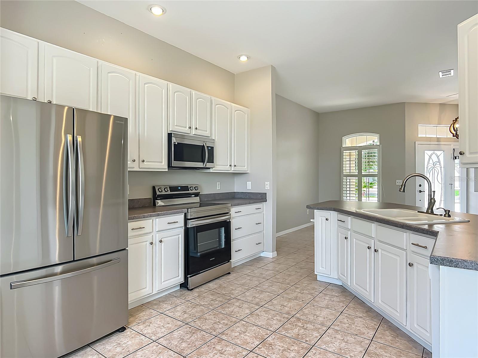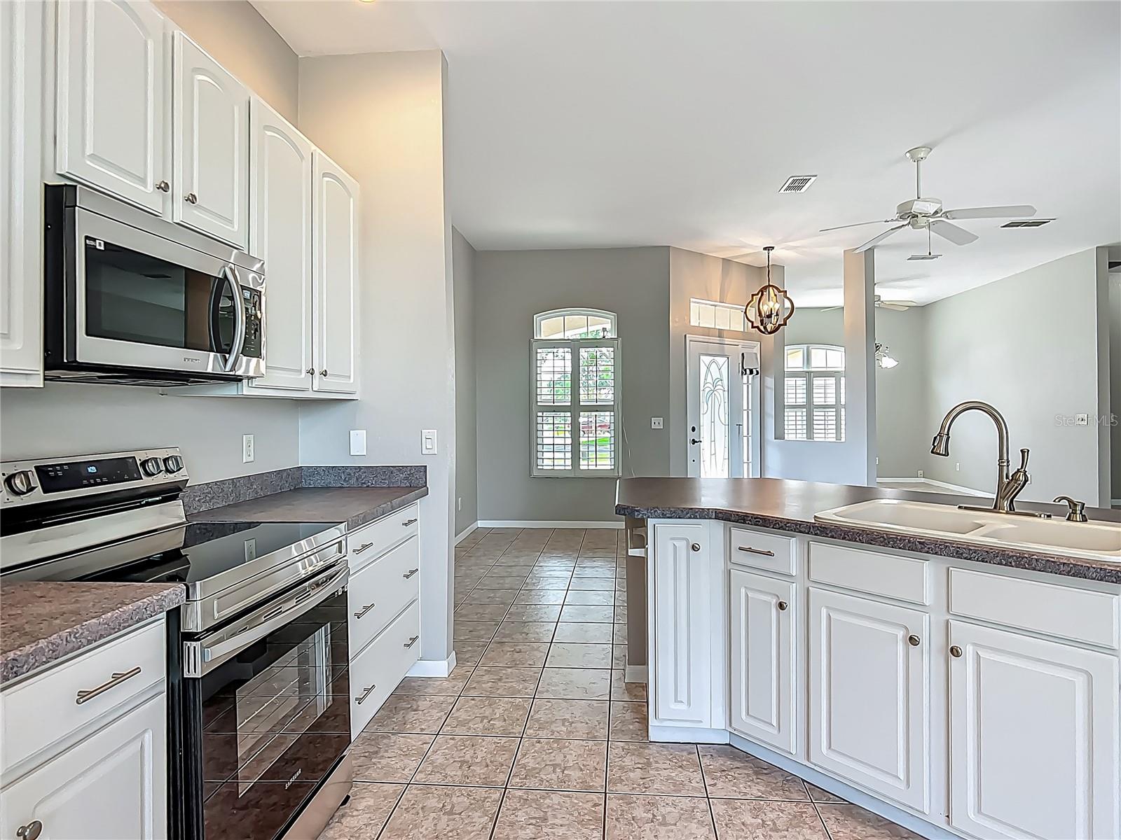 Uma ou mais fotos foram praticamente encenadas. Venha dar uma olhada nesta imaculada casa bem mantida localizada no exclusivo Comunidade de Stonecrest com mais de 55 fechaduras com toneladas de comodidades e adjacente às aldeias. Esta casa incrível possui uma abundância de atualizações, incluindo: novo telhado 2022, HVAC 2022 com uma garantia transferível, pacote de janelas e porta do novo Lanai 2022, tinta externa e interior 2022, 6 janelas substituídas em 2022, pisos de pisca de 2023, pisos 2023, passos de entrada de tanques e tanques de pátio, andulações de água de 2022. Aninhado em um beco sem saída tranquilo com um quintal privado que inclui uma vista pitoresca de pasto. A bela entrada longa de longa pintura personalizada o levará direto para a sua casa brilhante e arejada de 2 quartos/2 banheiros, além de uma área de bônus. A planta baixa de conceito aberto com tetos altos e pisos altos na sala de estar, cozinha e área de bônus oferece muito espaço para entreter familiares e amigos. A cozinha de comer inclui aparelhos mais novos, uma despensa e uma linda janela com vista para o seu charmosa quintal privado, tornando este um lugar perfeito para aproveitar o café da manhã. O quintal tem acesso a uma área de caminhada serena, perfeita para passear com seu cachorro. O lanai fechado com carpete novo traz muita luz natural e oferece uma excelente vista e acesso ao seu quintal. Este é um ótimo espaço para relaxar com um livro e aproveitar sua bebida de noite favorita. Fora da sala de estar, há uma área de bônus que pode ser usada como uma área de jantar, escritório em casa, den, estudo, artesanato ou qualquer coisa que você quiser. O quarto principal é espaçoso e possui um grande closet de 14 'x 6', que inclui um organizador de armário instalado profissionalmente, oferecendo muito espaço para armazenar suas roupas e pertences. Os banheiros convidados e primários são extremamente limpos, bem conservados e atualizados. Há muitas oportunidades de armazenamento nesta casa, incluindo um armário no corredor e toneladas de prateleiras de armazenamento aéreo na garagem. Vamos falar de garagem! A garagem foi instalada recentemente com ladrilhos de garagem entrelaçados. Parece incrível! Além disso, o carrinho de golfe elétrico com atualizações recentes está incluído! As dimensões da garagem são 21 'x 24'. Muito espaço para o carrinho de golfe e seu veículo. Nada a fazer senão me mudar e começar a se divertir! O Stonecrest oferece uma variedade de comodidades, incluindo quatro piscinas, spa, fitness center, clubhouse, 12 quadras de pickleball, campo de softbol, 18 buracos de golfe de campeonato e um restaurante e mais de 90 clubes para escolher, incluindo: shuffleboard, tênis, cornhole, bocha e muito mais. O Stonecrest está convenientemente localizado adjacente às aldeias onde você pode ver entretenimento ao vivo grátis todas as noites. Sempre há algo para fazer!