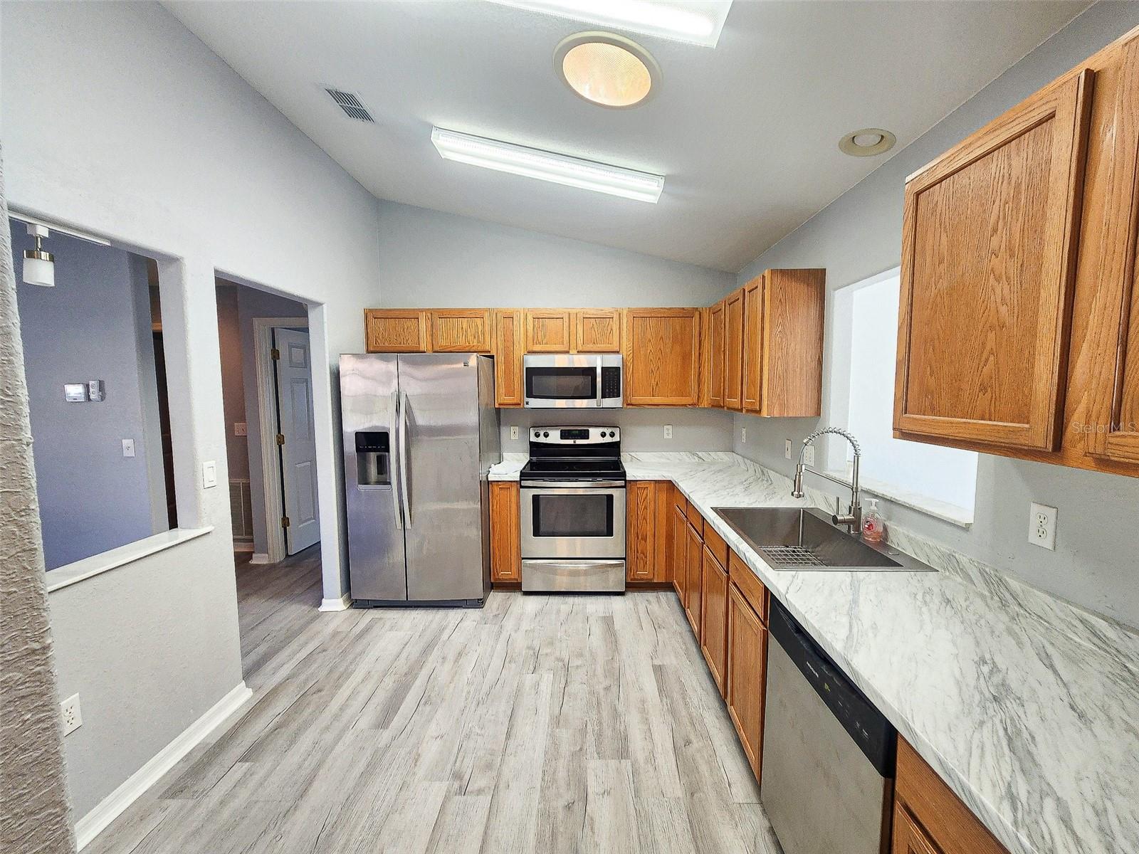 Linda casa de estuque com 3 quartos e 2 banheiros, piso de vinil de luxo ou cerâmica em todos os quartos, exceto o quarto nº 2, que tem carpete. Grande sala da Flórida sob calor e ar e lanai selecionado. Banheiro primário atualizado, luzes e ventiladores atualizados, sala de jantar formal, ótima cozinha com área para uma área de jantar. Localizado em uma área tranquila da comunidade. HVAC Novo em 2022 e telhado 2022. Mova -se pronto! Homes também está disponível para alugar