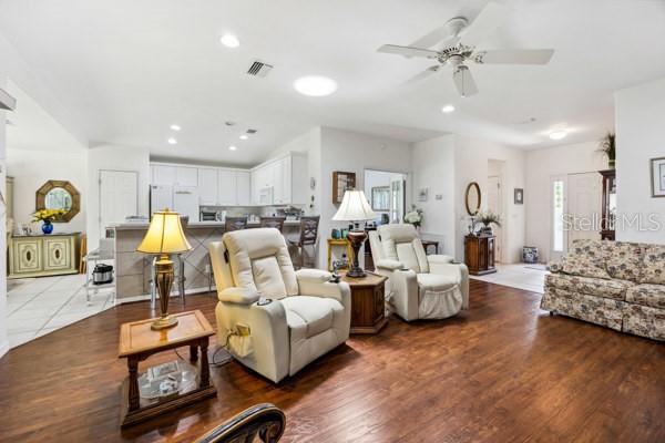 NÃO PERCA A CHANCE DE POSSUIR ESTA CASA PENSADAMENTE PROJETADA EM UMA COMUNIDADE DE 55+ VIBRANTE E RICA EM COMODIDADES, onde conforto, conveniência e estilo de vida se unem! Esta acolhedora e convidativa casa Citation Model em Del Webb Spruce Creek Golf & Country Club Community oferece uma planta flexível dividida de 2 quartos e 2 banheiros, além de um escritório/escritório dedicado - completo com mesas, perfeito para trabalhar em casa ou desfrutar de hobbies. O quarto da frente possui uma conveniente cama embutida, maximizando o conforto e a funcionalidade. Desfrute de um layout de conceito aberto que conecta perfeitamente a espaçosa sala de estar, cozinha e área de jantar, criando um espaço ideal para relaxar ou se divertir. A suíte principal inclui closet e banheiro privativo com pias duplas e box amplo. Os destaques adicionais incluem lavanderia interna, uma varanda fechada que amplia seu espaço de convivência e um sistema de filtragem de água para toda a casa Bitiapro para maior tranquilidade. Telhado 2024; Aquecedor de Água Quente 2012; A/C 2005 com manutenção 1x/ano; Geladeira e Máquina de Lavar Louça Novas, Lavadora e Secadora; Nova tela de garagem