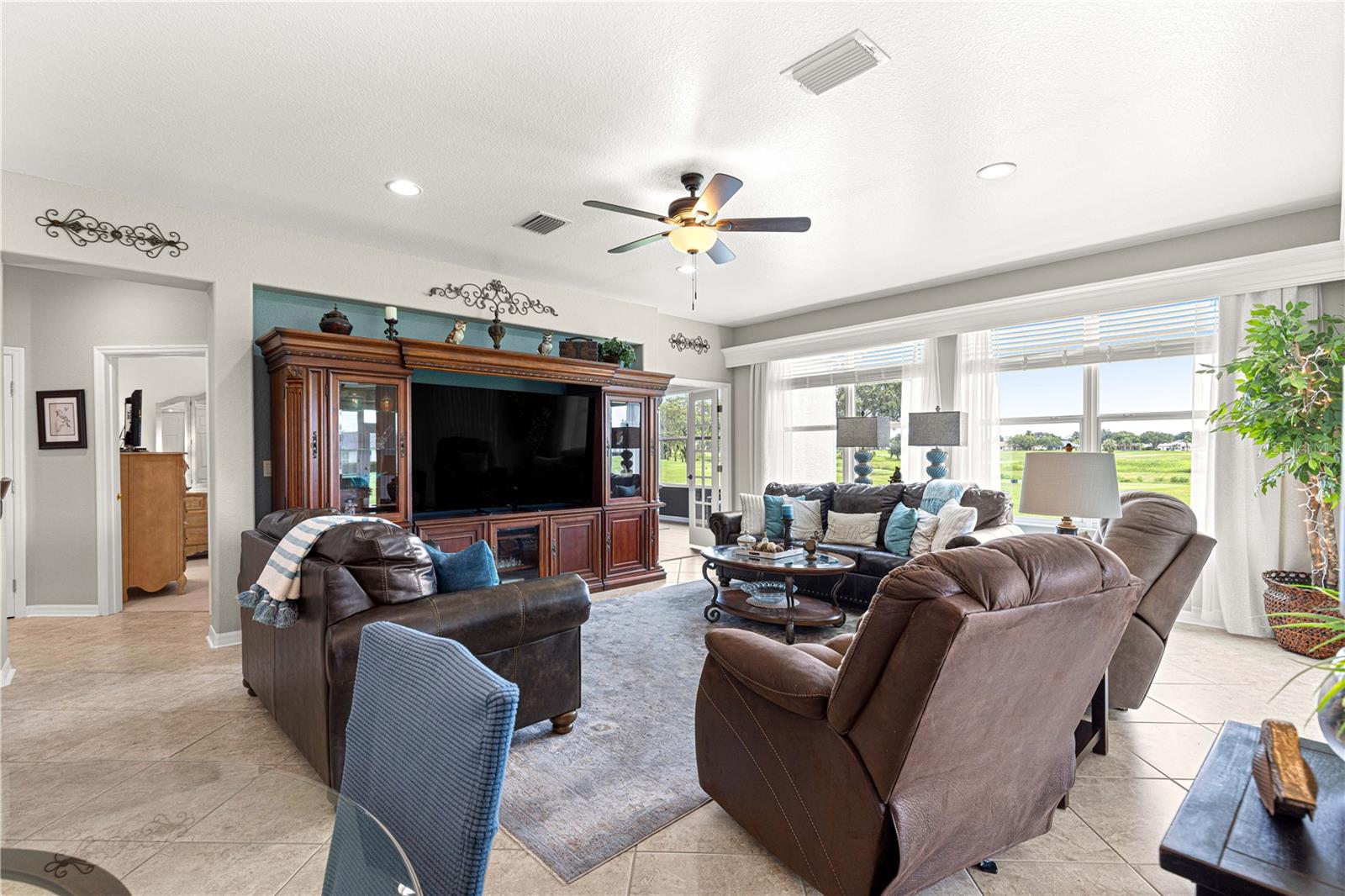 Procurando uma casa grande perto de The Villages. Bem-vindo a esta bela casa no Guard Gated Del Webb Spruce Creek Golf & Country Club. Esta casa está situada no terceiro buraco do Masters Golf Course, oferecendo vistas deslumbrantes dos buracos um e dois. Com 2.806 pés quadrados ao lado da varanda aquecida e resfriada, totalizando 3.222 pés quadrados. Esta casa oferece a melhor combinação de luxo e conforto – e não há títulos ou taxas de CDD. Este LEXINGTON (o maior modelo de planta construída em Del Webb) 3/2 mais um modelo de escritório/arrumos com varanda fechada e garagem para 3 carros, tem muito espaço para piscina! Passe pela grande entrada de porta dupla para ser recebido por vistas deslumbrantes do campo de golfe. Desfrute do café da manhã ou do pôr do sol à noite nesta ampla varanda fechada com vista para a vegetação bem cuidada. A grande cozinha com ilha, tem iluminação enlatada e área de trabalho com vista para a grande sala familiar. Esta é uma planta dividida que é perfeita para os hóspedes. Uma grande suíte principal com portas de vidro deslizantes para a varanda fechada. O banheiro privativo tem um grande closet, chuveiro, pias duplas e banheira de jardim. Três Mini Splits instalados recentemente. O lote ao lado está vazio, proporcionando muito espaço para desfrutar do ar livre. Há tantas atualizações e recursos para esta bela casa. A Comunidade está repleta de atividades, (Club house, golfe, academia de ginástica, campo de softball, quadra de basquete, ferraduras, shuffleboard, bocha, pista de caminhada, pavilhão no lago, 3 piscinas, 2 banheiras de hidromassagem, bilhar, quadras de pickleball, salão de festas, salas de hobby, atividades sociais diárias). Restaurante Liberty Grill próximo ao Horizen Center Clubhouse. Casa pintada por dentro e por fora em 2023, Novo isolamento de sótão instalado em 2024, Kitchen Back Splash 2023, Aquecedor de água quente 2025. O proprietário é o agente