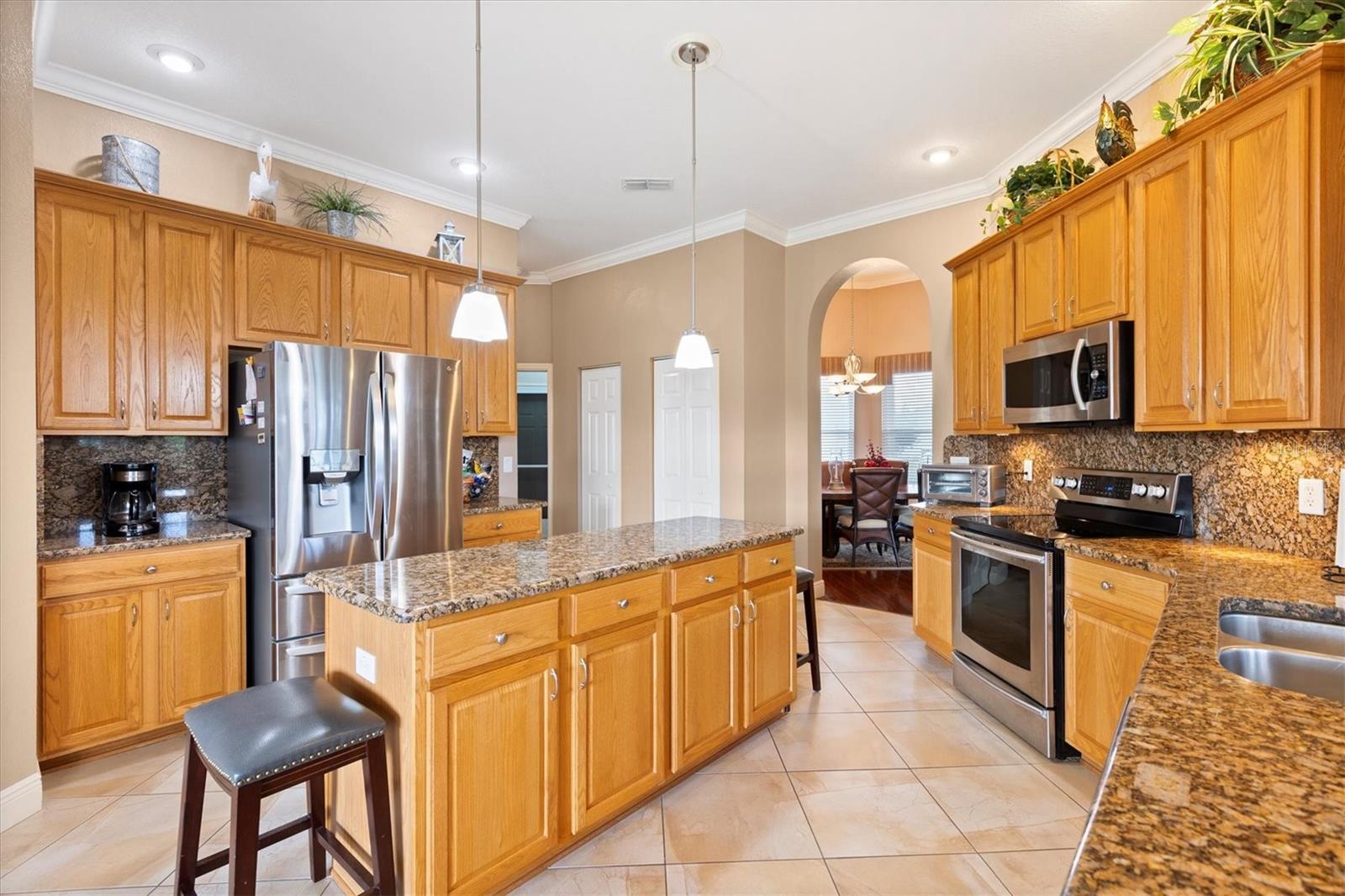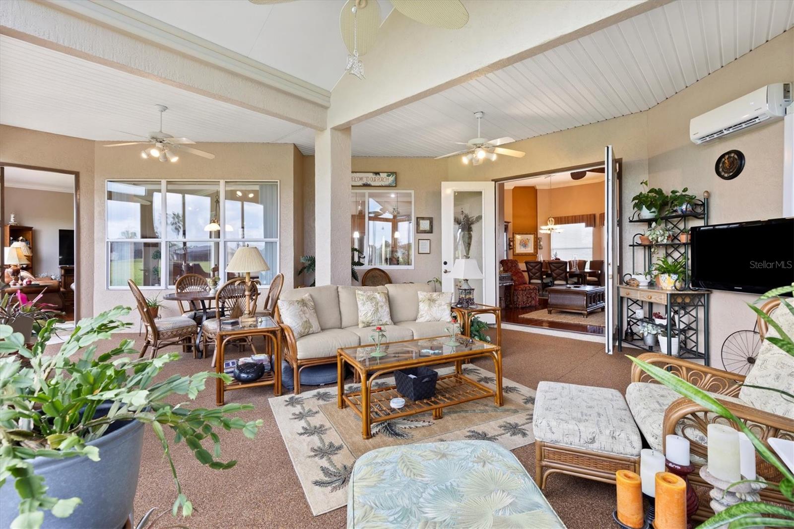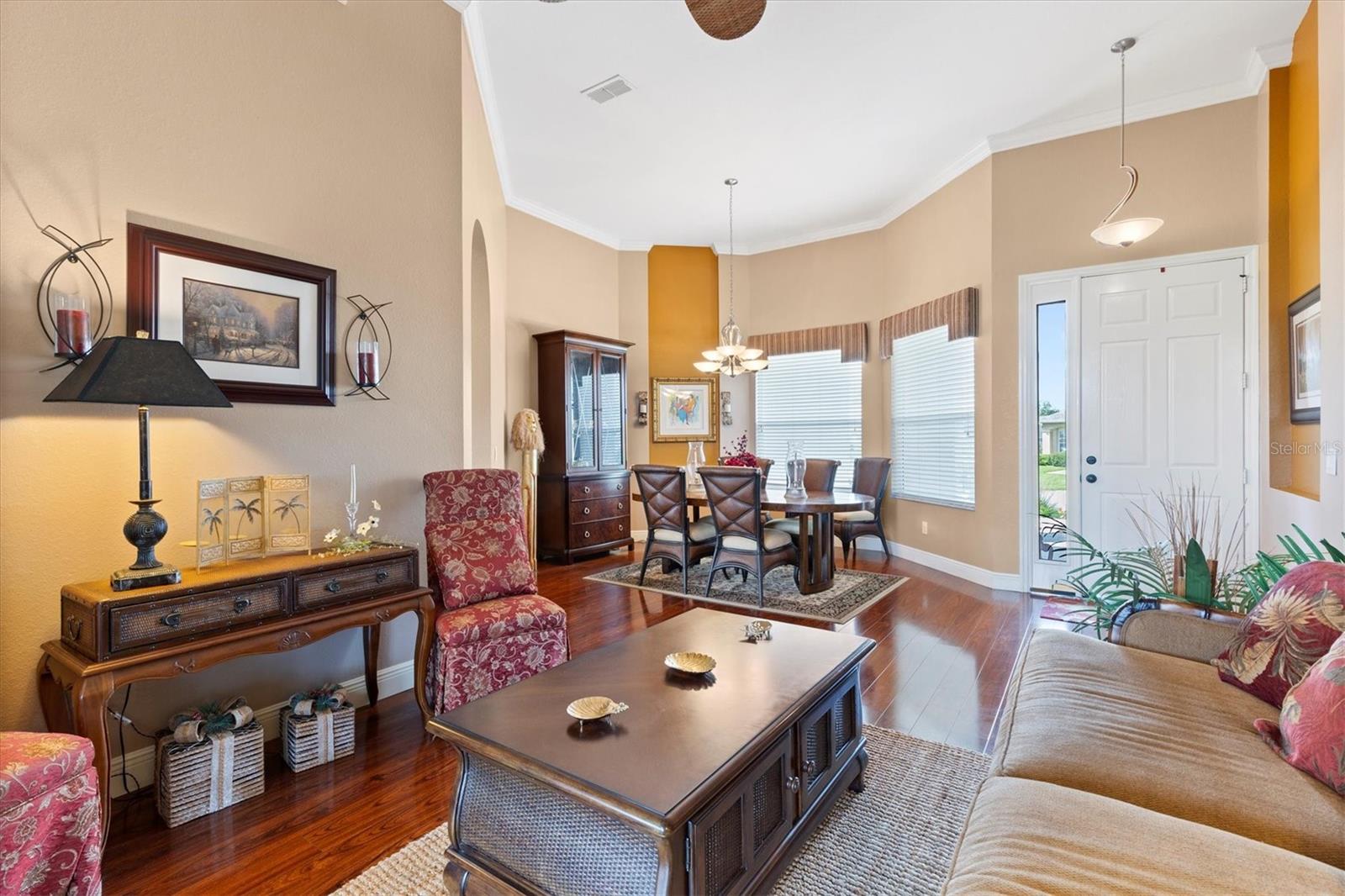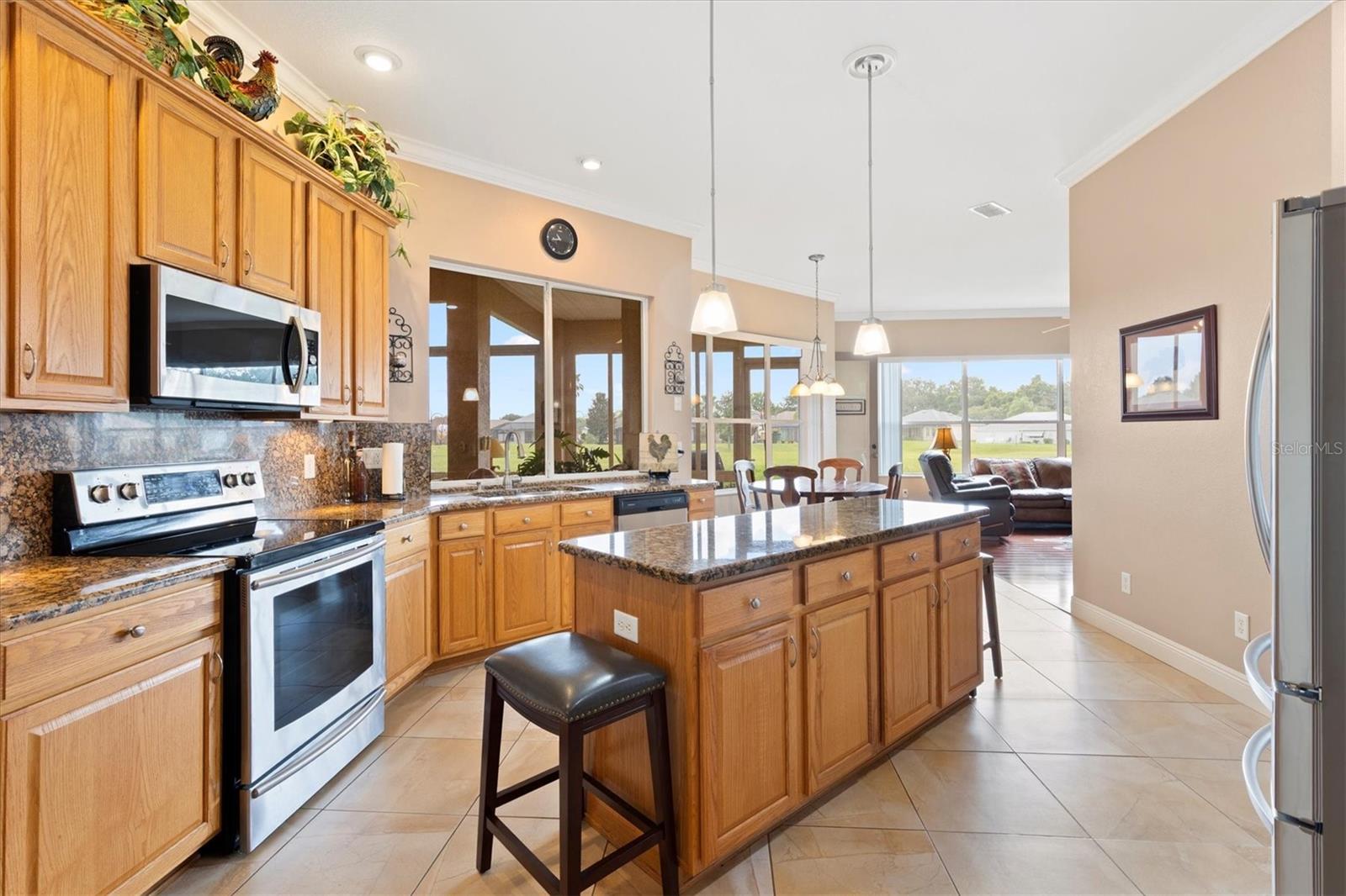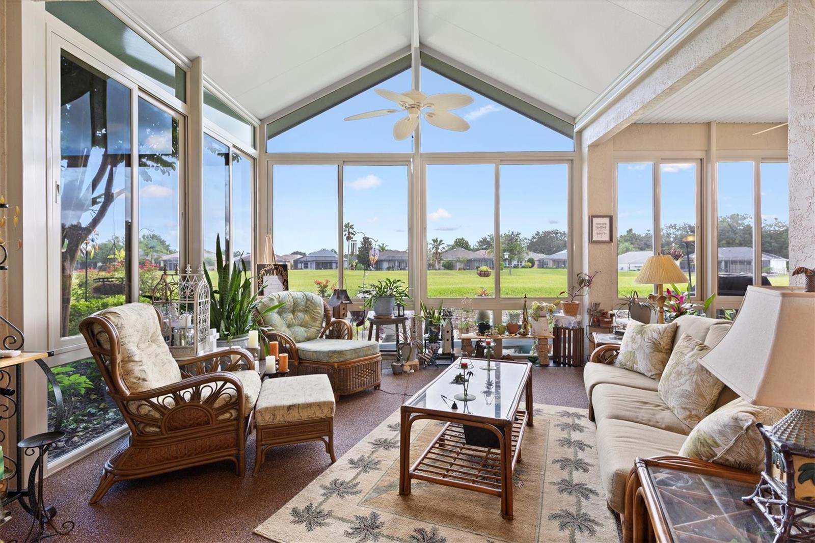 Stonecrest 55+Comunidade de campo de golfe com todas as munições e 4 piscinas. Este impressionante modelo San Marco personalizado está localizado no terceiro buraco do campo de golfe do campeonato! Ao entrar na porta da frente, você tem uma excelente vista para o campo de golfe e é recebida com a área de jantar formal, a área de estar formal e os tetos de 12 'com moldagem por coroa. O restante dos graduados em casa com tetos de 10 pés. Você pode entrar no Lanai através das portas francesas da sala de estar formal. A sala da Flórida é fechada com janelas de vidro e uma divisão Mitsubishi Mini, fornecendo 500 pés quadrados adicionais de espaço em Heat & Air. O chão é uma rocha rio deslumbrante. Há também uma entrada da sala da família, tornando esta casa ideal para entretenimento. A cozinha espaçosa também possui uma área de alimentação, bancadas de granito com iluminação acima e abaixo nos armários de 42 ”, ilha da cozinha, utensílios de aço inoxidável e armários de despensa dupla. O piso em toda a casa possui um laminado de alto brilho em uma planta e 3 áreas de estar em casa. No chuveiro e duas vaidades, juntamente com uma banheira de imersão e banheiros separados. Os gabinetes e um balcão