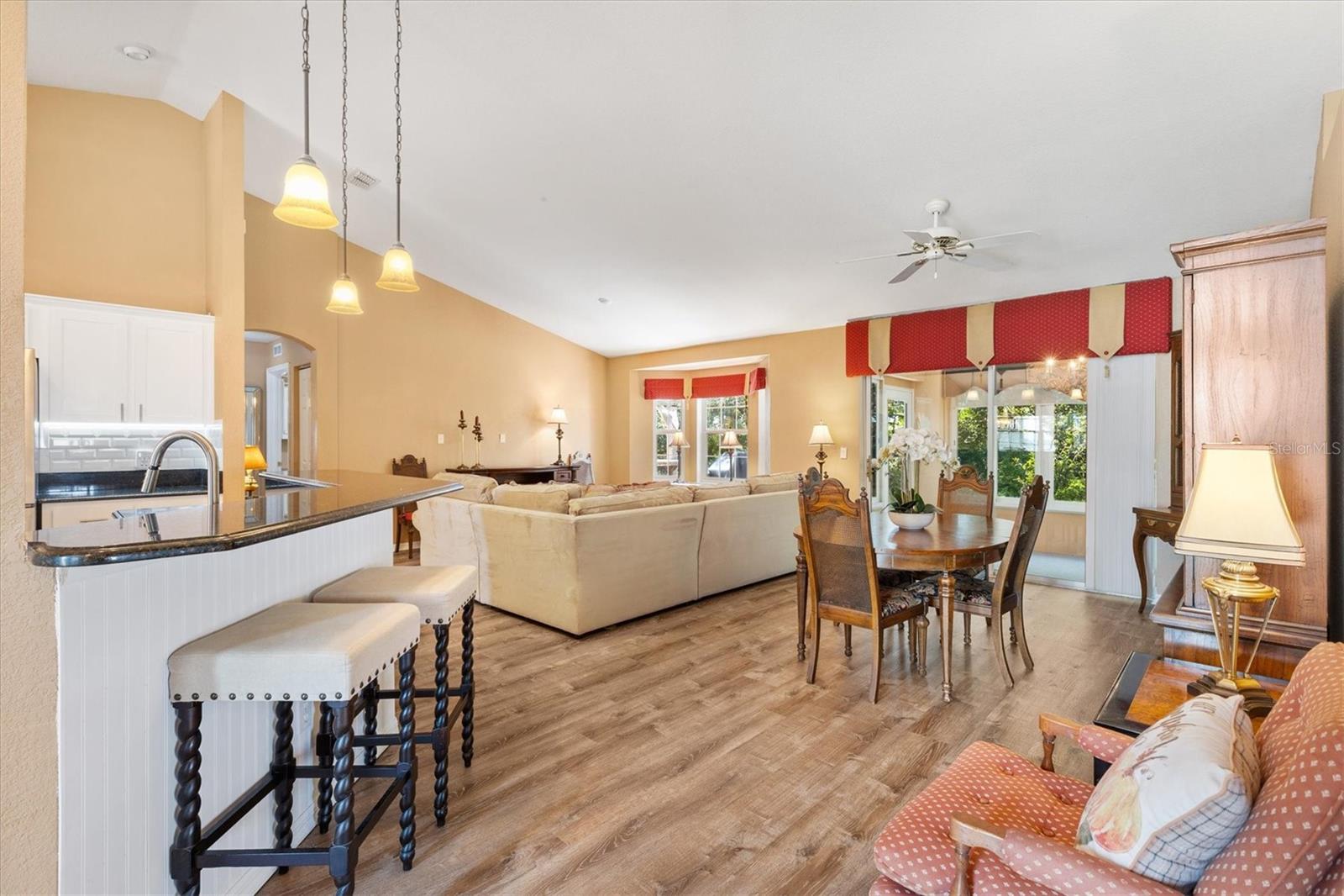 Vendedor motivado! TELHADO instalado em 2015, sistema HVAC 2017, esquentador 2019, INTERIOR pintado em novembro de 2025, que não refletem nas fotos! Bem-vindo à sua casa para sempre no belo condomínio fechado de golfe com mais de 55 anos de STONECREST, com todas as comodidades, adjacente a THE VILLAGES, FLORIDA! A casa de CONCRETO/BLOCO/STUCCO com 3 quartos e 2 banheiros oferece privacidade, espaço e uma atmosfera convidativa que faz com que você se sinta em casa no momento em que você passa pela porta. Os tetos abobadados criam uma sensação arejada e aberta nas principais áreas de estar, que apresentam piso LAMINADO em todas as áreas de cozinha, sala de estar e jantar. A cozinha é uma delícia para o chef, completa com bancadas de GRANITO, eletrodomésticos de aço inoxidável, iluminação suspensa sobre a barra de café da manhã e armários personalizados com prateleiras removíveis convenientes. A planta dividida cuidadosamente projetada garante conforto e privacidade, com uma espaçosa suíte Primary que possui armários duplos, um box amplo atualizado, pias duplas e uma penteadeira. Portas de vidro deslizantes fornecem acesso direto à LANAI FECHADA, oferecendo um retiro tranquilo onde você pode relaxar e descontrair. Um dos quartos adicionais está atualmente configurado como escritório. Saia para um grande pátio de azulejos com uma PERGOLA, perfeito para entreter ou desfrutar do seu café da manhã no ambiente tranquilo do seu quintal. As características adicionais incluem azulejos em um banheiro, carpete em dois quartos e carpete interno/externo durável na varanda. Com TELHADO instalado em 2015, sistema HVAC 2017, esquentador 2019, esta casa tem preço de venda. Stonecrest oferece uma variedade de comodidades, desde golfe e piscinas até clubes e eventos comunitários, fazendo com que cada dia pareça férias. Não perca a chance de experimentar tudo. Agende sua exibição privada hoje e torne esta casa excepcional sua.