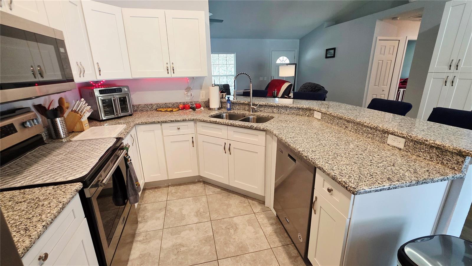 Bem -vindo ao seu Summerfield Sanctuary minutos das aldeias. Esta linda casa foi construída em 2020 e, com muitas atualizações do proprietário, é uma verdadeira jóia, oferecendo uma mistura perfeita de conforto e estilo. Entre e descubra um espaço meticulosamente cuidado que foi cuidadosamente atualizado para a vida moderna. O coração da casa é a cozinha deslumbrante, onde bancadas elegantes de granito e hardware elegante e suave em todos os armários e gavetas criam um espaço funcional. Você também encontrará armazenamento extra de gabinete e um café embutido, tornando-o um sonho para cozinhar e divertir. Mas as atualizações não param por aí. Esta casa foi projetada para a vida sem interior sem interior. Desfrute de relaxamento sem insetos na varanda da frente recém-rastreada e em Lanai. O rastreado em Lanai possui uma porta deslizante de 4 seções que se abre para o quintal e a piscina ((sofá e mesa de fogueira, além de tapetes nas costas incluídas.) Incluído. O destaque do quintal é a impressionante piscina acima do solo, de 18 pés, de 52 polegadas de profundidade, perfeita para se refrescar nos dias quentes da Flórida. Além disso, um galpão de armazenamento de 8,5 'x 8,5' oferece muito espaço para todas as suas ferramentas e brinquedos.