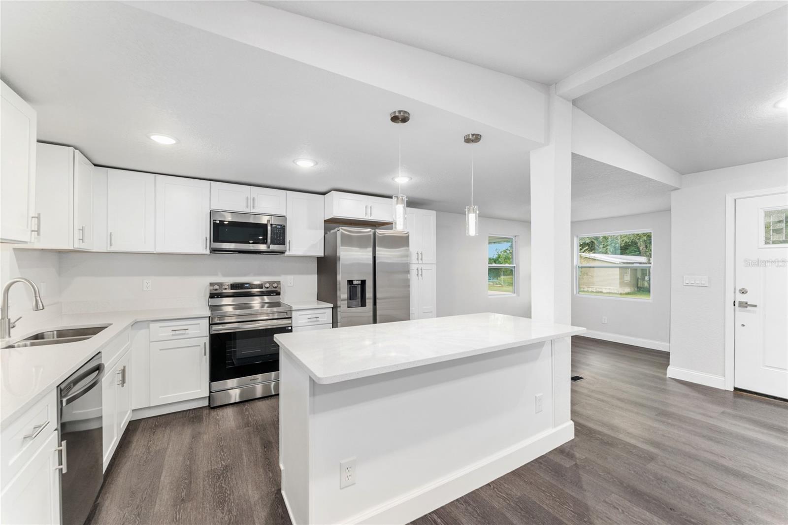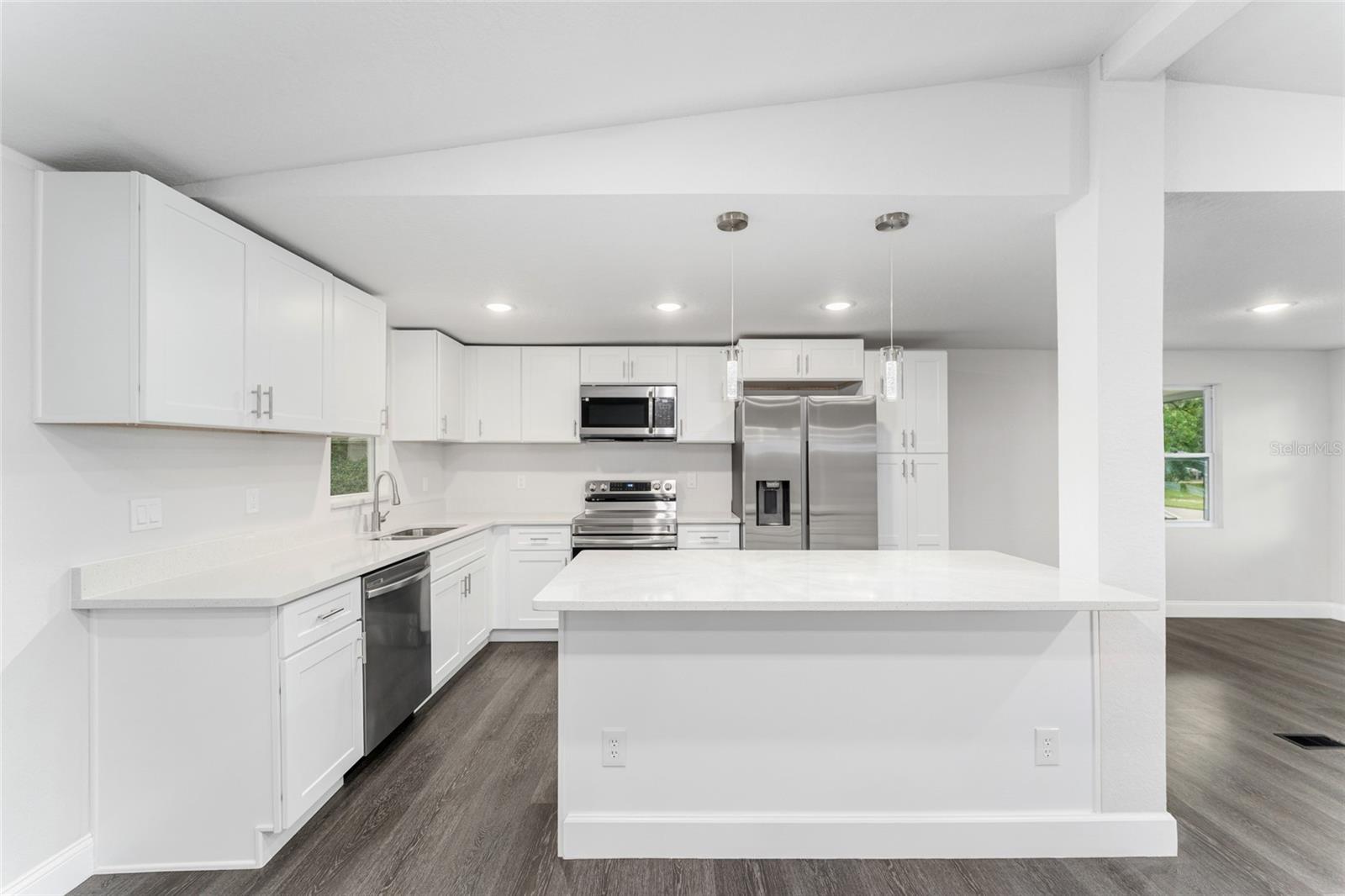 Totalmente reformado e pronto para morar! Esta casa móvel dupla lindamente atualizada oferece mais de 1.300 pés quadrados de espaço confortável com acabamentos de alta qualidade e detalhes atenciosos por toda parte. As atualizações recentes incluem um telhado de metal mais recente e sistema HVAC, um acolhedor deck na varanda frontal e um espaçoso pátio traseiro coberto, perfeito para relaxar ou se divertir. Desfrute de paz e privacidade no quintal cercado, que possui uma unidade de armazenamento embutida de 395 pés quadrados - totalmente alimentada por eletricidade e água, oferecendo infinitas possibilidades para uma oficina, estúdio ou espaço de hobby. Com uma servidão de propriedade do governo atrás da propriedade, você apreciará não ter vizinhos imediatos nos fundos. No interior, esta casa impressiona com iluminação embutida, luxuoso piso de pranchas de vinil e uma planta baixa de conceito aberto e brilhante. A cozinha da ilha é um empecilho, com bancadas de quartzo, eletrodomésticos de aço inoxidável e amplo armário e balcão para o chef da casa. A suíte principal oferece um verdadeiro retiro com um enorme box amplo, pias duplas e um armário grande para muito espaço de armazenamento. Os destaques adicionais incluem uma garagem extragrande e uma localização privilegiada, convenientemente situada entre Ocala e The Villages, perto de lojas, restaurantes e instalações médicas. Este preenche todos os requisitos - estilo moderno, funcionalidade e conforto - tudo em uma localização central fantástica!