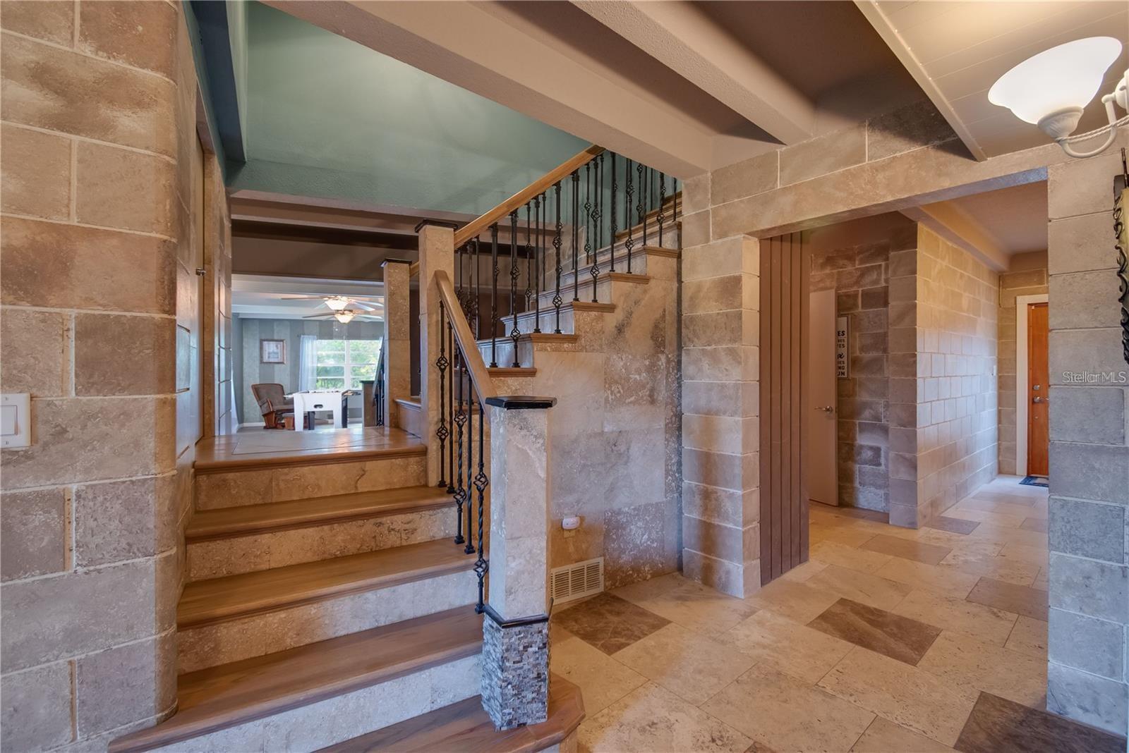 Lake Weir Estate com mais de 150 pés de fachada de água diretamente em frente à Reserva Natural da Ilha Carney! Esta casa vem totalmente mobiliada com móveis e televisões escolhidos a dedo. Os detalhes do interior incluem tetos de catedral em toda a área de estar e quarto principal, sistema de amaciador de água inteira, 3 incrustações de bússola e 2 lareiras a lenha. O segundo andar inclui as principais áreas de estar e 4 quartos, incluindo a suíte primária. A cozinha possui uma linha de gás profissional, utensílios de aço inoxidável, amplo espaço para armários e despensa com embutidos personalizados e uma janela de sacada com vista para o lago. A grande sala de estar e a cozinha possuem tetos altos com vigas expostas e grandes janelas para vistas panorâmicas do lago e da natureza e da vida selvagem. Fora da área de estar está o escritório, que tem portas francesas na varanda da frente que envolve a casa de ambos os lados. A espaçosa suíte primária apresenta uma parede de janelas com vistas de água de tirar o fôlego e portas de vidro deslizantes para uma varanda com vista para o lago. Ele também oferece um closet personalizado, área de estar, lareira a lenha e banheiro privativo com banheira de jacuzzi. O piso térreo possui um quarto de grandes dimensões/sala de bônus, um banheiro completo e uma sala de teatro isolada com cinco reclináveis de estádio elevados. As características externas incluem uma grande varanda de tela com uma cozinha ao ar livre, um galpão destacado com energia e painéis solares. As vistas e a privacidade do quintal são protegidas pela reserva natural vizinha na água. Este retiro à beira-mar fica no final do beco sem saída e a garagem dupla leva a duas garagens separadas, que contém 3 carros e tem espaço para um carrinho de golfe ou estacionamento de motocicleta. Tanto as unidades HVAC quanto o aquecedor de água foram substituídos nos últimos dois anos.