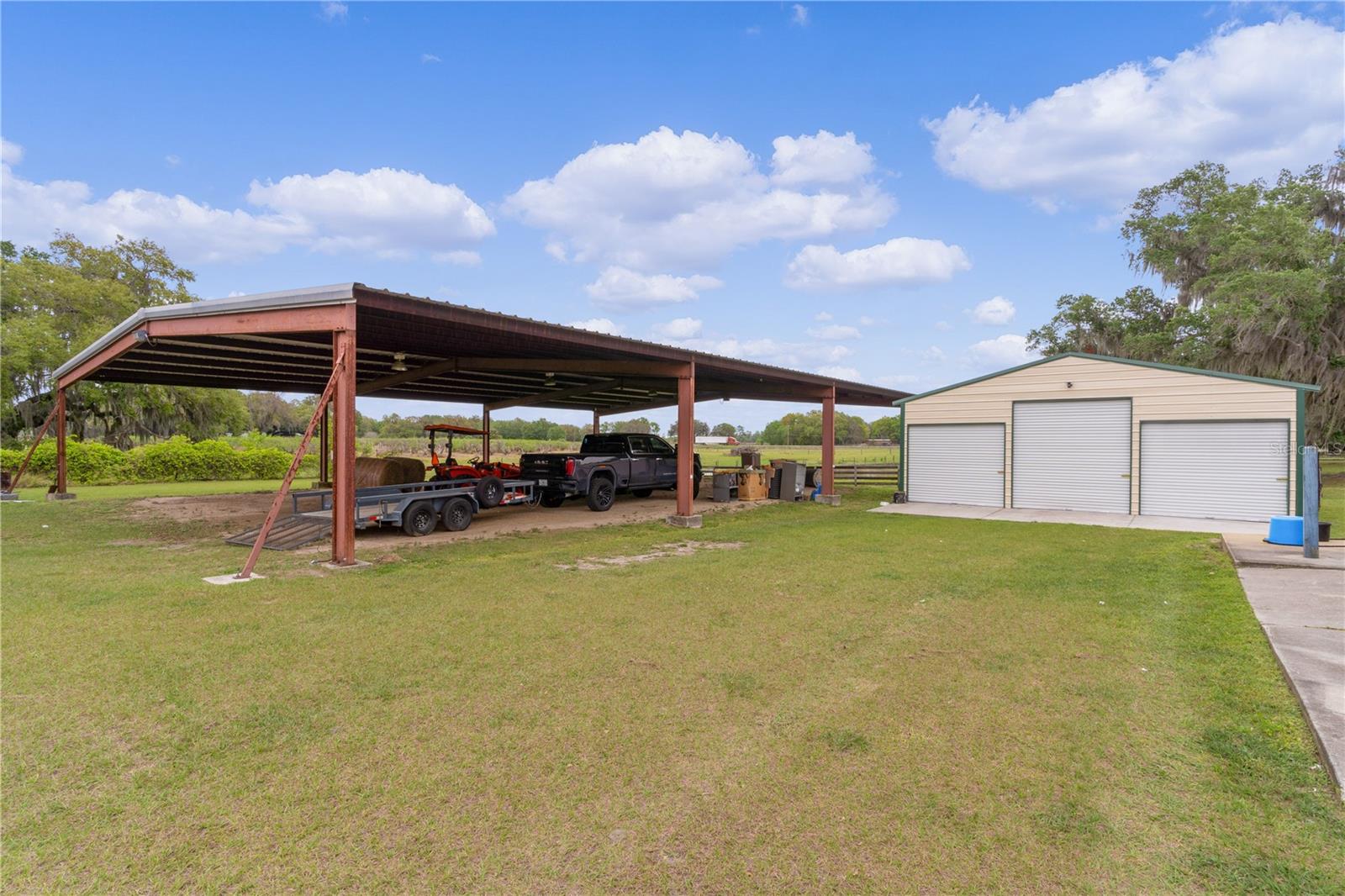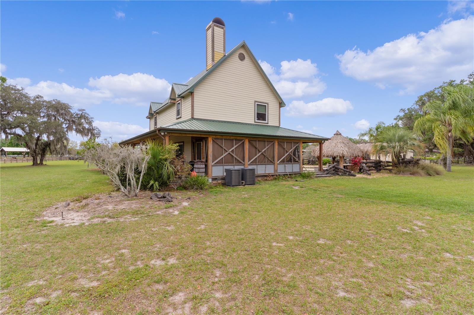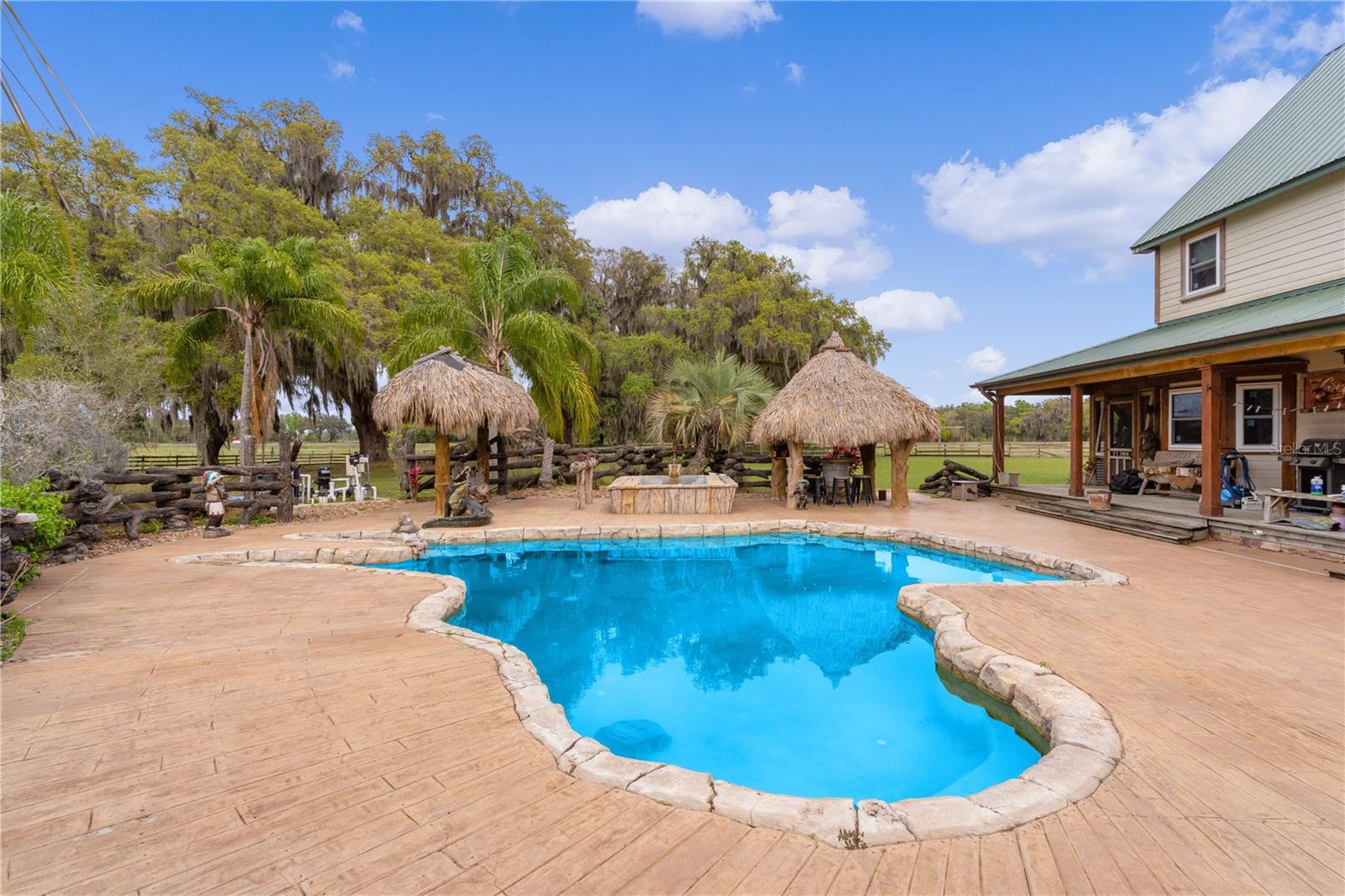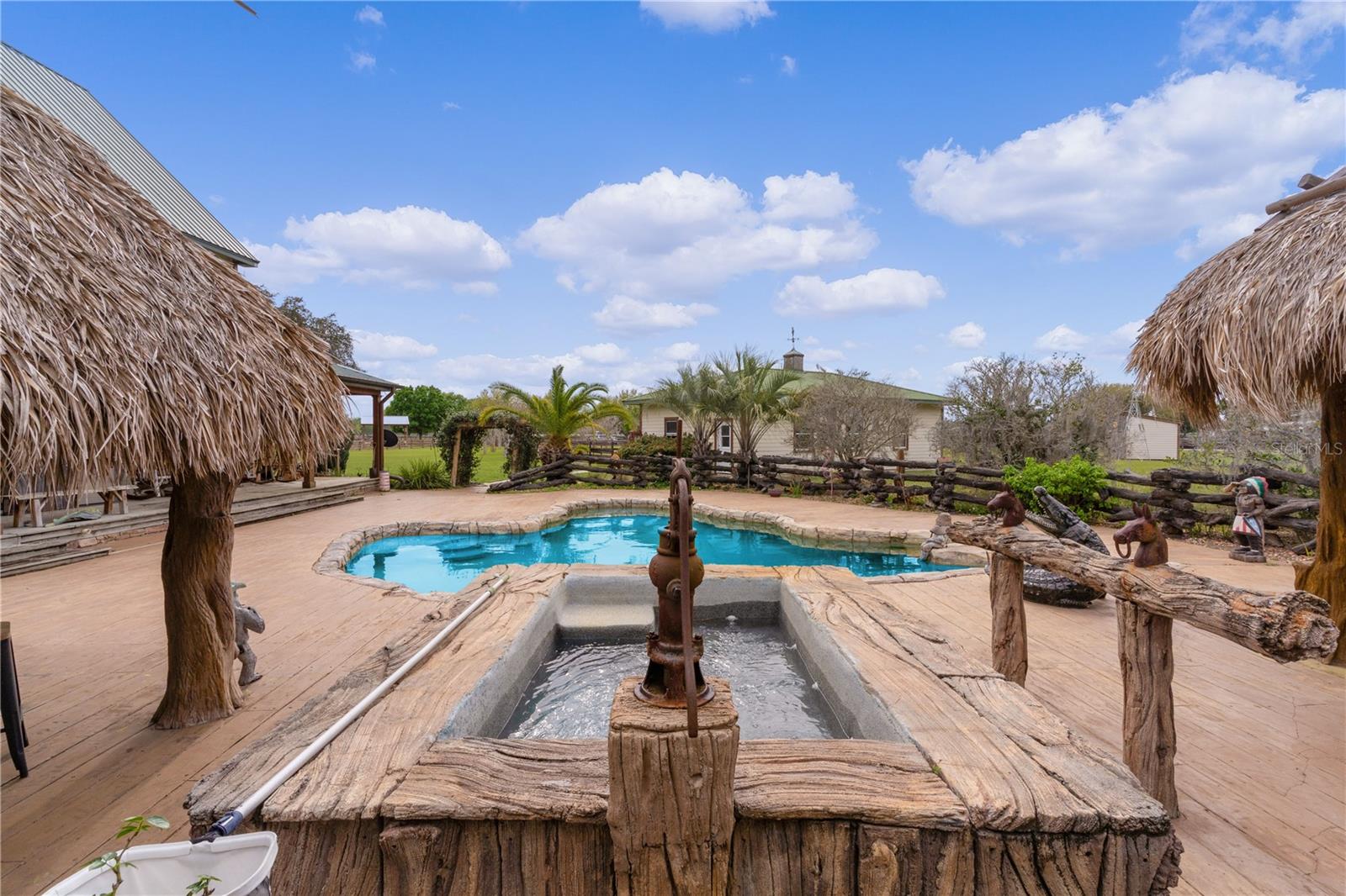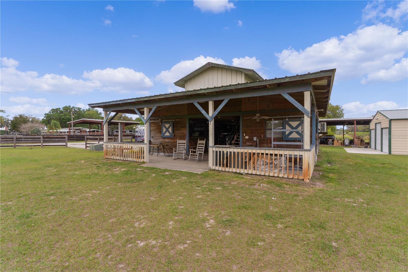 Bem-vindo a esta extraordinária propriedade personalizada em estilo rancho, onde as comodidades modernas combinam perfeitamente com o charme rústico, situada em uma extensa propriedade de mais de 23 acres na pitoresca paisagem de Sumterville, FL. Ao entrar pelo portão de metal elétrico e movido a energia solar, você é saudado pelo encanto dos carvalhos de concreto personalizados que entram na entrada pavimentada, iluminados por charmosos postes de luz. O ponto focal da propriedade é a deslumbrante casa de fazenda personalizada de dois andares, com 2 quartos e 2,5 banheiros. O exterior é adornado com um alpendre envolvente, completo com iluminação embutida e calhas de cobre, proporcionando um local perfeito para desfrutar do ambiente sereno. Dentro desta casa de fazenda, a cozinha campestre apresenta armários de madeira personalizados, novos eletrodomésticos LG e portas de vidro deslizantes que levam a uma área de varanda com um charmoso tema de galinheiro. A sala possui uma aconchegante parede de pedra e uma lareira a lenha com cornija de concreto, perfeita para as noites frias, além de um armário personalizado que abriga uma TV de tela plana que ficará em casa. Tetos abobadados de cedro macho e fêmea contribuem para o ambiente rústico, enquanto o loft de entretenimento oferece um retiro espaçoso com uma grande TV de tela plana que também ficará em casa. O quarto e o banheiro do primeiro andar são acessíveis para deficientes físicos, com piso de madeira real e azulejos de cerâmica. O lavabo fica fora da cozinha e possui uma pia de pedestal cercada por uma parede de madeira de navio. No andar de cima, o quarto principal possui piso de madeira real, armário com porta de celeiro e teto macho e fêmea de cedro. O banheiro principal possui piso de ardósia, chuveiro para duas pessoas e encanamento para uma banheira com pés. Mozy do lado de fora para uma passarela de concreto que leva a uma bela piscina personalizada e spa cercado por um deck de concreto que lembra pranchas de madeira reais. Uma cerca de concreto, projetada para se parecer com uma cerca de madeira antiquada, que proporciona privacidade, enquanto duas cabanas tiki oferecem sombra e cobertura para entretenimento ao ar livre. A propriedade também inclui comodidades adicionais, como uma garagem individual para 4 carros com 110 A, mas pode ser facilmente convertida para 220 A, garagem para 3 carros, construção metálica de 30' x 30' com piso texturizado, uma casa de bombas para o poço de 80 pés que foi recentemente refeito com caixa nova e bomba 2023, baias separadas para cavalos com acesso à água, um celeiro 36' x 36' com um apartamento de 1 cama e 1 banheiro que tem cozinha e área de estar, micro-ondas, fogão e geladeira, um Red 60x50 Arena de ferro com telhado de metal, garagem para trailers construída em 2022 com base de concreto, postes de cipreste e telhado de metal e galpão de armazenamento. Um silo e uma torre de água contribuem para o encantador ambiente rural e combinam com a propriedade. Com sua mistura de conforto moderno e apelo rústico, esta propriedade oferece uma oportunidade única de desfrutar do estilo de vida típico de um rancho da Flórida em um ambiente luxuoso. Certos itens não são compatíveis com a propriedade. Por favor, peça essa lista ao seu agente. Novo telhado 2023, novo A/C 2023, novos eletrodomésticos LG 2023, novo piso 2023, novas persianas e novos equipamentos de piscina 2023. O aquecedor de piscina funciona com tanque subterrâneo de gás natural de 250 galões. Todas as medidas de dependências, garagem e celeiro são estimadas. Gado Longhorn e uma mula estão na propriedade. Por favor, não tente chegar perto da cerca ou acariciar esses animais da fazenda. Agende seu passeio hoje mesmo!