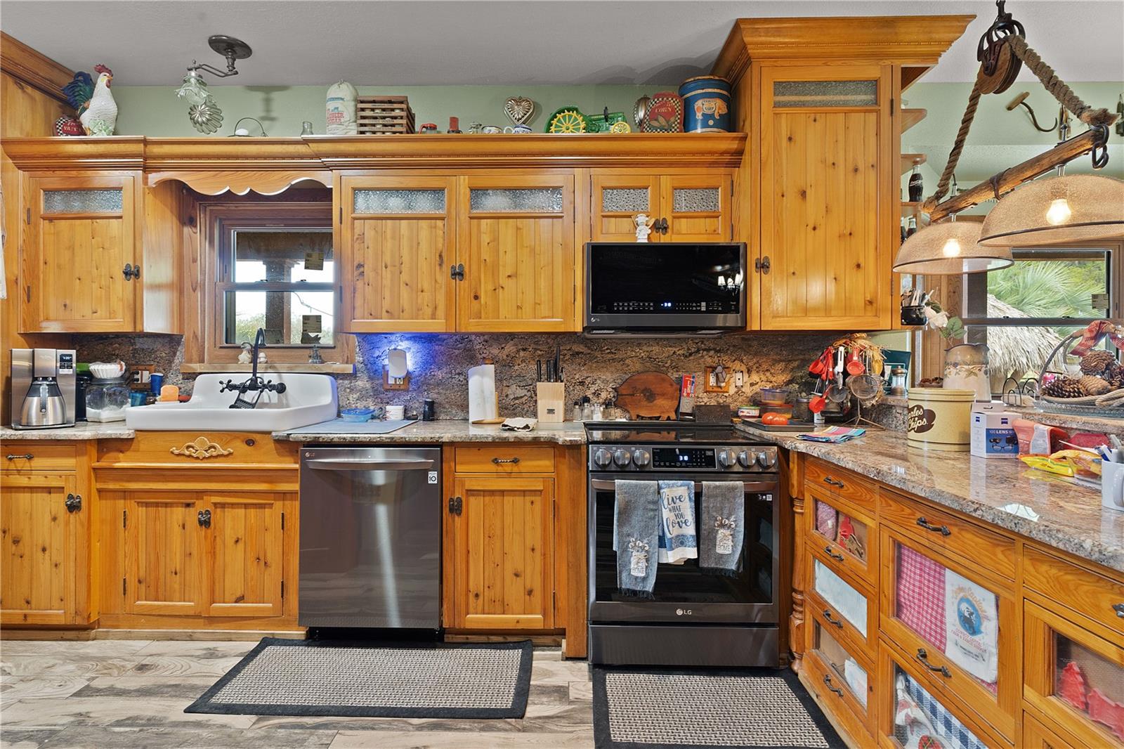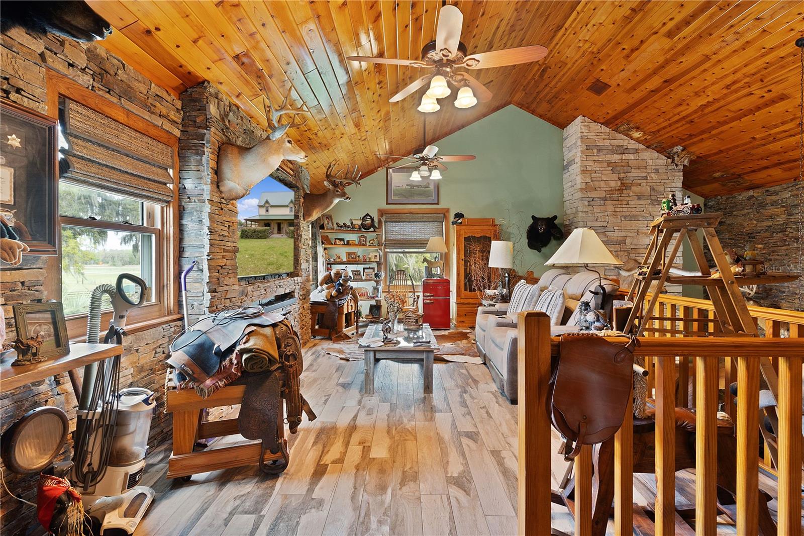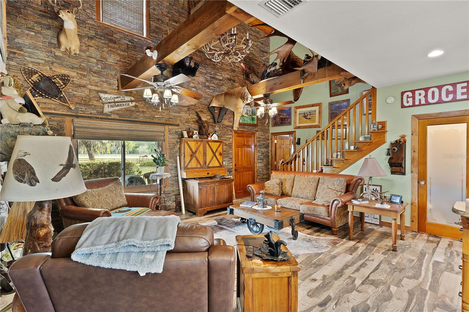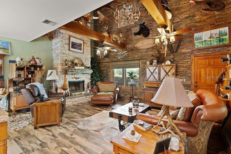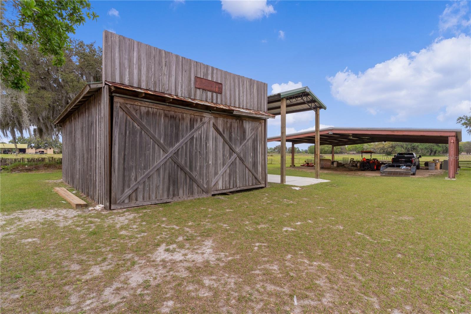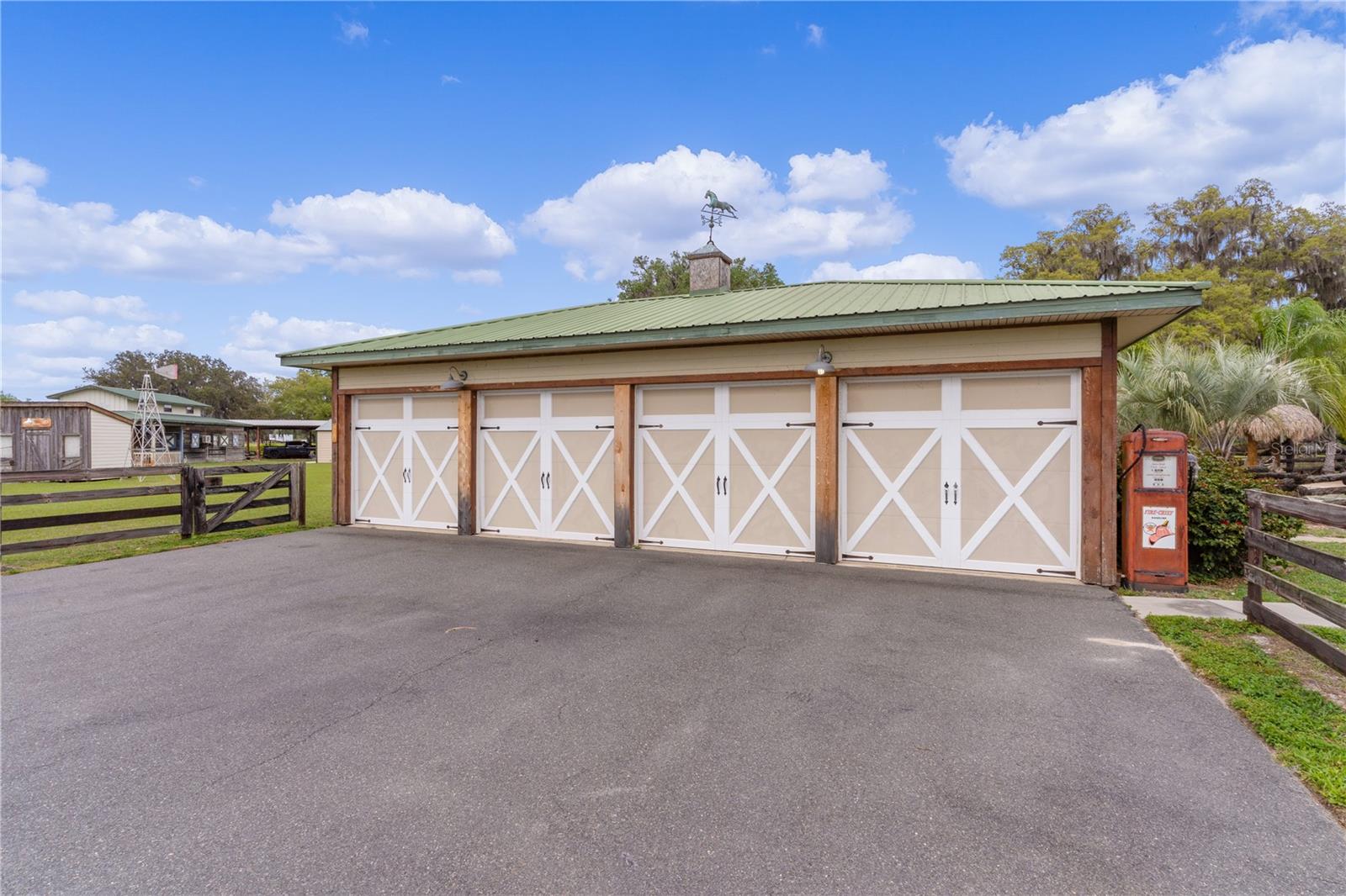Bem-vindo a esta extraordinária propriedade personalizada em estilo rancho, onde as comodidades modernas combinam perfeitamente com o charme rústico, situada em uma extensa propriedade de mais de 23 acres na pitoresca paisagem de Sumterville, FL. Ao entrar pelo portão de metal elétrico e movido a energia solar, você é saudado pelo encanto dos carvalhos de concreto personalizados que entram na entrada pavimentada, iluminados por charmosos postes de luz. O ponto focal da propriedade é a deslumbrante casa de fazenda personalizada de dois andares, com 2 quartos e 2,5 banheiros. O exterior é adornado com um alpendre envolvente, completo com iluminação embutida e calhas de cobre, proporcionando um local perfeito para desfrutar do ambiente sereno. Dentro desta casa de fazenda, a cozinha campestre apresenta armários de madeira personalizados, novos eletrodomésticos LG e portas de vidro deslizantes que levam a uma área de varanda com um charmoso tema de galinheiro. A sala possui uma aconchegante parede de pedra e uma lareira a lenha com cornija de concreto, perfeita para as noites frias, além de um armário personalizado que abriga uma TV de tela plana que ficará em casa. Tetos abobadados de cedro macho e fêmea contribuem para o ambiente rústico, enquanto o loft de entretenimento oferece um retiro espaçoso com uma grande TV de tela plana que também ficará em casa. O quarto e o banheiro do primeiro andar são acessíveis para deficientes físicos, com piso de madeira real e azulejos de cerâmica. O lavabo fica fora da cozinha e possui uma pia de pedestal cercada por uma parede de madeira de navio. No andar de cima, o quarto principal possui piso de madeira real, armário com porta de celeiro e teto macho e fêmea de cedro. O banheiro principal possui piso de ardósia, chuveiro para duas pessoas e encanamento para uma banheira com pés. Mozy do lado de fora para uma passarela de concreto que leva a uma bela piscina personalizada e spa cercado por um deck de concreto que lembra pranchas de madeira reais. Uma cerca de concreto, projetada para se parecer com uma cerca de madeira antiquada, que proporciona privacidade, enquanto duas cabanas tiki oferecem sombra e cobertura para entretenimento ao ar livre. A propriedade também inclui comodidades adicionais, como uma garagem individual para 4 carros com 110 A, mas pode ser facilmente convertida para 220 A, garagem para 3 carros, construção metálica de 30' x 30' com piso texturizado, uma casa de bombas para o poço de 80 pés que foi recentemente refeito com caixa nova e bomba 2023, baias separadas para cavalos com acesso à água, um celeiro 36' x 36' com um apartamento de 1 cama e 1 banheiro que tem cozinha e área de estar, micro-ondas, fogão e geladeira, um Red 60x50 Arena de ferro com telhado de metal, garagem para trailers construída em 2022 com base de concreto, postes de cipreste e telhado de metal e galpão de armazenamento. Um silo e uma torre de água contribuem para o encantador ambiente rural e combinam com a propriedade. Com sua mistura de conforto moderno e apelo rústico, esta propriedade oferece uma oportunidade única de desfrutar do estilo de vida típico de um rancho da Flórida em um ambiente luxuoso. Certos itens não são compatíveis com a propriedade. Por favor, peça essa lista ao seu agente. Novo telhado 2023, novo A/C 2023, novos eletrodomésticos LG 2023, novo piso 2023, novas persianas e novos equipamentos de piscina 2023. O aquecedor de piscina funciona com tanque subterrâneo de gás natural de 250 galões. Todas as medidas de dependências, garagem e celeiro são estimadas. Gado Longhorn e uma mula estão na propriedade. Por favor, não tente chegar perto da cerca ou acariciar esses animais da fazenda. Agende seu passeio hoje mesmo!