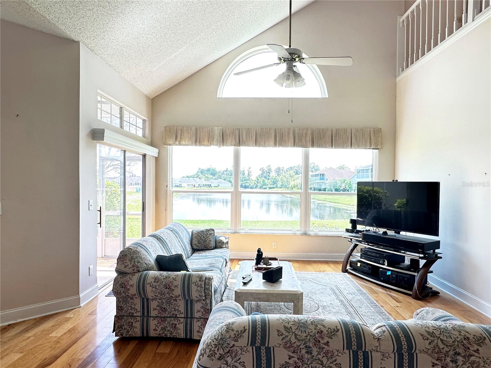 Estilo de resort Living no seu melhor neste condomínio de modelo leve e brilhante de Monticello com quase 2200 pés quadrados e vistas incríveis de água e campo de golfe de quase todos os quartos da casa! O melhor de tudo, nenhum vizinho atrás de você! Esta bela unidade de 3 quartos e 2,5 banheiros possui uma grande sala de grandes dimensões, com uma sala de estar e sala de jantar estendida, que abre para a cozinha grande, tetos abobadados, pisos de madeira de engenharia e portas de vidro deslizantes que levam o quintal cênico. A cozinha de comer foi completamente reformada em 2020 com armários brancos personalizados, bancadas de granito, utensílios de aço inoxidável e pisos de travertino. Ele também possui portas de vidro deslizantes que fornecem acesso ao Lanai. O espaçoso quarto principal tem janela de sacada, pisos de madeira projetada, armários duplos e banheiro suíte. O encantador quarto de hóspedes tem piso de vinil de prancha mais recente e armário grande. No andar de cima está o "retiro" com 1/2 banho de banho. O retiro também apresenta um lanai privado com vistas deslumbrantes. Kings Point é uma comunidade fechada de mais de 55 anos, com 2 clubes, 5 piscinas, fitness center de ponta, spa, salão, bar de esportes, pickleball, tênis e mais de 200 clubes e atividades e muito mais.