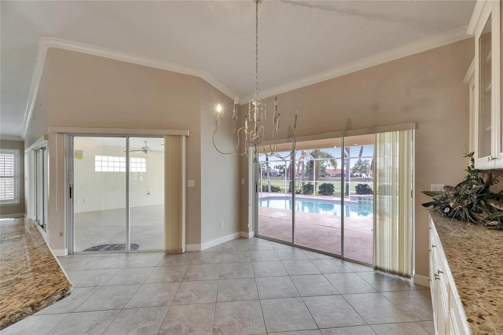 O vendedor diz fazer uma oferta! Bem -vindo para casa e aproveite o pôr do sol diário de tirar o fôlego nesta piscina do centro da cidade com o campo de golfe e vistas para a água. A planta aberta leva à espaçosa área coberta/rastreada e área da piscina com vista para o campo de golfe e a lagoa. Com paisagismo extenso, você terá um oásis com vistas incríveis ao pôr do sol. O layout de três quartos, dois banheiros desta casa, permite a privacidade do proprietário e do convidado. Additional features include the 40 X 15 pool, crown molding throughout, diagonally laid tile in the wet areas/dining room/living room, remodeled kitchen with cream-colored glazed cabinets and granite countertops, newer stainless steel appliances, closet pantry, additional cabinets in breakfast nook, a kitchen island for food prep, vaulted ceilings, plantation shutters, an Owner's suite with two large walk-in closets and ensuite bath with a Vanidade dupla e chuveiro grande com janela de bloco de vidro. O segundo banheiro também foi atualizado com um chuveiro sem moldura. Os bolsos triplos deslizantes abrem a casa e o fazem viver maior que 1892 pés quadrados. O Sun City Center oferece instalações, piscinas e clubes incríveis para você aproveitar e com a localização entre Tampa e Sarasota, entretenimento, restaurantes finos e abundância de compras por perto. O vendedor fornecerá uma garantia de um ano em casa da garantia da América no fechamento.