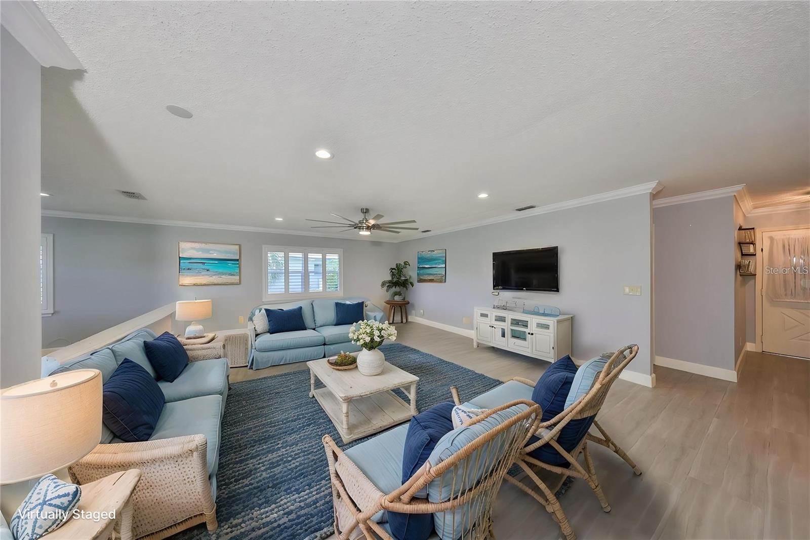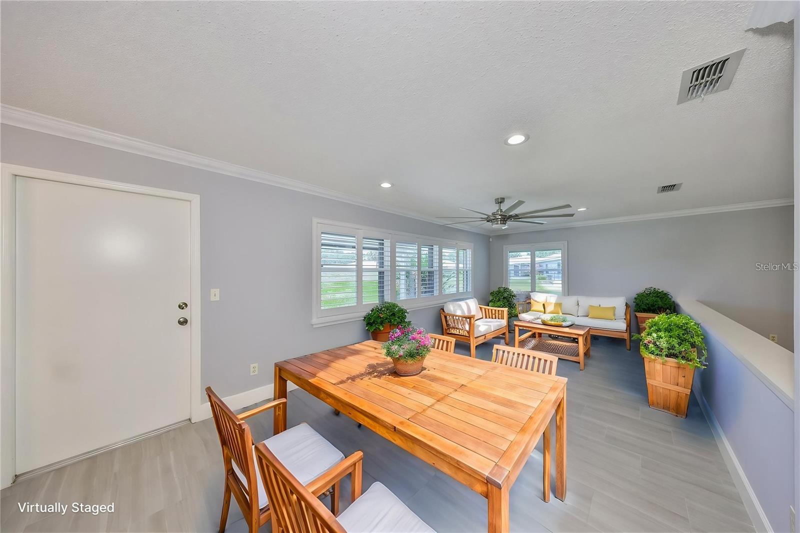 Condomínio impressionante único com vistas pitorescas da lagoa! Esta casa lindamente atualizada apresenta pisos de ladrilhos de porcelana elegantes por toda parte, combinados com persianas elegantes de plantações e um pacote de aparelhos de aço inoxidável KitchenAid de primeira linha, incluindo alcance, geladeira e máquina de lavar louça. A cozinha moderna possui bancadas elegantes de pedra, armários atualizados com gavetas e portas de perto e acabamentos contemporâneos que certamente impressionarão, além de um sistema de osmose reversa para água potável pura. A espaçosa suíte de quarto primário oferece soluções de armazenamento personalizadas, enquanto os dois banheiros apresentam chuveiros luxuosos e totalmente renovados. A área de estar principal é aprimorada por ventiladores de teto de aço inoxidável de grandes dimensões, moldagem por coroa e janelas de dupla panela com eficiência energética. Destaques adicionais incluem iluminação LED por toda parte, persianas elétricas de furacões para adicionar tranqüilidade e uma utilidade/sala de armazenamento sob HVAC na garagem perfeita para hobbies ou necessidades de armazenamento extras. Localizado em Kings Point, a comunidade de aposentadoria nº 1 da América (como reconhecida pela Realtor.com e Travel + Leisure Magazine em 2024), esta casa oferece um estilo de vida no estilo resort como nenhum outro. Desfrute de comodidades de classe mundial, incluindo piscinas, spas, entretenimento ao vivo no Teatro Veterans, Pickleball, Golf, Lawn Bowling e muito mais. Toda a comunidade é totalmente acessível ao carrinho de golfe, facilitando a exploração e a conexão com amigos e vizinhos. Experimente luxo, conforto e um estilo de vida imbatível, seja bem -vindo à sua nova casa.