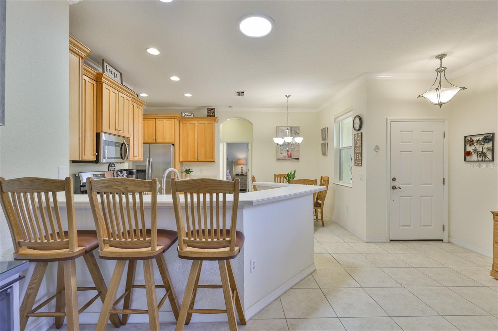 VENDEDOR MOTIVADO! Bem-vindo à aposentadoria ativa e despreocupada, vivendo na cobiçada comunidade de Kings Point! Esta casa Strathaven imaculada e impecavelmente mantida tem 2 quartos, 2 banheiros e um quarto extra flexível com teto de 12 pés que pode ser um terceiro quarto, escritório, escritório ou até mesmo uma academia doméstica. Esta casa tem muitas melhorias e ainda por cima, os móveis acompanham a casa, mas podem ser retirados pelo vendedor caso o comprador não queira. TUDO QUE VOCÊ PRECISA É SUA MALA!! Manutenção sem preocupações com GARANTIA residencial que expira em MARÇO DE 2030!! Vamos falar sobre as atualizações; sancas em toda a casa, película de segurança SunTek em todas as janelas, persianas, Hunter Douglas Sheers, aspiração central e acessórios Vacuflo, armários de parede superiores de madeira maciça de 42' na cozinha e lavanderia, armários de cozinha com sancas e painel de parede da geladeira, NOVOS eletrodomésticos de cozinha em aço inoxidável, a cozinha é o sonho de um chef, espere até ver o fogão a gás! Ambos os banheiros possuem vasos sanitários na altura das cadeiras e tubos solares para iluminação extra, armários inferiores na cozinha e os banheiros possuem gavetas extraíveis personalizadas. A varanda foi construída como parte da casa com um bloco de concreto, e é por isso que este modelo é maior, com 1.410 pés quadrados sob ar e calor. Há também uma varanda com tela para que você possa sentar do lado de fora e apreciar a bela natureza que o rodeia. Esta casa tem um paisagismo exuberante e SEM VIZINHOS TRASEIROS! O aparelho de ar condicionado é de 2020, o esquentador a gás de 2021, a lavadora e secadora de 2018, o telhado substituído em 2021 e espere até ver a garagem, tem armários de armazenamento Premier embutidos, racks de armazenamento superiores, bancada de parede dobrável personalizada, piso de garagem revestido com epóxi, escada de alumínio para o sótão, tela de porta de garagem nova de 2024, eu poderia continuar indefinidamente. Venha conhecer pessoalmente esta espetacular casa. Kings Point possui 2 clubhouses, restaurante/bar, piscinas, academias, spa, salão de beleza, quadras de tênis, clube de cerâmica, mah-jongg, pickle ball e muito mais! Kings Point é um condomínio fechado com mais de 55 carrinhos de golfe. As áreas circundantes são facilmente acessíveis por rodovias. Visite as praias premiadas, lojas, restaurantes e eventos esportivos da Flórida. Disney/Orlando fica a aprox. 90 minutos de distância.