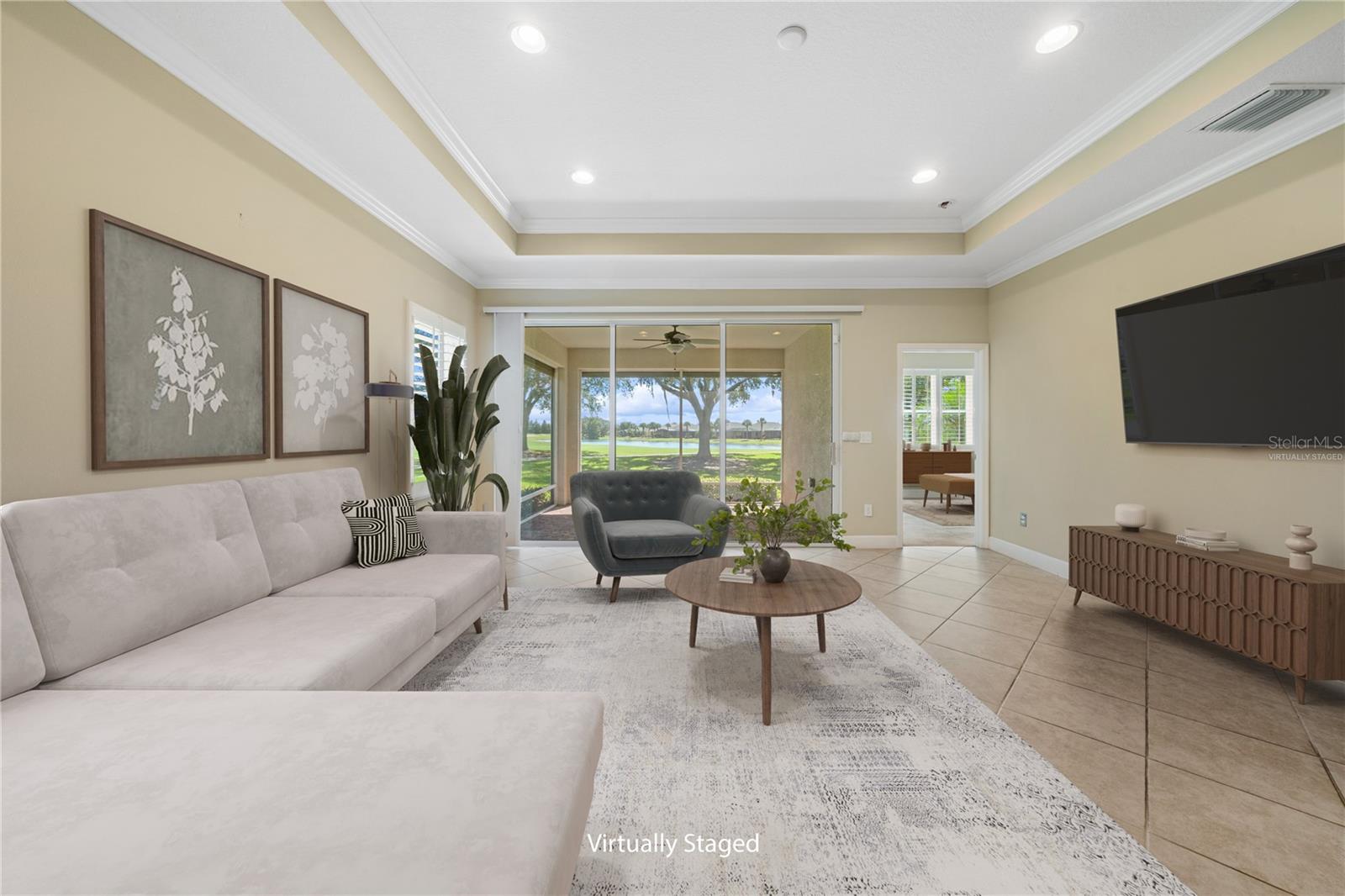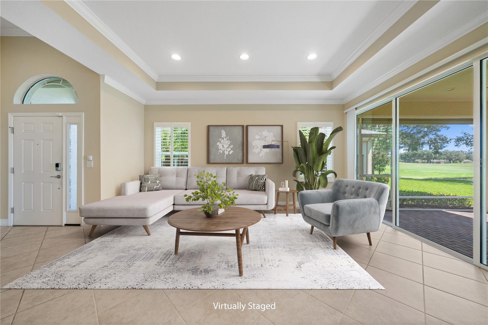 Descubra a vida em estilo resort de luxo no altamente desejável condomínio fechado de Verona, no Sun City Center. Esta popular vila em Buttonwood, construída em 2016, combina acabamentos elegantes e atualizações cuidadosas em 1.568 pés quadrados de área residencial de um nível em um terreno com belo paisagismo. Entre para encontrar uma planta baixa e aberta com tetos de bandeja, sancas e prateleiras embutidas, complementadas por venezianas por toda parte. A cozinha gourmet encanta com bancadas de granito, ilha central com balcão para café da manhã, amplo armário e iluminação aprimorada - perfeita para refeições casuais e divertidas. Organize reuniões sem esforço com um layout de quartos divididos que oferece privacidade aos hóspedes. O interior espaçoso inclui ventiladores de teto, closets e uma lavanderia interna com lavadora e secadora grande. Relaxe na varanda traseira com vista para o sereno campo de golfe e para o mar - desfrute de tardes arejadas cercadas por um lago e majestosos carvalhos. A varanda também possui tremores eletrônicos de furacão que podem funcionar como um escudo solar para maior tranquilidade. Localizado a poucos minutos de Tampa Bay, Sarasota e St. Pete, este é o estilo de vida ideal para maiores de 55 anos de lazer, conveniência e comunidade. O HOA cobre uma variedade de coisas para os proprietários, como: cuidado do gramado, pintura externa, substituição de telhado e segurança de portão. Os residentes da comunidade de Verona têm acesso à piscina privada do bairro e são membros do Club Renaissance, com piscina em estilo resort, centro de fitness, spa, pista de caminhada coberta, restaurantes requintados. Eles também contam com um calendário de atividades sociais para a diversão dos moradores. Tudo isso em um ambiente elegante e pronto para morar - agende sua exibição privada hoje mesmo!