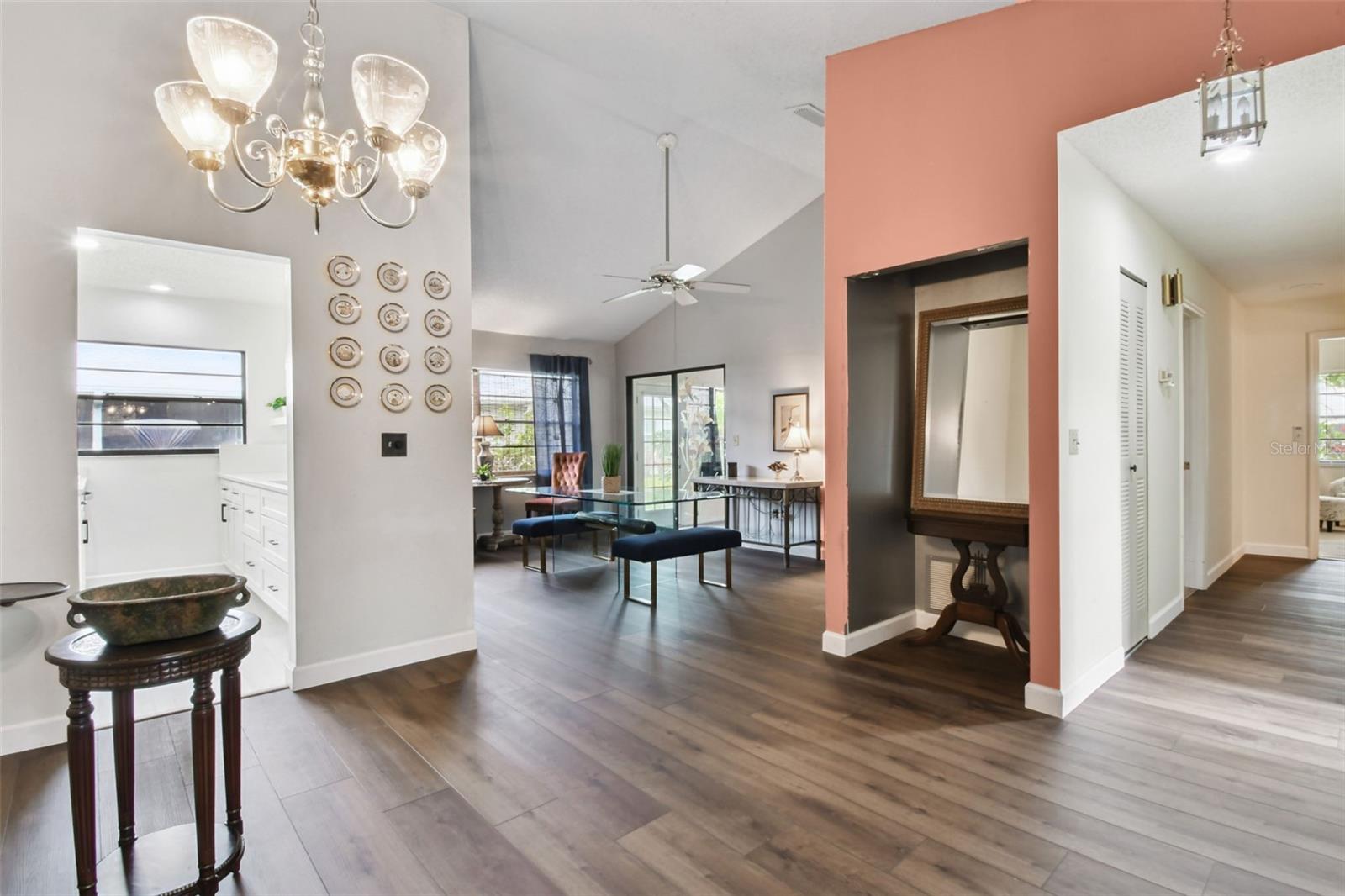 Bem-vindo a este lindamente atualizado de 2 quartos + escritório/3º quarto, 2 banheiros, com uma enorme sala da Flórida e mais de 1.500 pés quadrados de espaço de estar, além de uma garagem de 1 carro-tudo em um lote de canto privado, sem saída, no coração do Sun City Center! UAU! Uma rara oportunidade em Cypresview popular! Este popular modelo de Arbor impressiona com tetos abobadados, um layout aberto e piso de tábua de vinil de luxo em todas as áreas de estar e segundo quarto. A novíssima cozinha de 2025 é um showstopper-com bancadas de quartzo, armários de close macio, uma ilha de grandes dimensões com pia profunda e amplo armazenamento. A espaçosa suíte primária oferece um grande closet e banheiro privativo privado. As atualizações notáveis incluem: Novo telhado (2021) New HVAC (2021) New Water Heater (2018) Todos os grandes itens de ingressos são feitos para você! O amaciador de água incluiu recursos de bônus: a garagem inclui uma sala de serviços públicos com lavanderia e armazenamento-e pode ser convertido para caber em um carrinho de golfe, graças ao acesso de duas portas! Lá fora, aproveite a paz de espírito com a iluminação de segurança e a serenidade de viver em uma rua sem saída. Vida de baixa manutenção! O Cypressview inclui cuidados com o gramado e irrigação na baixa taxa de HOA. Apenas um passeio de carrinho de golfe de 4 minutos até o principal campus de recreação com piscinas internas e externas, um centro de fitness, mais de 200 clubes e inúmeras oportunidades sociais-da cerâmica à pickleball! Viva sua melhor vida na premiada comunidade do centro da cidade de 55 anos, onde os carrinhos de golfe são o principal modo de transporte para compras, restaurantes, escritórios médicos e muito mais. A uma curta distância de carro de Tampa, Sarasota, praias deslumbrantes e grandes atrações e Aeroporto Internacional de Tampa e Aeroporto de Sarasota. Este não é apenas um lar, mas um estilo de vida! Apresse -se rápido, pois esta casa não vai durar!