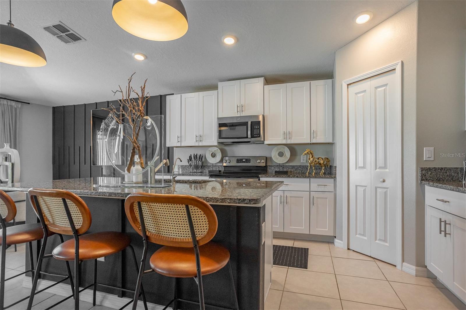 Bem-vindo a esta casa térrea lindamente mantida e pronta para morar, que oferece acabamentos modernos, design atencioso e apelo convidativo do meio-fio na Flórida. A partir do momento em que você chega, a casa causa uma forte primeira impressão com uma calçada pavimentada, paisagismo bem cuidado, venezianas decorativas e palmeiras que criam um exterior polido e acolhedor. Um hall de entrada acolhedor com iluminação de designer dá o tom quando você entra, levando a um espaço iluminado e de conceito aberto, projetado tanto para o conforto diário quanto para o entretenimento. As principais áreas de estar apresentam piso de cerâmica, tetos altos, iluminação embutida e luz natural abundante, criando um ambiente limpo e arejado em toda a casa. A área de jantar é realçada por uma parede marcante, adicionando interesse visual e um toque de design ao espaço. A cozinha é elegante e funcional, oferecendo armários brancos, bancadas de granito, eletrodomésticos de aço inoxidável, uma espaçosa ilha central com assentos de bar, iluminação pendente moderna e uma grande despensa - ideal para organizar reuniões ou refeições casuais. A suíte do proprietário oferece um retiro privado confortável, completo com espaço generoso e banheiro privativo com bancada de granito, box amplo e closet amplo convenientemente localizado dentro do banheiro. Os quartos secundários são bem dimensionados e versáteis, enquanto um espaço flexível adicional oferece a configuração perfeita para um escritório doméstico, quarto de hóspedes ou espaço de trabalho criativo. Saia para o quintal, onde uma cerca traseira proporciona privacidade e um amplo pátio pavimentado cria o cenário ideal para refeições ao ar livre, relaxamento ou entretenimento. Os pátios laterais abertos mantêm uma sensação de espaço, ao mesmo tempo que permitem flexibilidade para personalização futura. Os destaques adicionais incluem acabamentos modernos e coesos, uma área de lavanderia dedicada e um layout que maximiza a funcionalidade e o fluxo. Meticulosamente cuidada e verdadeiramente pronta para morar, esta casa oferece conforto moderno, design atencioso e vida fácil em um condomínio desejável.
