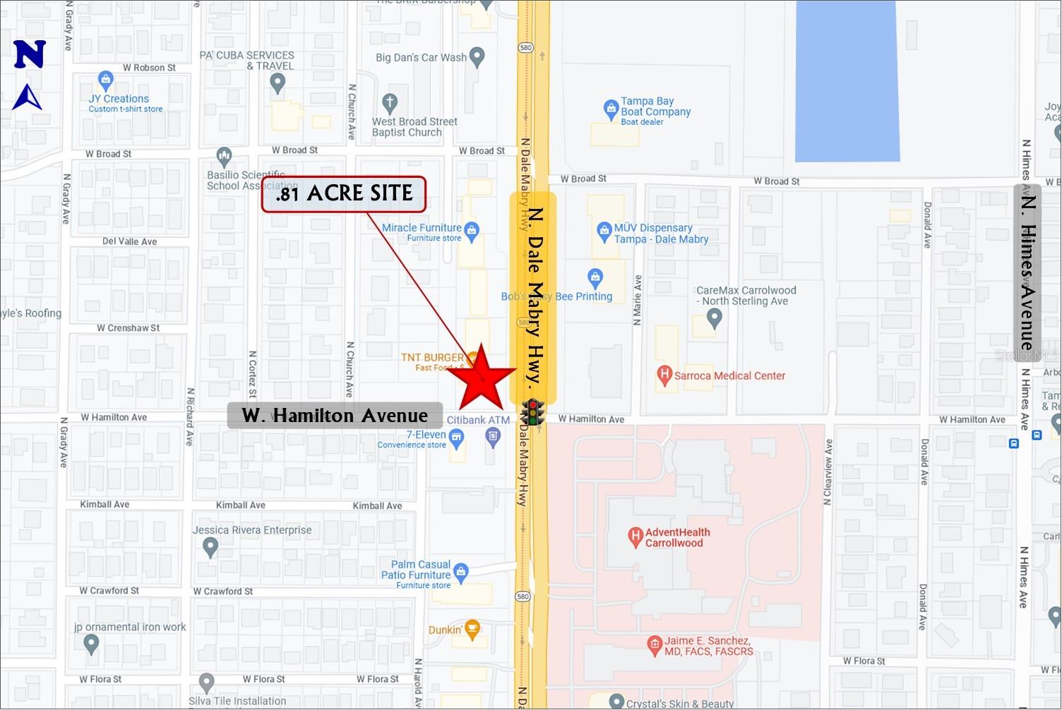 Localização Prime, Prime, Prime! :: 252 'Frontage diretamente em N. Dale Mabry Hwy :: Localizado no cruzamento sinalizado de N. Dale Mabry Hwy e W. Hamilton Avenue :: Excelente oportunidade de investimento! :: Contagem média de tráfego diário de mais de 64.000 veículos por dia :: mais alto e melhor uso: mantenha como geração de renda ou um novo desenvolvimento :: Site de 0,81 acres, oferecendo oportunidades para um novo negócio: o site oferece uma enorme oportunidade de desenvolvimento/ crescimento para o N. Dale Mabry Hwy. Corredor :: A área está explodindo com um novo crescimento comercial e residencial e é cercado por inúmeros novos desenvolvimentos :: Conveniente para rodovias e principais vias :: Minutos de AdventHealth- Carrollwood, Raymond James Stadium, Al Lopez Park, CVS Pharmacy, North Park Professional Center, George Steinbrenner Field, Hillsborough Community College, Dale Mabry Hwy, W. Hillsborough Avenue, Waters Avenue, Sligh Avenue, Country, Country, Carrollwood e Lowry Park Nexe bairro: 17 minutos (aprox.) Para o Aeroporto Internacional de Tampa :: 15 minutos para a Interestadual 275 Sul :: 3,7 milhas a leste da Via dos Veteranos :: Dentro de um raio de 5 milhas deste site, aproximadamente 107.059 pessoas com idade média de 39,5 e a renda mais de US $ 59.949: