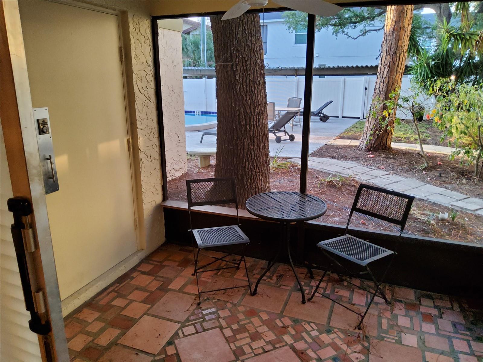 Location location location is everything Westshore & KennedyThis unit must be seen to appreciate has multiple upgrades new LED lighting USB outlets full tile floor throughout modern bathroom open concept island and the kitchen Remote control fans all appliances great condition laundry closet freshly painted with new vinyl floor must see to appreciate worthy of your time The body of water is a beatiful swiming Pool 25 by 50 less than 15 feet away from rear Sliding doors access 2 through Fully screen in Lanai