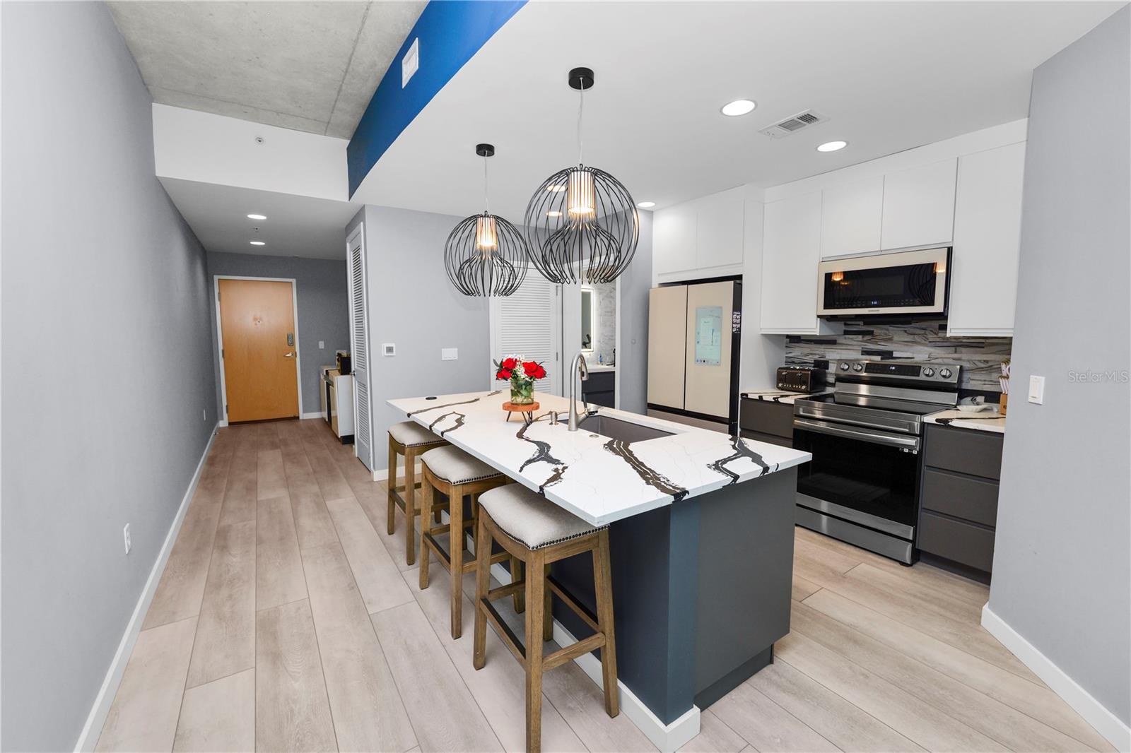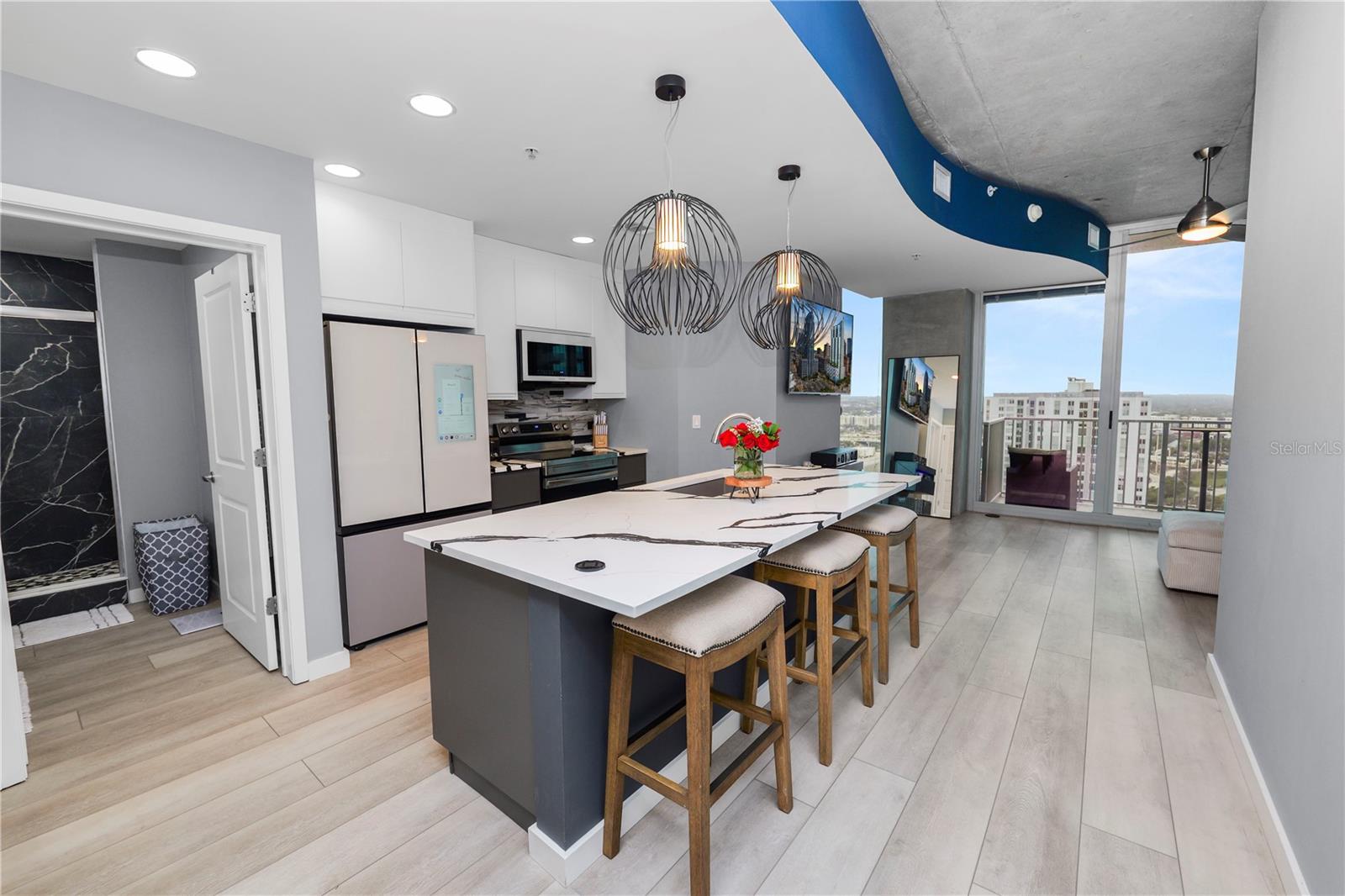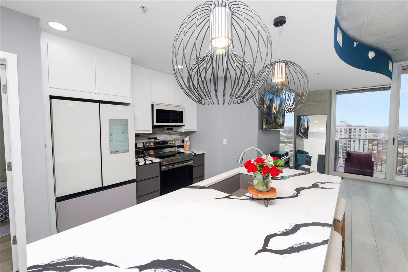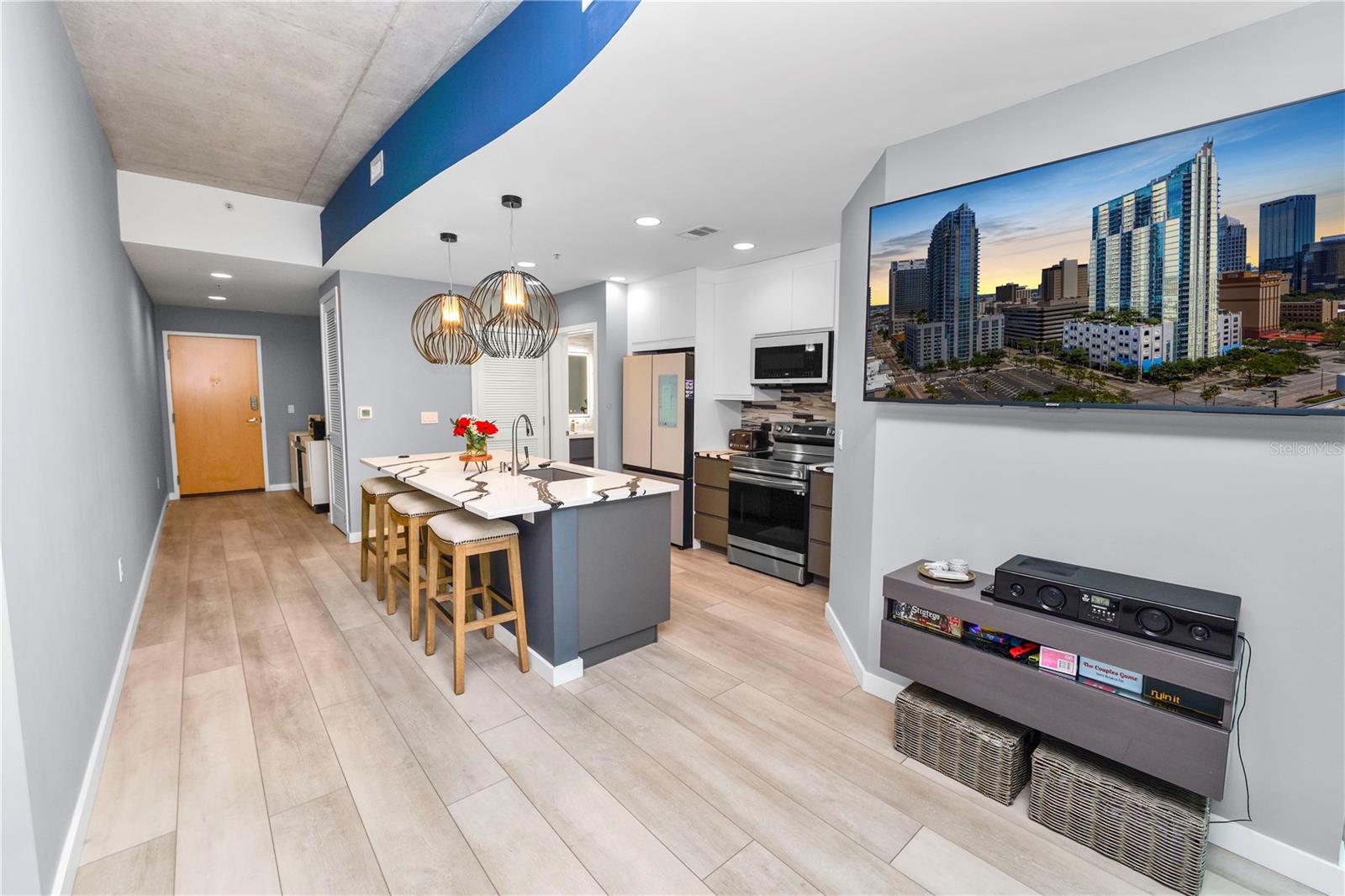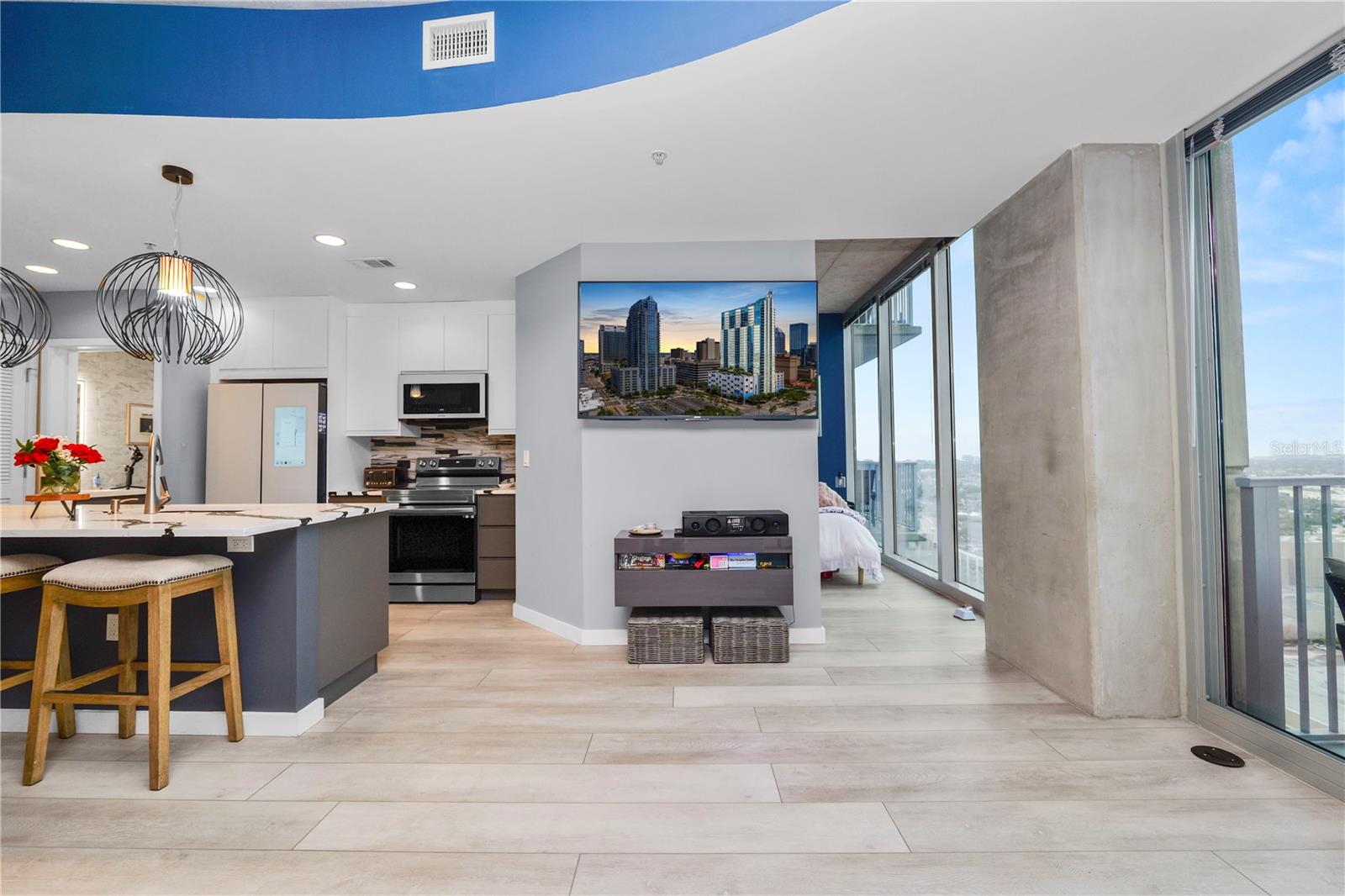 Experimente o luxo moderno neste condomínio de 23º andar, um quarto e um banheiro, perfeitamente posicionado no coração do centro de Tampa. Desfrute de vistas deslumbrantes do horizonte da cidade e vistas parciais da água do porto, tudo do conforto de sua própria casa. Recentemente atualizado com acabamentos de ponta, este condomínio apresenta uma cozinha gourmet elegante com armários personalizados, bancadas de quartzo, iluminação de grife importada e eletrodomésticos premium Samsung, incluindo uma geladeira digital. O banheiro foi completamente reimaginado com um chuveiro de spa, vaidade moderna, espelho iluminado e ladrilhos elegantes do chão ao teto. As atualizações adicionais incluem pisos e rodapés, um closet reestruturado com prateleiras personalizadas e uma porta de celeiro elegante, tinta fresca por toda parte e duas montagens de parede de TV com uma tela na sala de estar. As comodidades no estilo resort incluem um espaço de estacionamento dedicado, fitness center, piscina, churrasqueiras ao ar livre e muito mais. A poucos passos do Curtis Hixon Waterfront Park, você estará a uma curta distância de refeições, compras e entretenimento de primeira linha, incluindo Tampa Riverwalk, Amalie Arena, Sparkman Wharf e Channelside. Não perca esta oportunidade de morar em um dos locais mais vibrantes de Tampa - faça o seu passeio privado hoje!