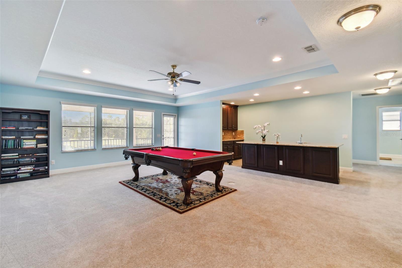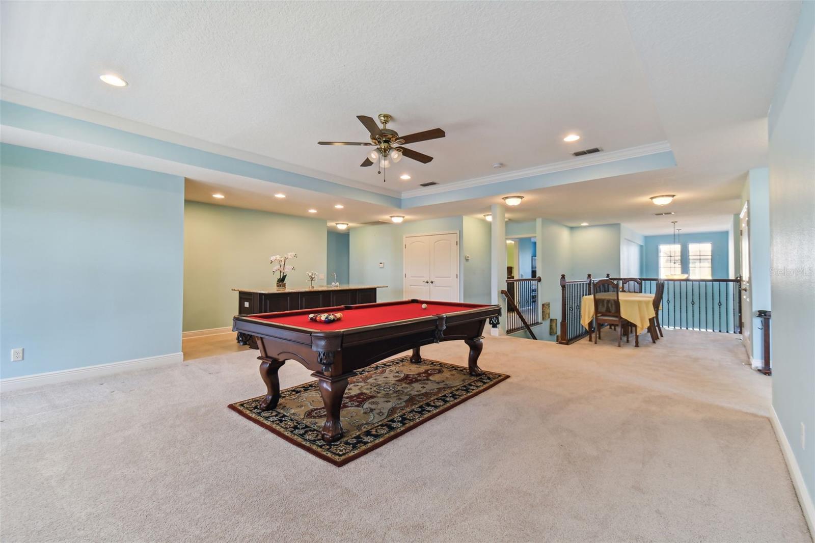 Exterior recém-pintado, Lanai e varanda no andar de cima. Esta casa abraça o crescimento pessoal e profissional com sete quartos, seis banheiros e meio, garagem para três carros, salão e sala de família separados, duas lavanderias, cozinha gourmet e sala de jogos (loft) com área molhada. Bar. Todos os residentes terão espaços privados únicos, juntamente com áreas públicas para partilharem as viagens uns dos outros. Cinco dos sete quartos têm banheiros dedicados, e um par no andar de cima compartilha um banheiro. Seis dos sete quartos possuem closets, sendo que o andar de baixo, quarto de hóspedes, possui closet deslizante. A Suíte do Proprietário também fica no térreo, permitindo assim que vários indivíduos residam em ambos os andares. Duas lavanderias, uma no andar de baixo e outra no andar de cima, aumentam a eficiência do tempo para todos, enquanto {aquecedor de água, fogão, ambos os secadores} movidos a propano líquido aumentam a eficiência energética. A Cozinha Gourmet inclui duas novas geladeiras (uma grande + uma pequena), um novo micro-ondas com ventilação acima do fogão a gás e uma nova máquina de lavar louça de três níveis. O Loft no andar de cima com bar molhado oferece uma área ampla para continuar o compartilhamento e a geração de memórias, e se conecta publicamente a uma varanda no andar de cima com proteção para vistas elevadas das belas áreas de água e conservação. O novo piso vibrante, azul e poliaspártico (composto de dois componentes resistente a UV) da garagem para três carros embeleza a junção da casa com o mundo e inclui tração aprimorada para uma direção e travessia seguras, mesmo com água. O novo amaciante de água Carbono + Metal da Garagem em um único tanque fornece água limpa e macia; sua bomba de água conectada garante alta pressão de água para todos os aparelhos. Ambos os sistemas HVAC (One Upstairs + One Downstairs) são novos, RunTru da Trane Systems avaliados em 14,3 SEER2 / 4 toneladas. Cada um contém uma luz UV de 240 V para ajudar a prevenir o crescimento orgânico em seus respectivos manipuladores de ar, proporcionando assim limpeza, resfriamento e aquecimento de longo prazo para todos os ocupantes. E o aquecedor de água da garagem é um tanque de propano líquido com ventilação elétrica de 50 galões que fornece água quente rápida para toda a casa. Esta casa está localizada no coração de New Tampa, perto das principais artérias de: Avenida Bruce B. Downs. (2,5 a 4,5 milhas) Avenida Cross Creek. = Nova Tampa Blvd. (~ 3 milhas) SR-56 = Wesley Chapel Blvd. (~ 3,5 a 7,3 milhas) I-75 (~ 6 milhas) Também fica perto de várias escolas do ensino fundamental ao médio: Escola Primária Pride (1,5 milhas) Escola Secundária Benito (3,0 milhas) Escola Turner Bartels K-8 (3,1 milhas) Escola primária Hunters Green (3,3 milhas) Escola Secundária Wharton (3,6 milhas) Em seguida, a própria Comunidade, Laurel Vista, conta com um Centro de Amenidades com Quadras de Tênis e Basquete, Piscina, Playground e calçadas largas adjacentes à grama bem cuidada para diversas atividades ao ar livre para todos. Assim, com sua arquitetura, características, geografia e comodidades comunitárias, esta casa convida sua família a descansar, relaxar e crescer com seu pragmatismo, luxo e aconchego fornecidos. Característica do quarto: Armário de linho no banheiro (quarto adicional). Característica do quarto: Armário de linho no banheiro (quarto 5). Característica do quarto: Armário de linho no banheiro (quarto principal).