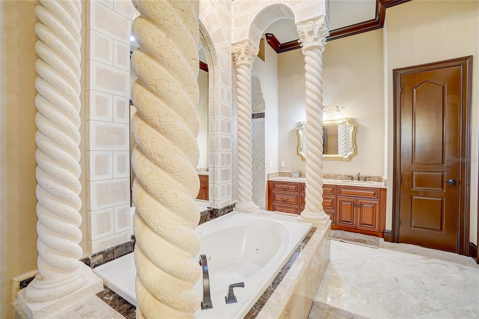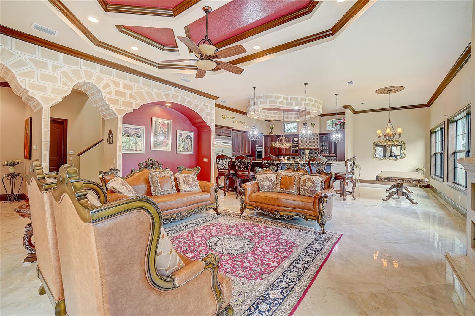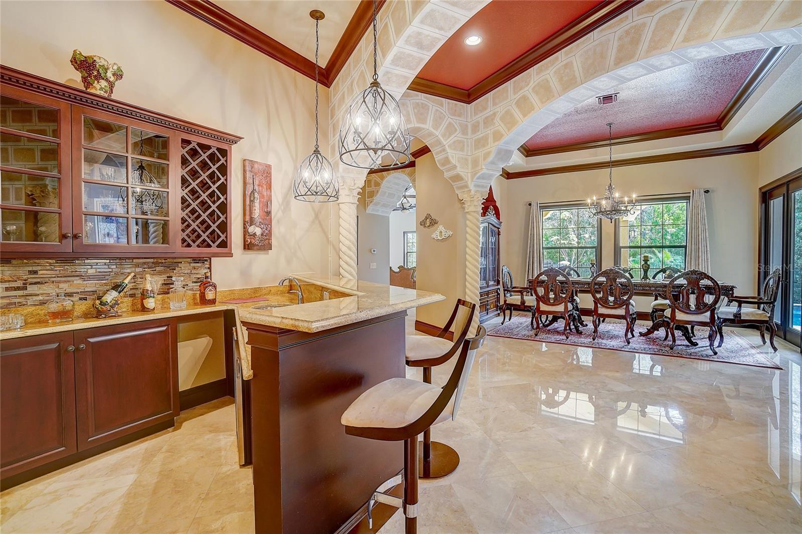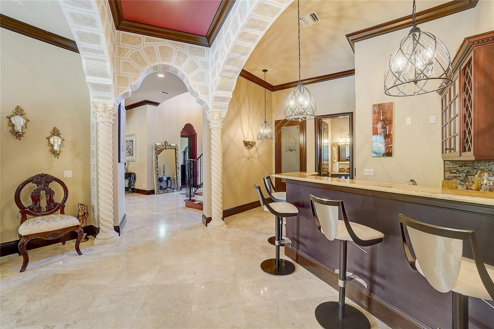 Aninhado no bairro exclusivo de Avila, devastado pelo guarda, uma distinta comunidade de Tampa Bay Country Club, reside a cativante "Villa Toscano"-uma requintada villa italiana com comodidades luxuosas, incluindo um elevador revestido de mogno. Esta esplêndida morada no estilo toscano possui seis quartos, cada um adornado com sua suíte particular, completa com armários personalizados para adicionar opulência. O piso é uma mistura harmoniosa de mármore turco requintado e madeira de cerejeira brasileira e estabelece uma base sumptuosa. A expansiva cozinha, adornada com um granito italiano distinto, gira em torno de uma ilha generosamente de tamanho, acompanhada por uma despensa discreta que oferece conveniência e estilo. Um grande vestíbulo se abre para revelar a suíte master, um santuário de indulgência. Armários, vaidades e armários de água privados, um dos quais apresenta um bidê, criam um ambiente de luxo incomparável. O opulento chuveiro de mármore, adornado com sete chuveiros e pulverizadores corporais revigorantes, acrescenta uma camada extra de luvas. A suíte convidada encontra seu lugar no primeiro andar, garantindo conforto e acessibilidade. Suba a impressionante Grand Staircase no estilo toscano ou utilize o elevador residencial revestido de mogno para alcançar as quatro suítes adicionais, uma encantadora sala de computadores e uma sala de jogos envolvente no segundo andar. Uma segunda escada fornece uma alternativa conveniente. No coração das áreas sociais, um bar molhado sofisticado adora os dois pisos, atendendo ao entretenimento refinado. Várias portas francesas conectam perfeitamente espaços internos e externos, levando à atraente cozinha ao ar livre e banheira de bilhar. As lanais cobertas e abertas envolvem a piscina e o spa de aquecimento graciosamente com contornos, oferecendo um cenário tranquilo de uma ampla área de conservação. A serenidade do quintal fornece uma vista serena que pode ser admirada no café da manhã e salas de família. Bem -vindo à vida de luxo incomparável de Avila! Em essência, "Villa Toscano" é mais do que um lar; É uma obra -prima de brilho arquitetônico e vida refinada, aninhada dentro do abraço de uma comunidade de prestígio e oferece um estilo de vida de esplendor incomparável.