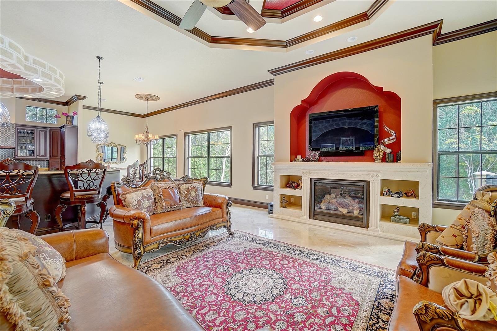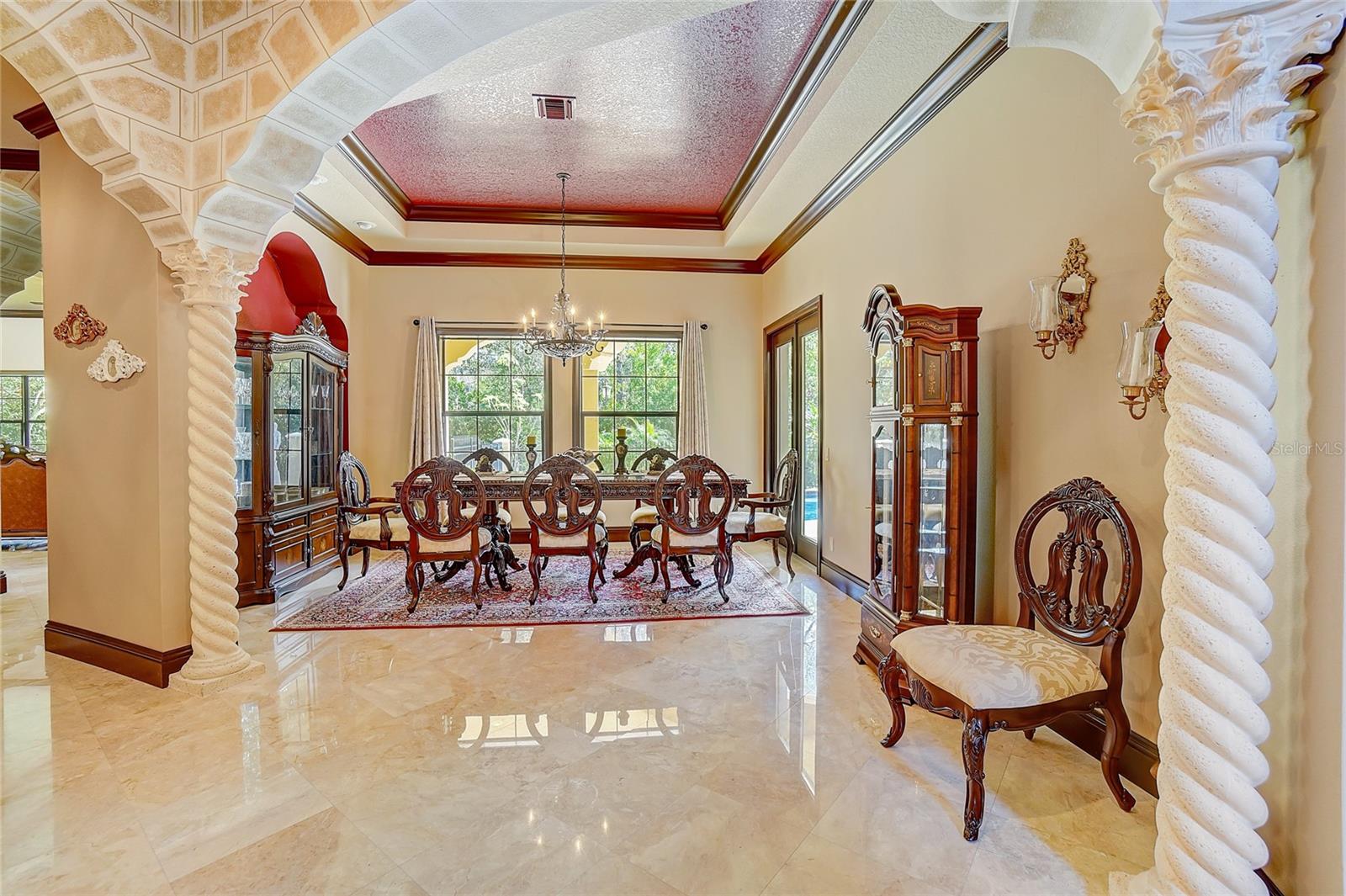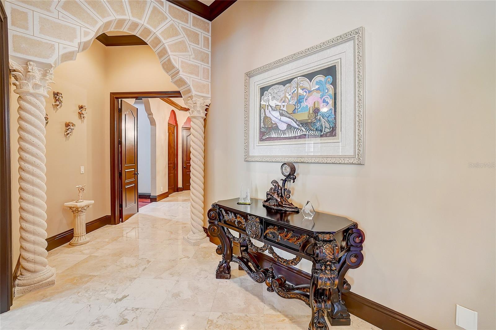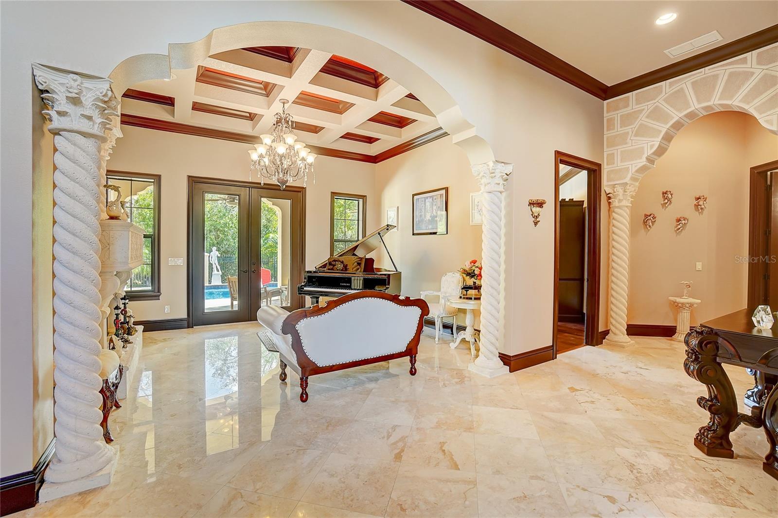 Aninhado no bairro exclusivo de Avila, devastado pelo guarda, uma distinta comunidade de Tampa Bay Country Club, reside a cativante "Villa Toscano"-uma requintada villa italiana com comodidades luxuosas, incluindo um elevador revestido de mogno. Esta esplêndida morada no estilo toscano possui seis quartos, cada um adornado com sua suíte particular, completa com armários personalizados para adicionar opulência. O piso é uma mistura harmoniosa de mármore turco requintado e madeira de cerejeira brasileira e estabelece uma base sumptuosa. A expansiva cozinha, adornada com um granito italiano distinto, gira em torno de uma ilha generosamente de tamanho, acompanhada por uma despensa discreta que oferece conveniência e estilo. Um grande vestíbulo se abre para revelar a suíte master, um santuário de indulgência. Armários, vaidades e armários de água privados, um dos quais apresenta um bidê, criam um ambiente de luxo incomparável. O opulento chuveiro de mármore, adornado com sete chuveiros e pulverizadores corporais revigorantes, acrescenta uma camada extra de luvas. A suíte convidada encontra seu lugar no primeiro andar, garantindo conforto e acessibilidade. Suba a impressionante Grand Staircase no estilo toscano ou utilize o elevador residencial revestido de mogno para alcançar as quatro suítes adicionais, uma encantadora sala de computadores e uma sala de jogos envolvente no segundo andar. Uma segunda escada fornece uma alternativa conveniente. No coração das áreas sociais, um bar molhado sofisticado adora os dois pisos, atendendo ao entretenimento refinado. Várias portas francesas conectam perfeitamente espaços internos e externos, levando à atraente cozinha ao ar livre e banheira de bilhar. As lanais cobertas e abertas envolvem a piscina e o spa de aquecimento graciosamente com contornos, oferecendo um cenário tranquilo de uma ampla área de conservação. A serenidade do quintal fornece uma vista serena que pode ser admirada no café da manhã e salas de família. Bem -vindo à vida de luxo incomparável de Avila! Em essência, "Villa Toscano" é mais do que um lar; É uma obra -prima de brilho arquitetônico e vida refinada, aninhada dentro do abraço de uma comunidade de prestígio e oferece um estilo de vida de esplendor incomparável.