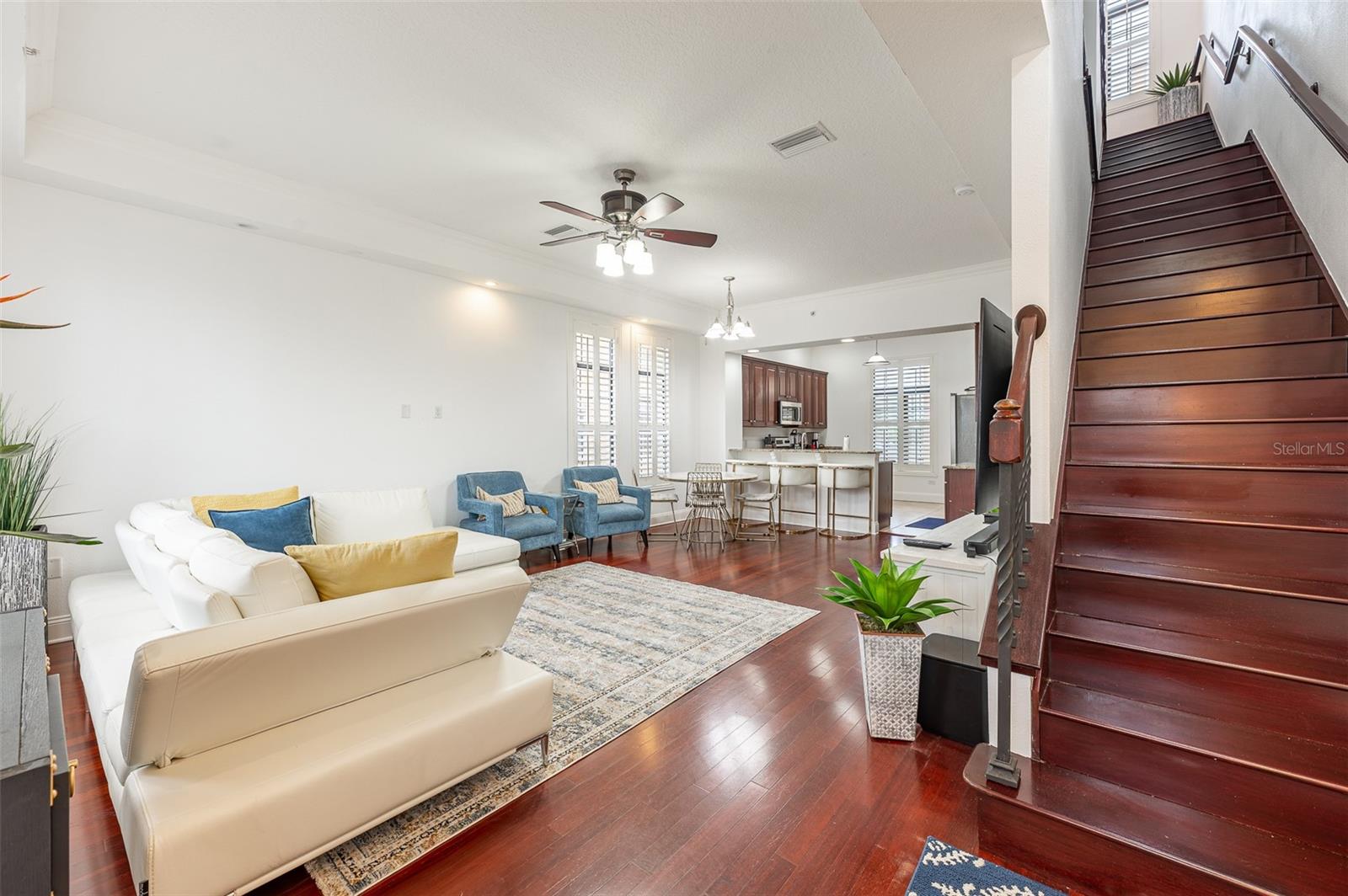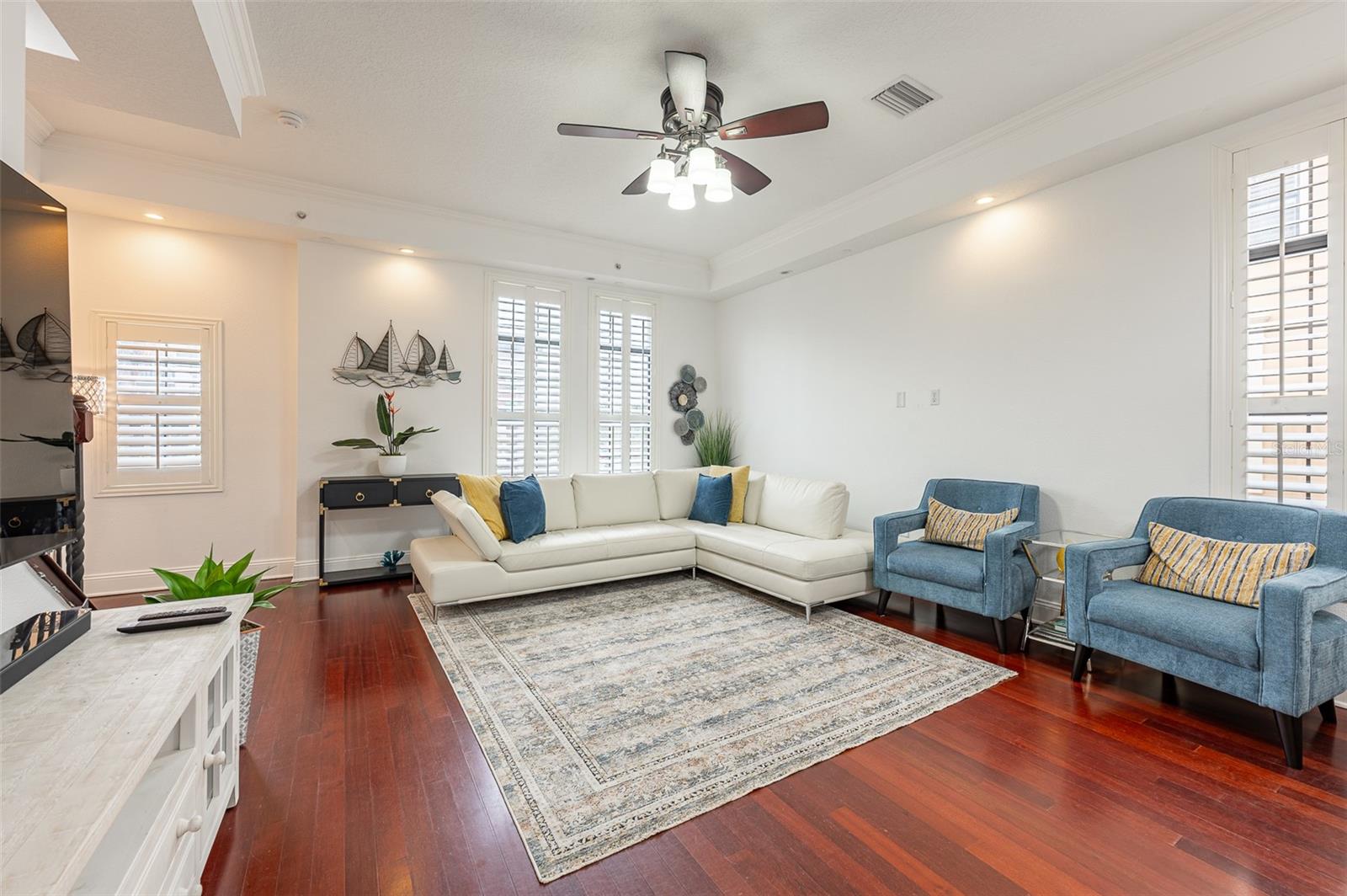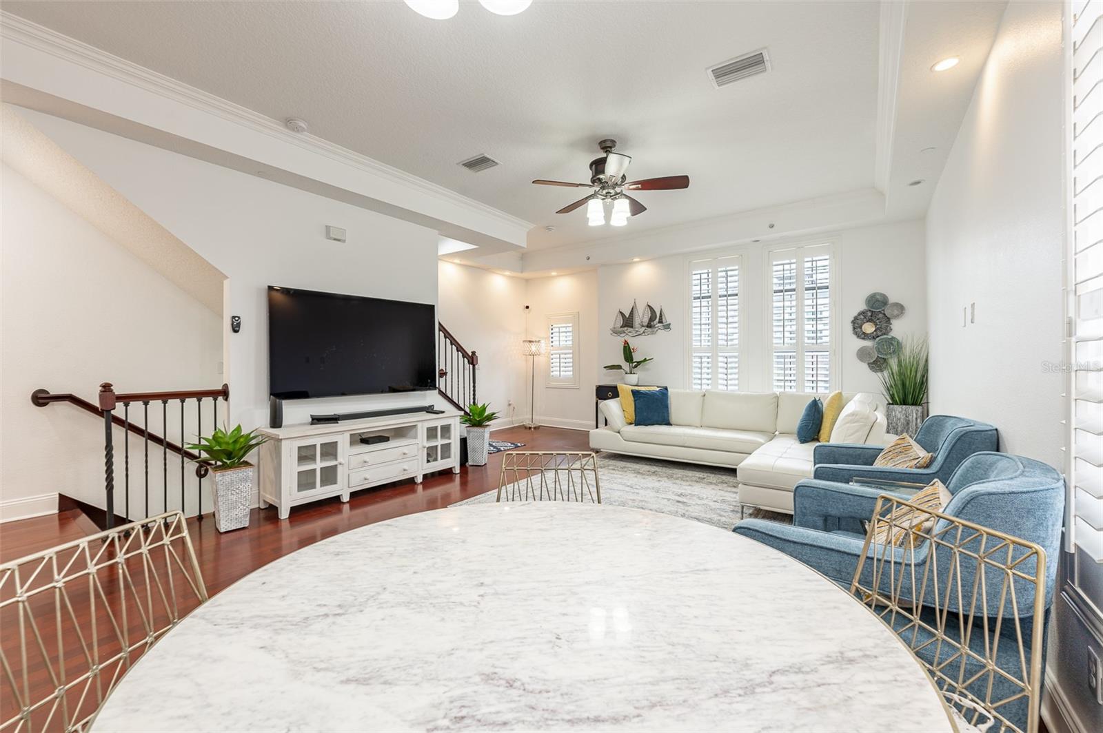 Não perca esta rara oportunidade de morar no distrito de Soho, em Hyde Park, Tampa. The Brownstones Of Soho Corner Unit, with 3 En- suite Bedrooms plus an Amazing Fourth Level Bonus Loft/Media Room with the most Amazing Wrap around Balcony overlooking the South Howard streetscape.. This is the Perfect Location if you want to be in walking distance to the heart o the entertainment district and it is in X Flood Zone ( for no mandatory flood insurance requirement) Clean, freshly painted throughout and MOVE-IN READY. Do outro lado do Daily Eats, Lemon Green e muitos restaurantes e empresas do Soho. Um passeio fácil até o Hyde Park Village para fazer compras, jantar ou Kate Jackson Park. O trecho de mais de 9 quilômetros do Bayshore Boulevard, para caminhar/andar de bicicleta, ou apreciar as vistas incríveis em Bayshore. Da frente da rua, entre no quintal fechado do estilo de ferro forjado, que leva à entrada principal com porta de madeira sólida personalizada. O primeiro nível oferece um quarto privativo com piso de ladrilhos com aparência de madeira, que é perfeito como um trabalho em casa, sala de fitness ou quarto de hóspedes privado. Um grande armário de armazenamento no corredor que leva aos sistemas de garagem todos os sistemas de baixa tensão/Wi-Fi/Comunicação da propriedade. A garagem de dois carros é um lado a lado, com porta reforçada e piso selado epóxi. Os detalhes são evidentes em toda a casa, pois até as janelas da garagem são adornadas com persianas de plantações. Risers de madeira sólida e finials personalizados na escada levam ao segundo e principal nível de vida. A área de estar/jantar aberta da cozinha é perfeita para reuniões. A 1/2 Bath Service the Area. The kitchen has granite countertops, 42" overhead cabinetry and stainless steel appliances. The laundry is conveniently located off the kitchen and offers plenty of room for additional pantry storage. The great room has solid hardwood flooring, coffered ceiling, recessed lighting, is pre-wired for speakers. The third level Master suite has an ensuite bath with dual sinks, water closet and step-in shower. A wall length closet with two doors provides great space. Plank Wood- Olhe o piso de ladrilhos é o terceiro e os níveis superiores. Espaço não parece mais !!