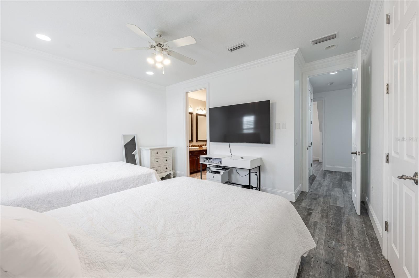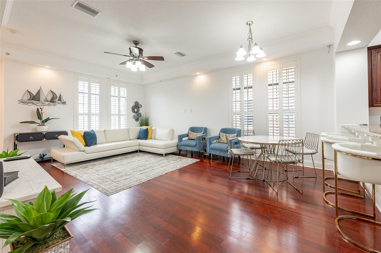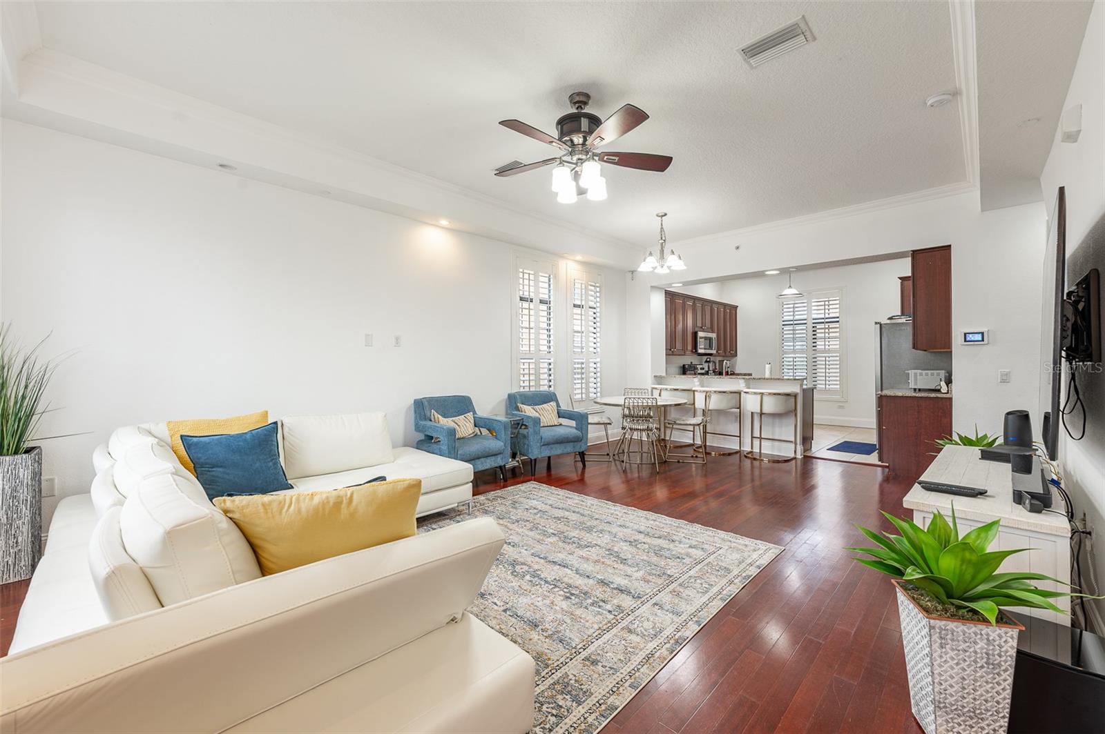 Não perca esta rara oportunidade de morar no distrito de Soho, em Hyde Park, Tampa. The Brownstones Of Soho Corner Unit, with 3 En- suite Bedrooms plus an Amazing Fourth Level Bonus Loft/Media Room with the most Amazing Wrap around Balcony overlooking the South Howard streetscape.. This is the Perfect Location if you want to be in walking distance to the heart o the entertainment district and it is in X Flood Zone ( for no mandatory flood insurance requirement) Clean, freshly painted throughout and MOVE-IN READY. Do outro lado do Daily Eats, Lemon Green e muitos restaurantes e empresas do Soho. Um passeio fácil até o Hyde Park Village para fazer compras, jantar ou Kate Jackson Park. O trecho de mais de 9 quilômetros do Bayshore Boulevard, para caminhar/andar de bicicleta, ou apreciar as vistas incríveis em Bayshore. Da frente da rua, entre no quintal fechado do estilo de ferro forjado, que leva à entrada principal com porta de madeira sólida personalizada. O primeiro nível oferece um quarto privativo com piso de ladrilhos com aparência de madeira, que é perfeito como um trabalho em casa, sala de fitness ou quarto de hóspedes privado. Um grande armário de armazenamento no corredor que leva aos sistemas de garagem todos os sistemas de baixa tensão/Wi-Fi/Comunicação da propriedade. A garagem de dois carros é um lado a lado, com porta reforçada e piso selado epóxi. Os detalhes são evidentes em toda a casa, pois até as janelas da garagem são adornadas com persianas de plantações. Risers de madeira sólida e finials personalizados na escada levam ao segundo e principal nível de vida. A área de estar/jantar aberta da cozinha é perfeita para reuniões. A 1/2 Bath Service the Area. The kitchen has granite countertops, 42" overhead cabinetry and stainless steel appliances. The laundry is conveniently located off the kitchen and offers plenty of room for additional pantry storage. The great room has solid hardwood flooring, coffered ceiling, recessed lighting, is pre-wired for speakers. The third level Master suite has an ensuite bath with dual sinks, water closet and step-in shower. A wall length closet with two doors provides great space. Plank Wood- Olhe o piso de ladrilhos é o terceiro e os níveis superiores. Espaço não parece mais !!