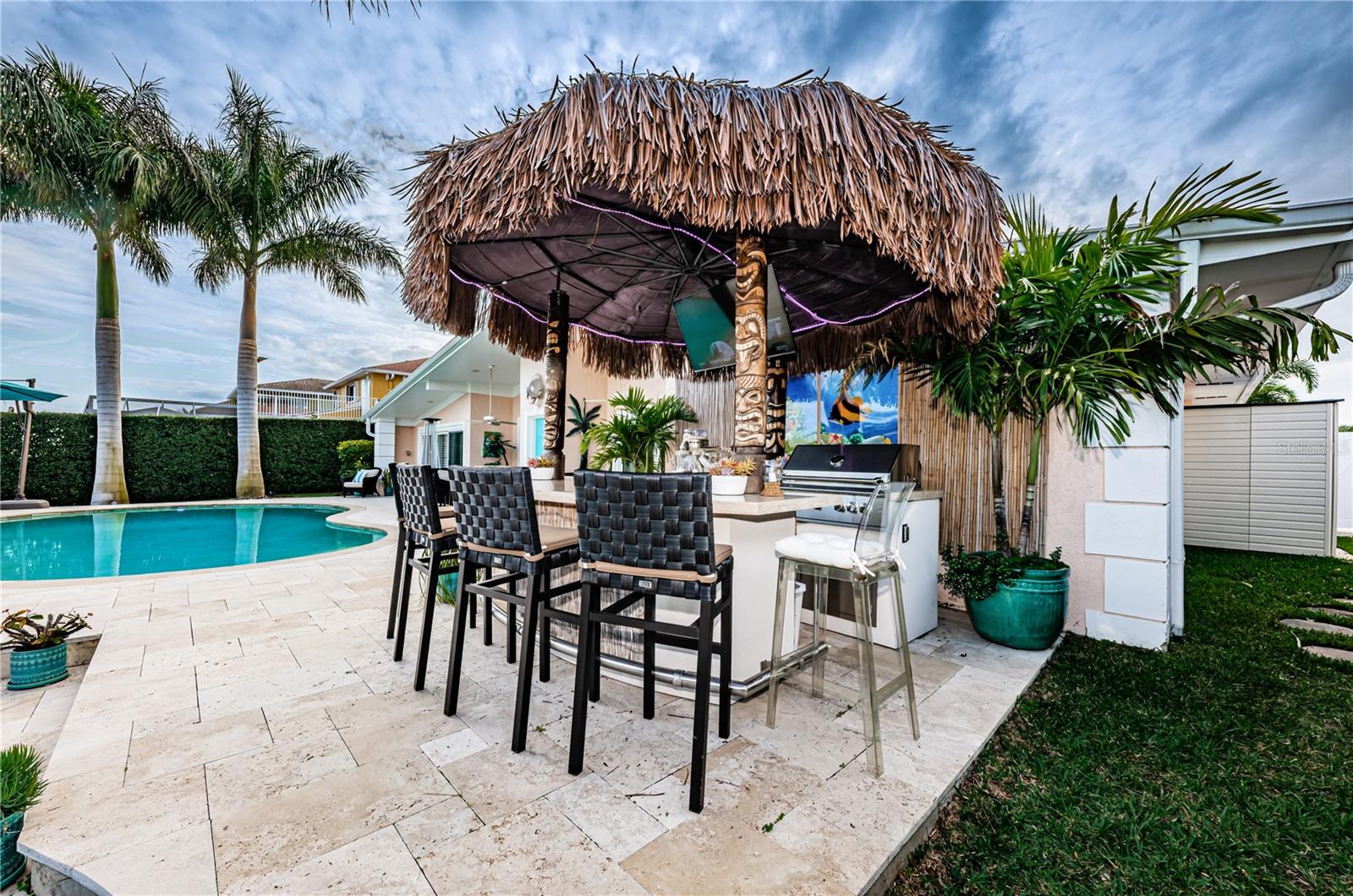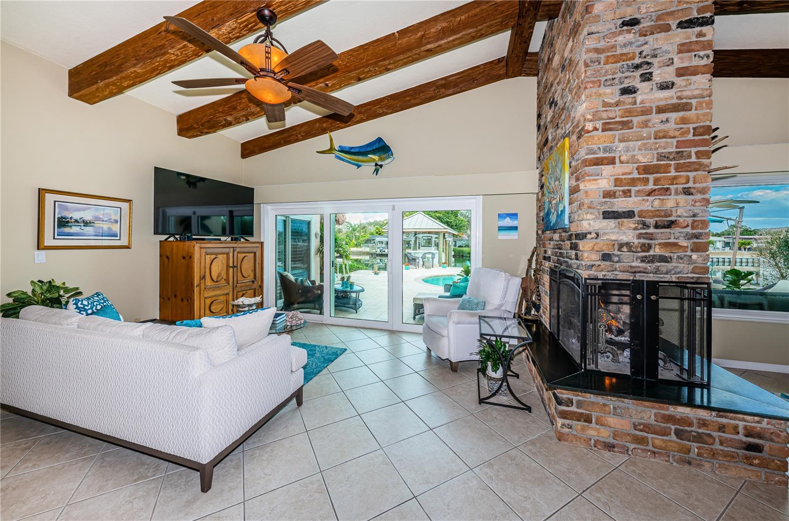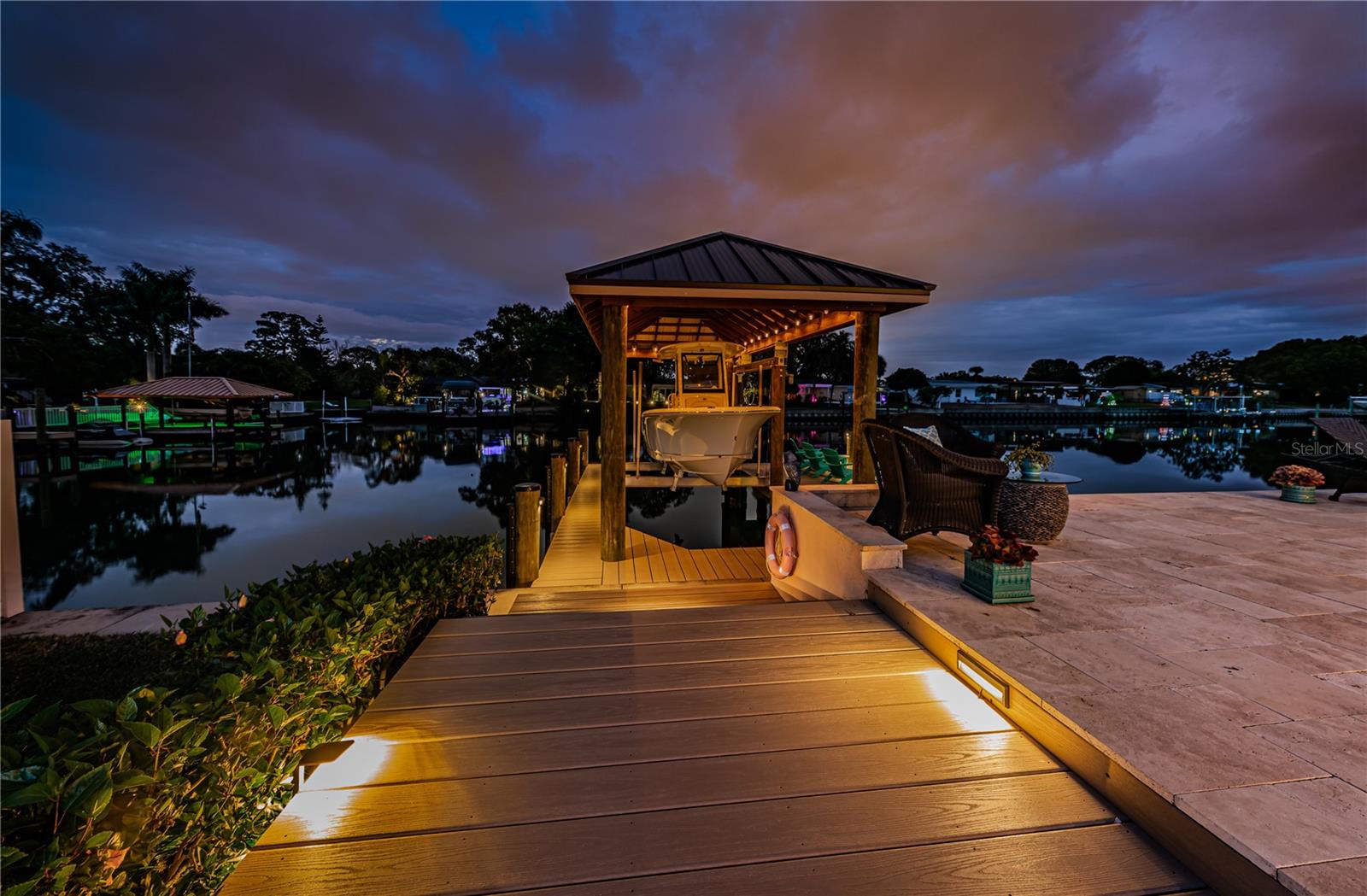 Se o seu lugar favorito é cruzar a Baía de Tampa para pescar, seguir golfinhos ou aventurar-se nas praias de Egmont Key, no Golfo, você encontrou a casa perfeita à beira-mar. Situado em um dos canais mais largos de Dana Shores, o cais coberto e o enorme elevador para barcos de 13.000 libras são lindamente construídos para absorver a vista ampla do canal. Ao desembarcar em terra firme, prepare-se para mergulhar na linda piscina tropical de 2019 e no pátio de travertino. Aqui, as características de estilo resort irão mimá-lo com o farfalhar das enormes palmeiras, e a piscina de cascalho Blue Surf tem o brilho das contas de vidro adicionadas ao acabamento vitalício. Uma inesquecível instalação de Tiki bar irá refrescar você e seus amigos com uma fabulosa churrasqueira, TV e duas geladeiras, dia e noite. No interior, os tetos altos e abobadados nas principais áreas de estar oferecem vistas incríveis da piscina, do pátio e de 25 metros de frente para o mar. Uma lareira a lenha de três lados é o ponto focal desta casa. Uma cozinha abundante se abre para as áreas de estar e possui uma enorme lavanderia adjacente. Este plano de quarto dividido lhe dará uma suíte master com privacidade, vista para o mar, um grande banheiro com chuveiro novo e moderno e um closet... tudo tão raro de encontrar em uma casa em Dana Shores. No outro extremo da casa, os dois quartos de hóspedes compartilham um banheiro Jack-and-Jill. Todo o lote dispõe de irrigação, paisagem exuberante e iluminação deslumbrante, com lavabo de jardineiro na garagem. Este telhado e calçada de pavimentação que acompanham essa beleza foram instalados em 2019. Está localizado a vários quarteirões do Rocky Point Golf Course e do Skyway Sports Complex, desfrute de comodidades ativas perto de casa. Além do playground, quadras de tênis e pickleball e campos de futebol, Skyway é o ponto de entrada para a Courtney Campbell Recreational Trail para andar de bicicleta ou caminhar pela Baía de Tampa até Clearwater.